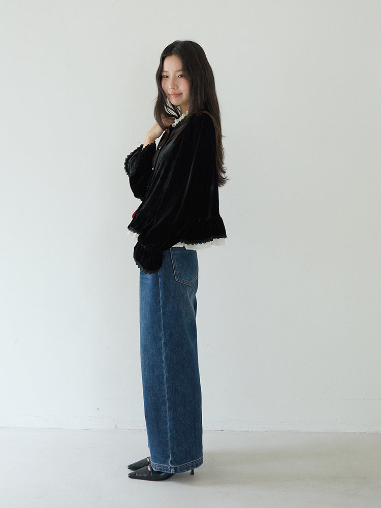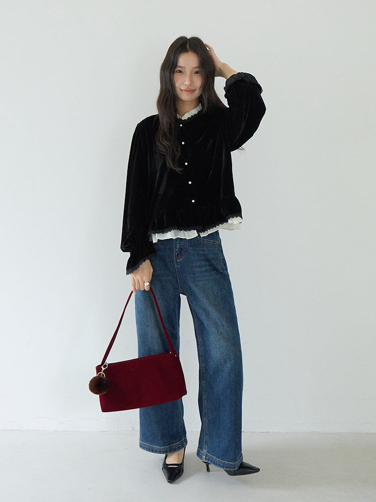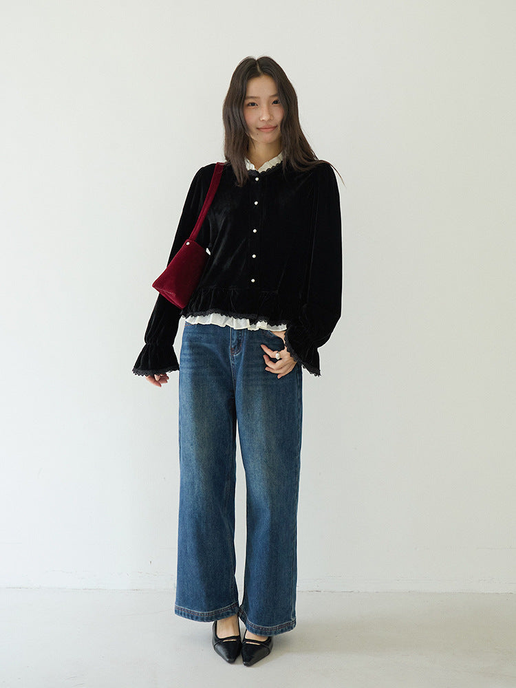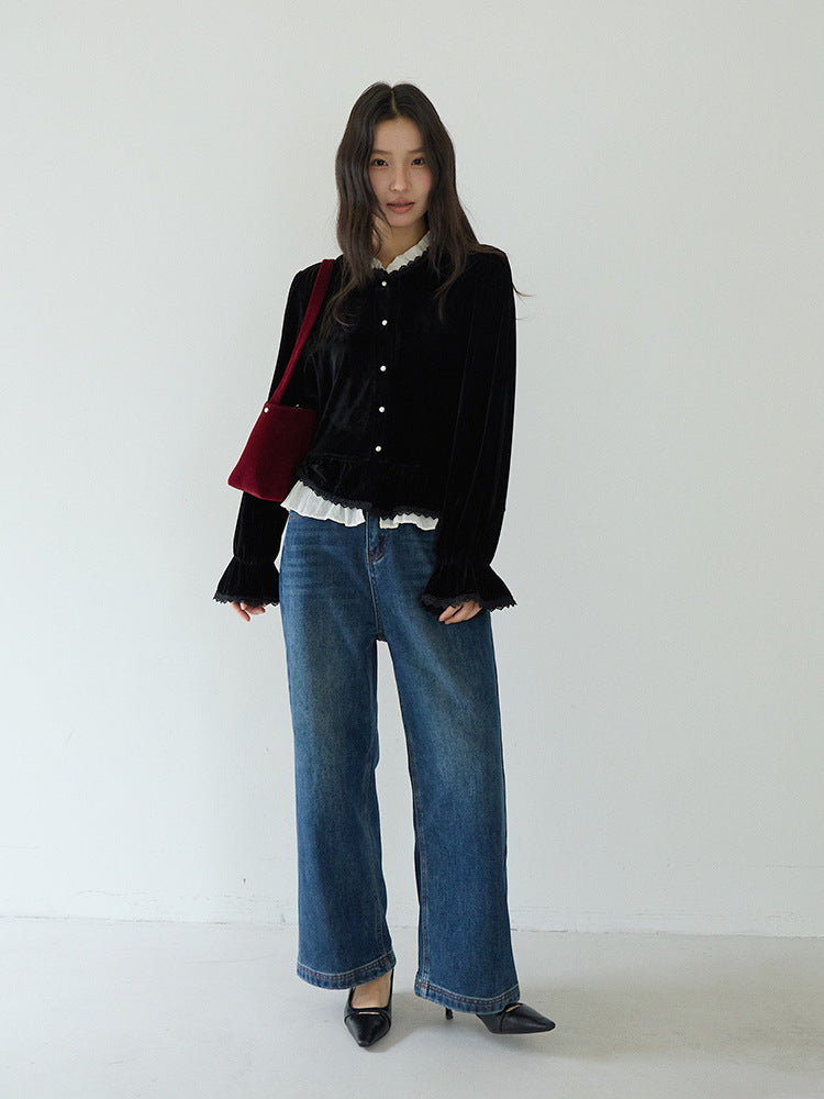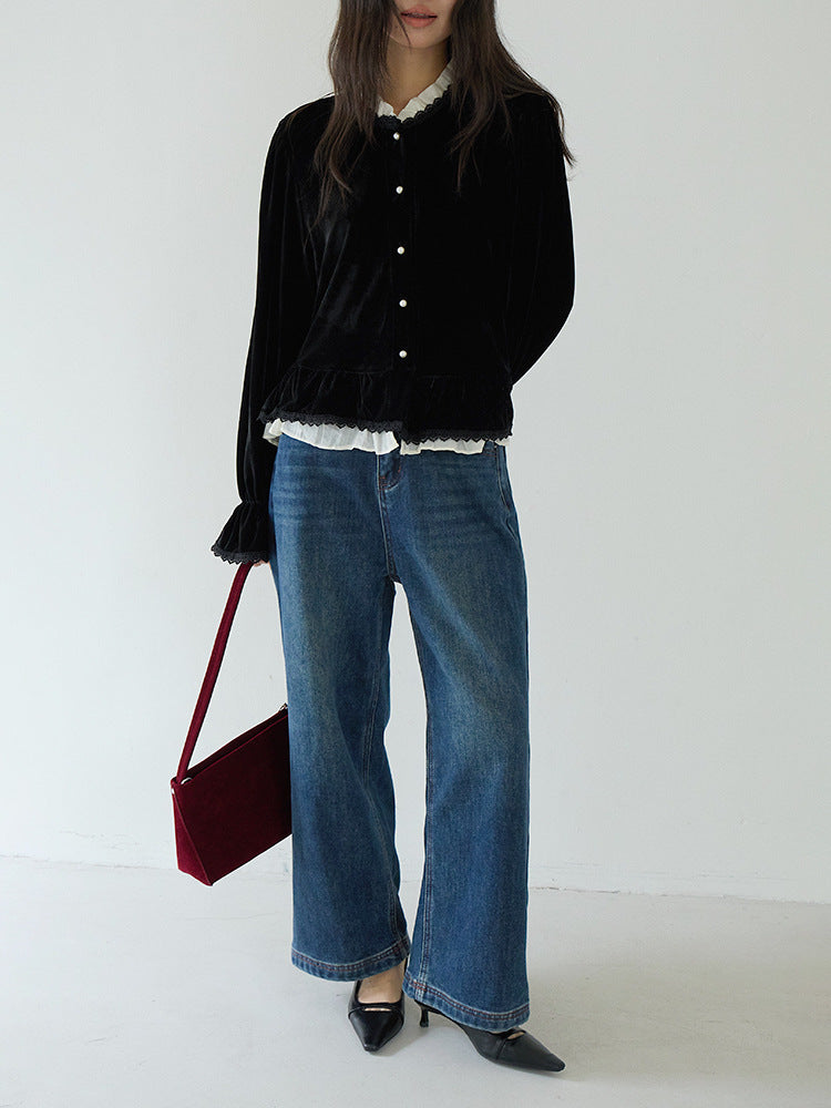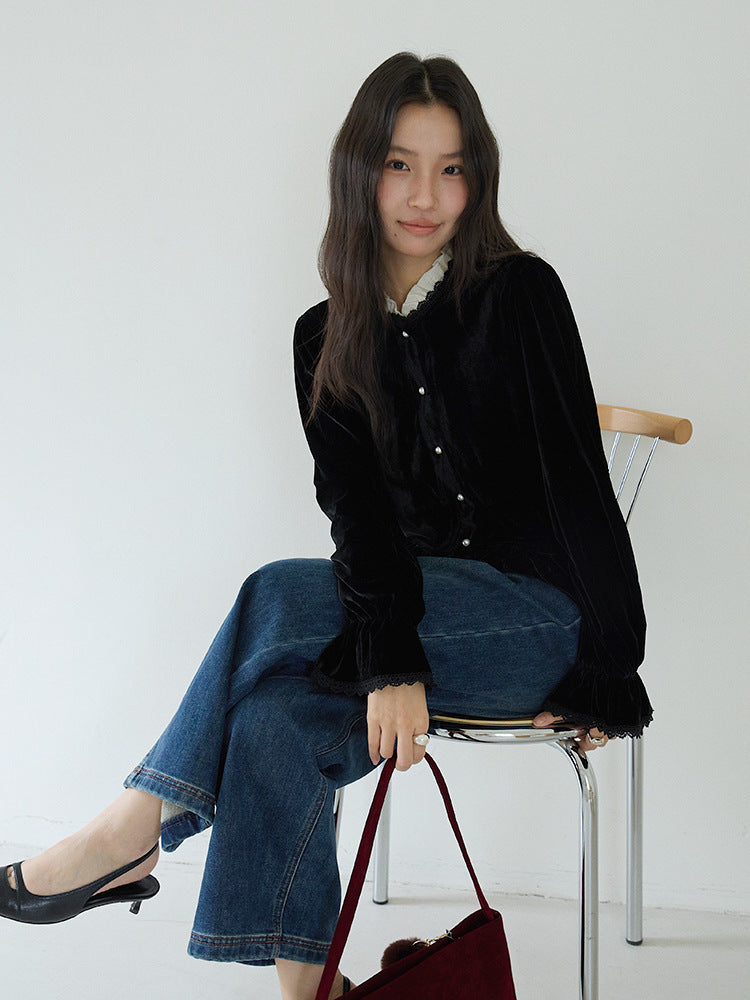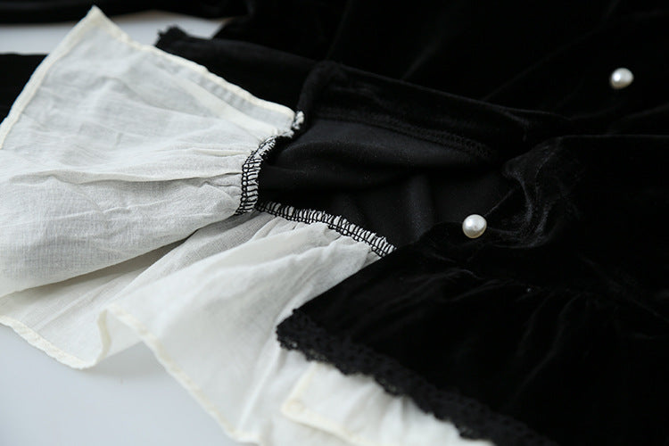 【LD3272】實拍秋冬絲絨假兩件小荷葉長袖襯衫251020