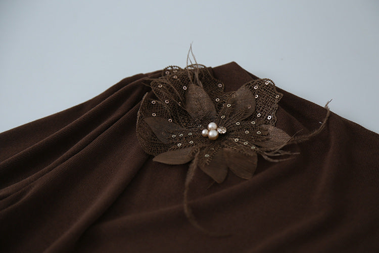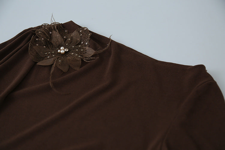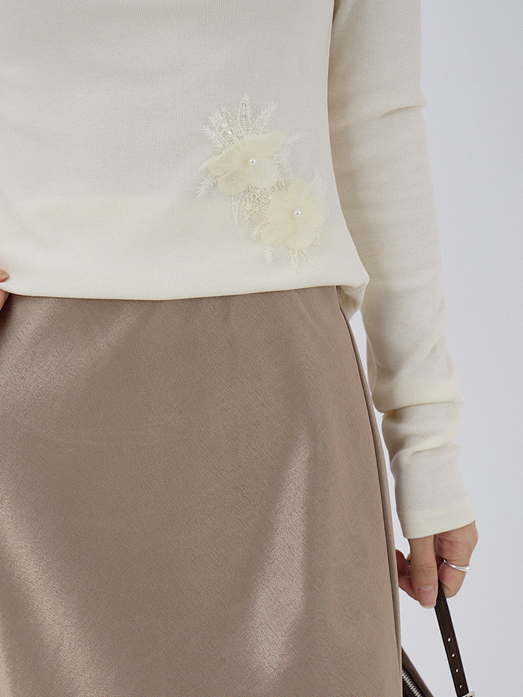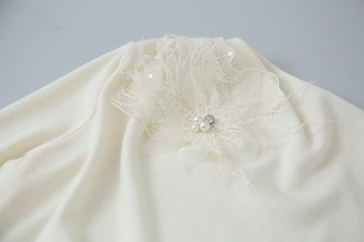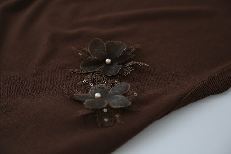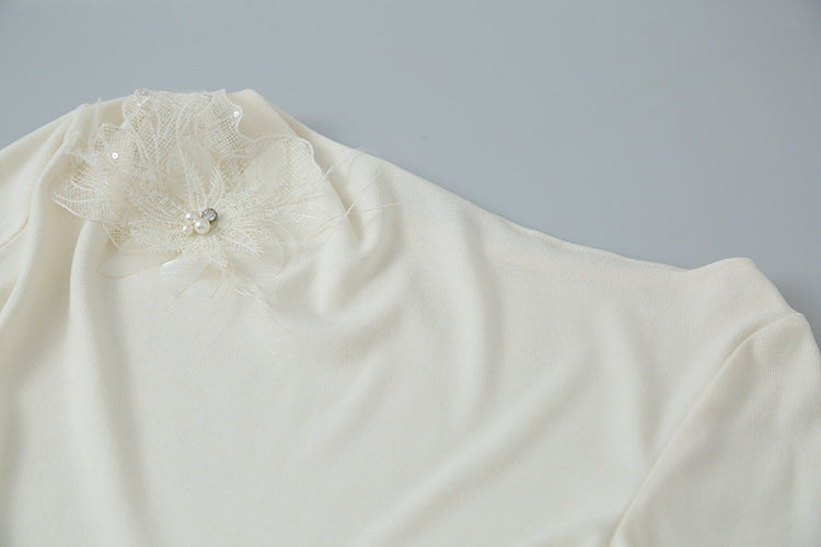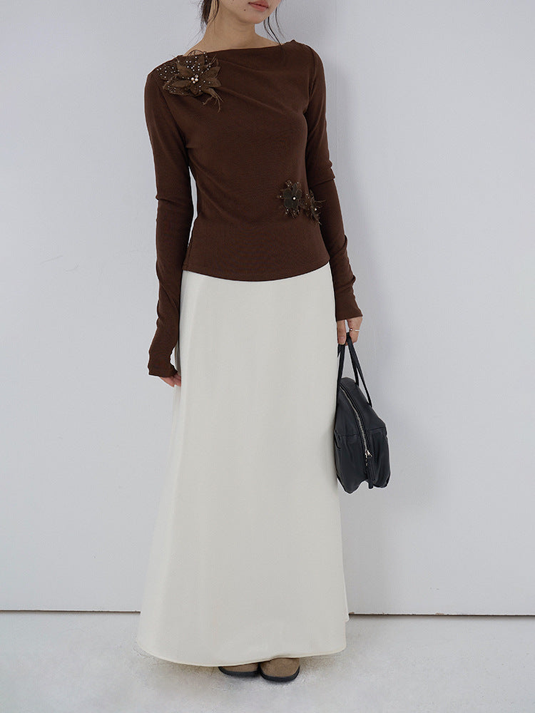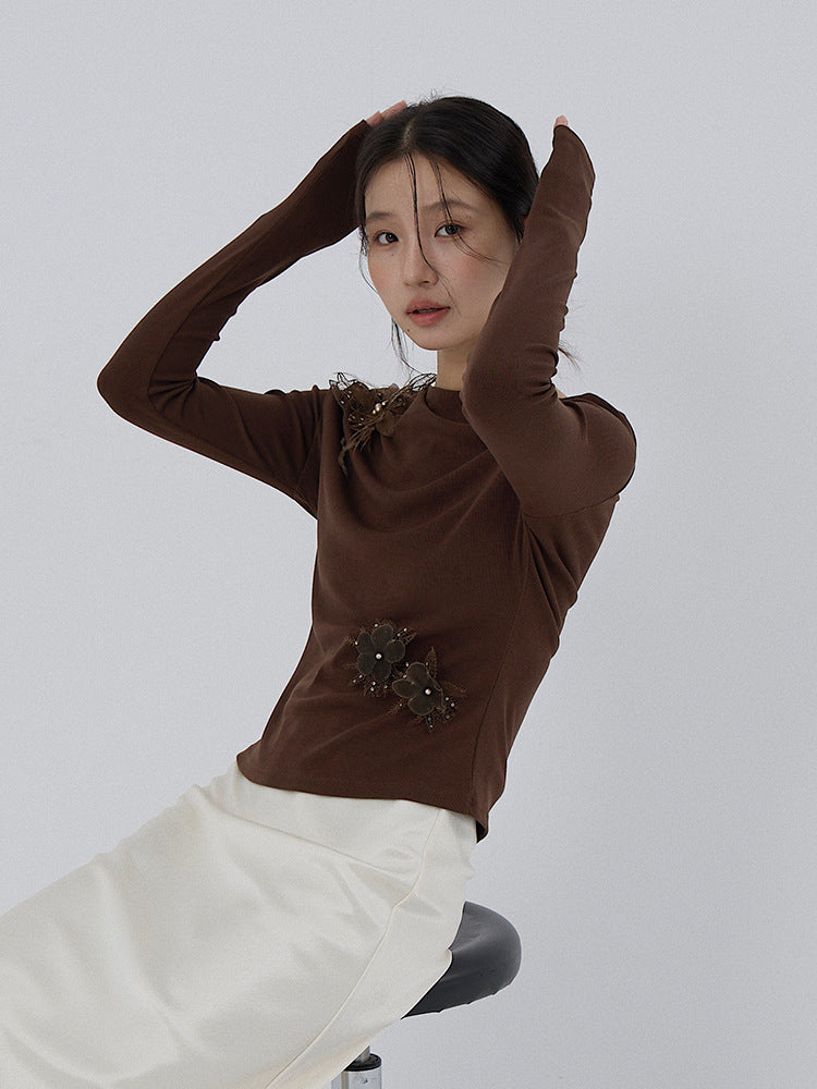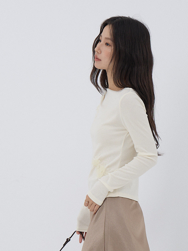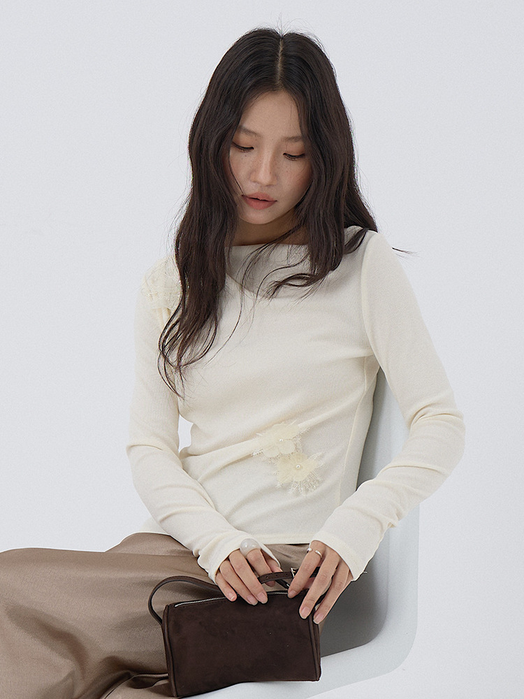 【LD3277】實拍立體花朵長袖一字領T恤251103