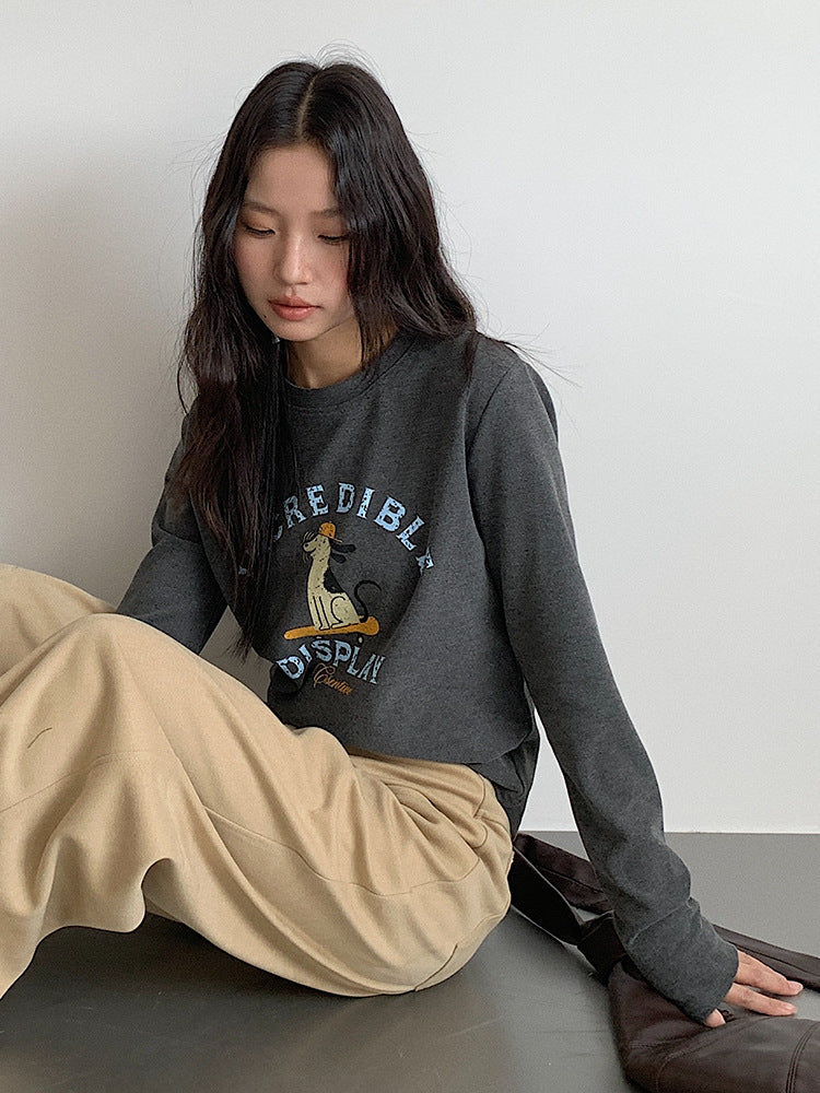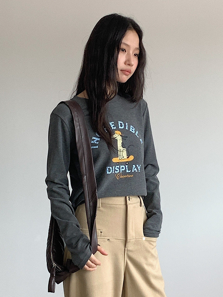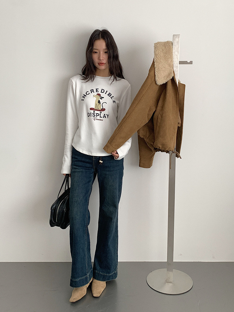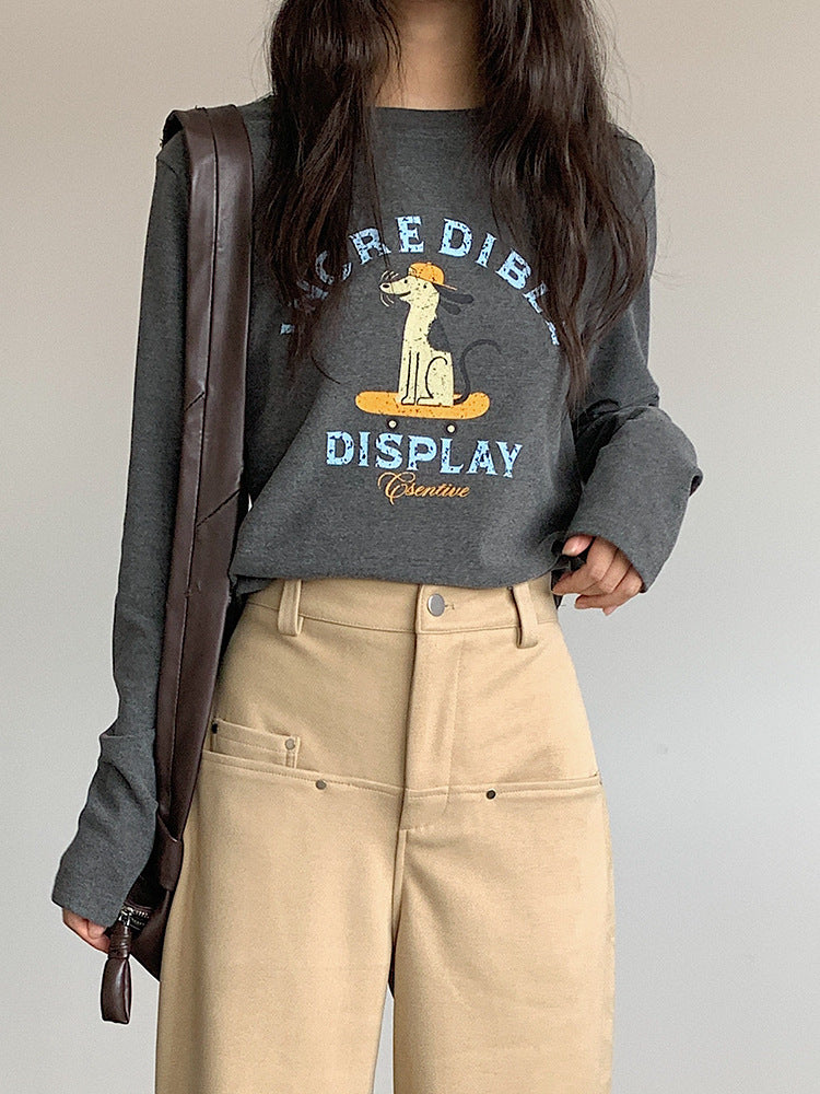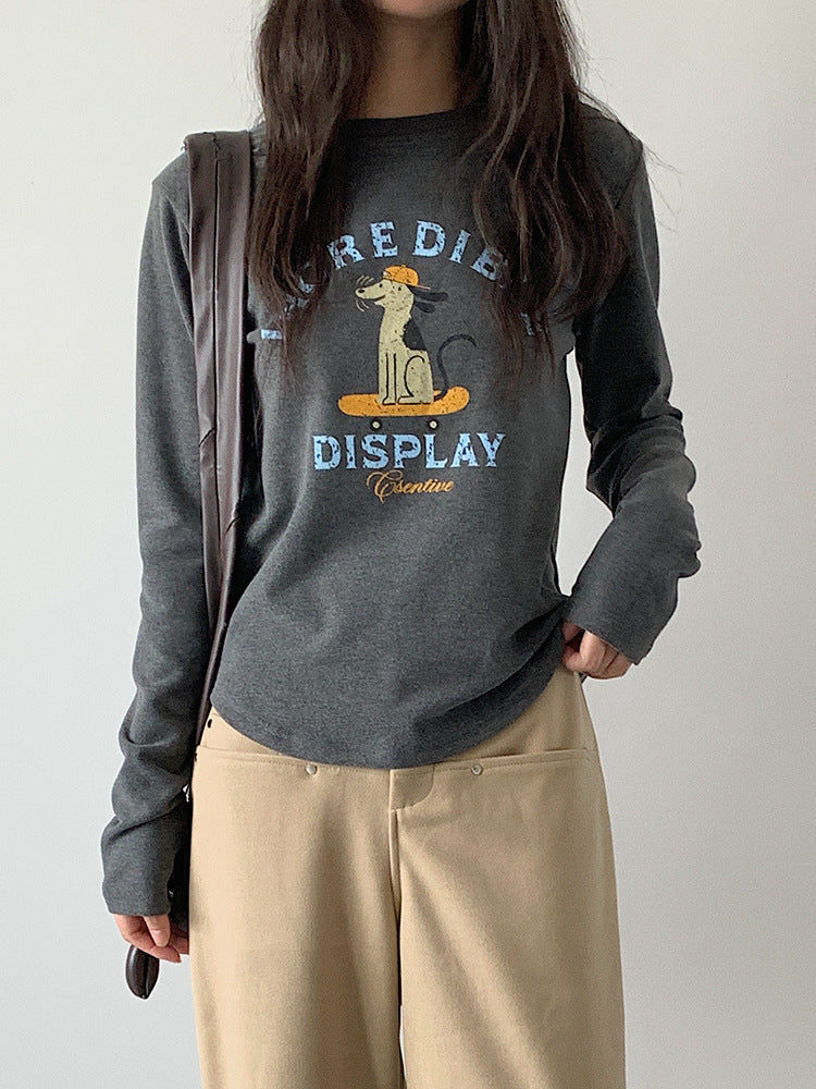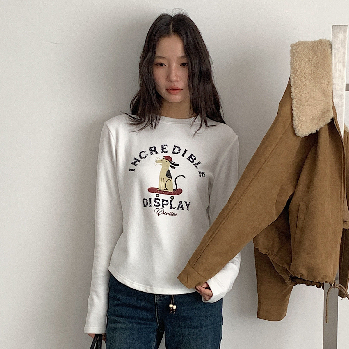 【LD3291】實拍韓國德絨小狗印花長袖T恤251103