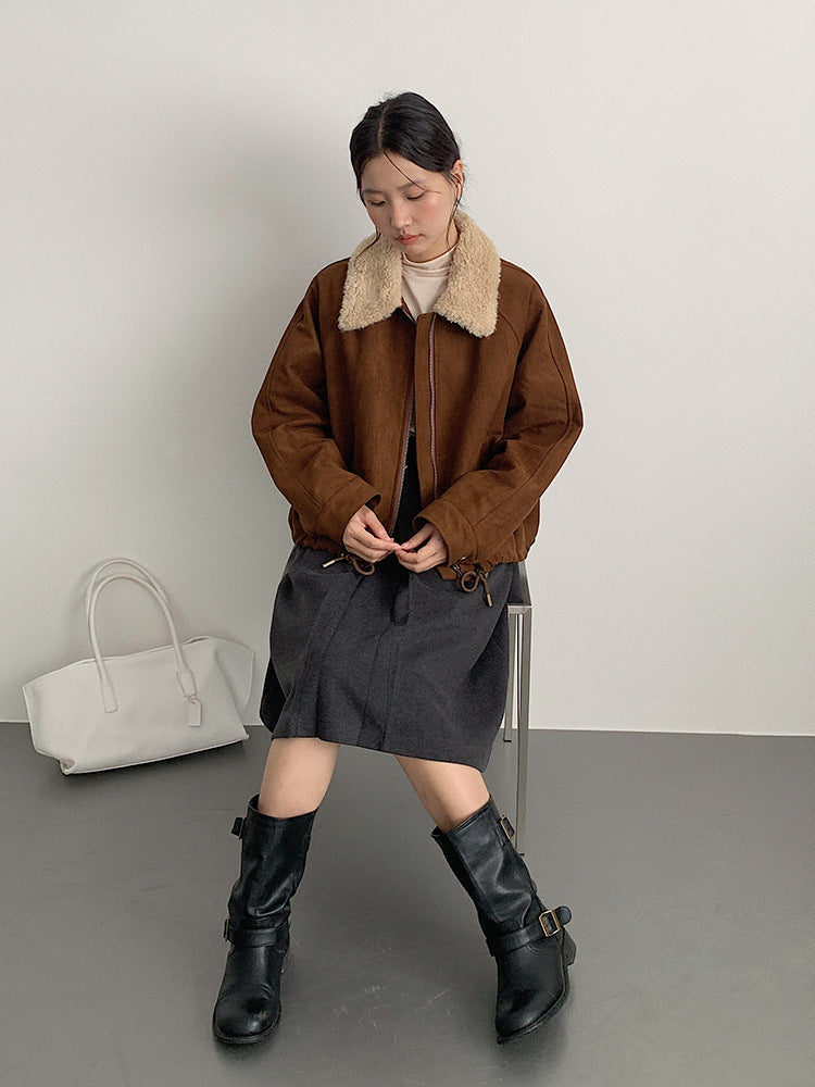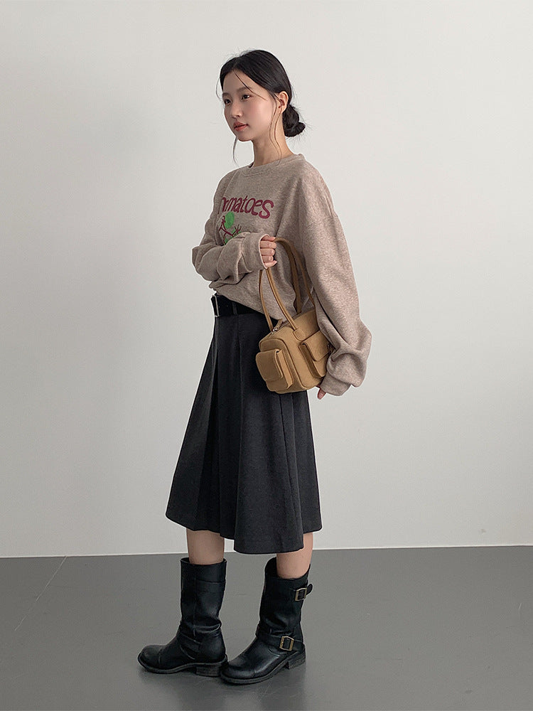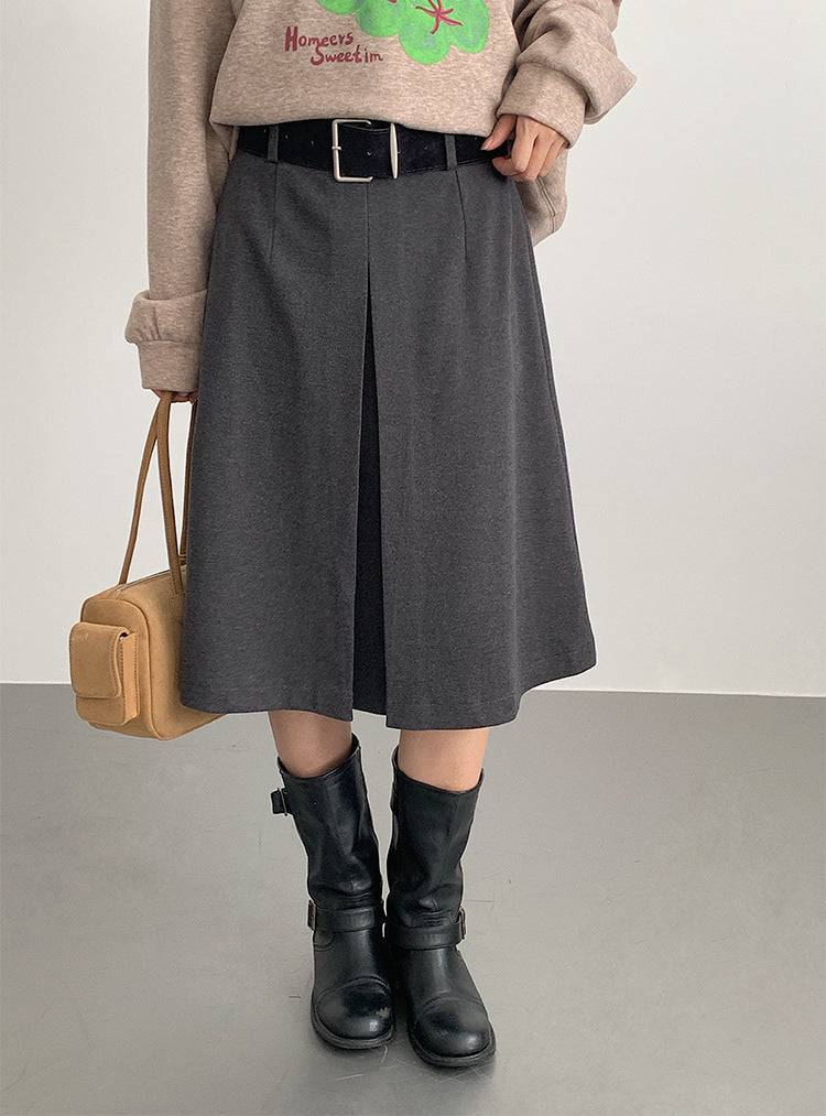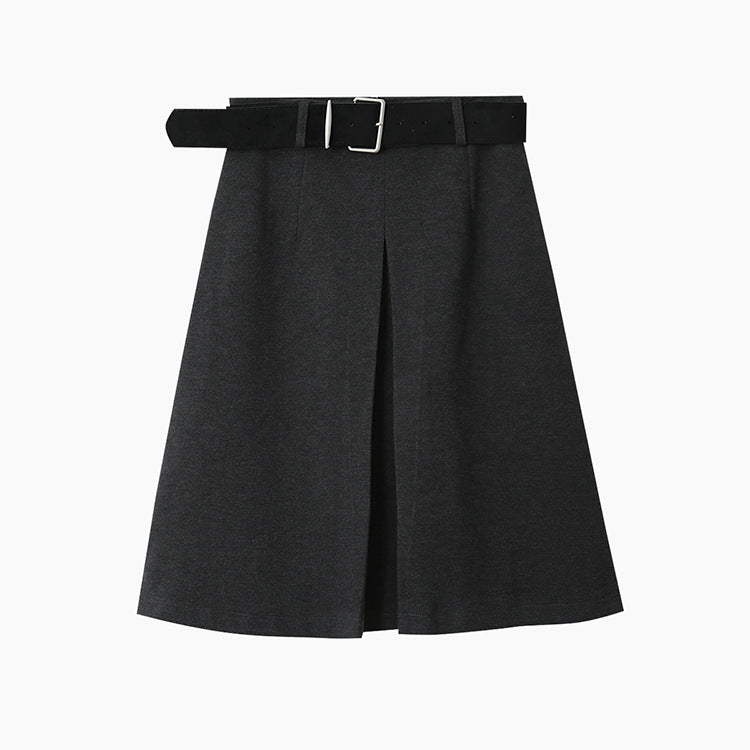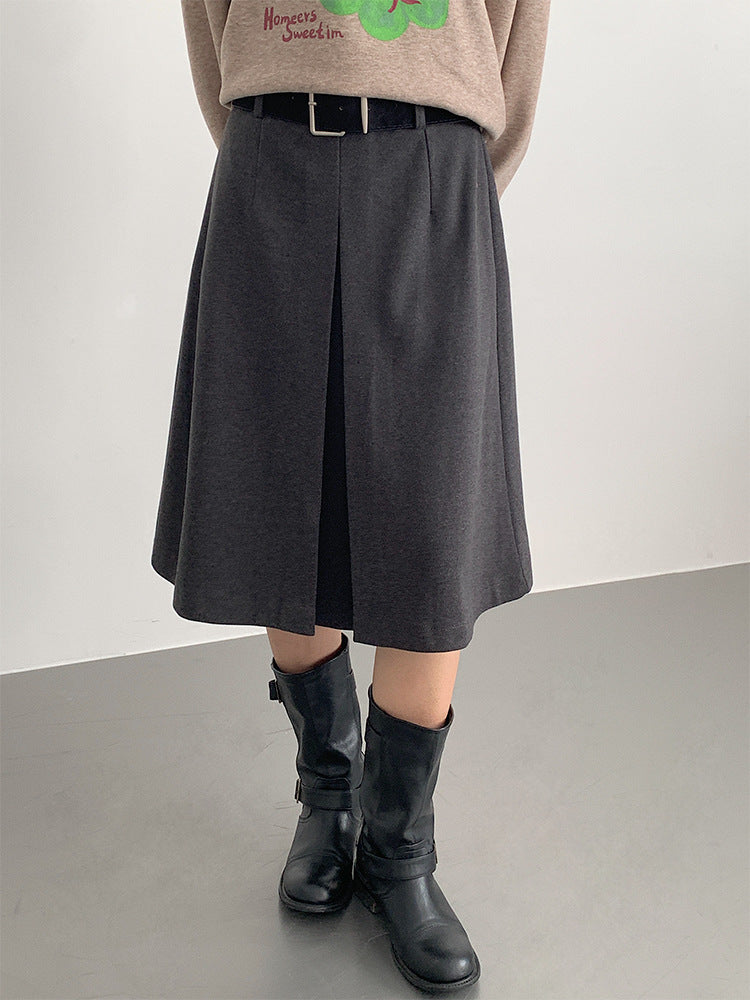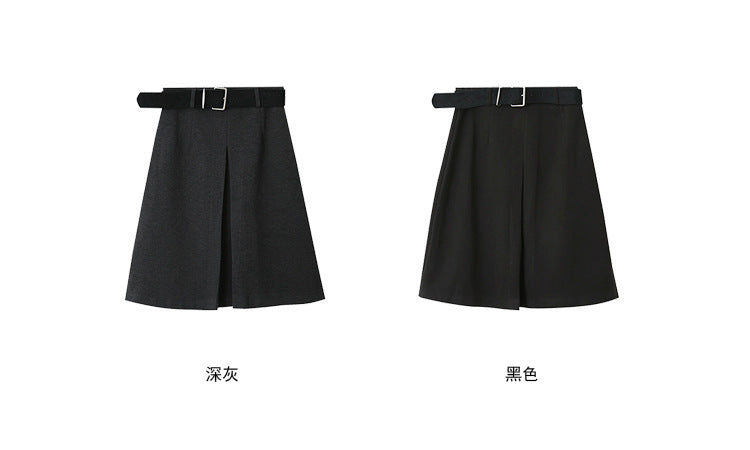 【LD3300】實拍S~XL韓版高腰顯瘦毛呢A字裙+腰帶251103