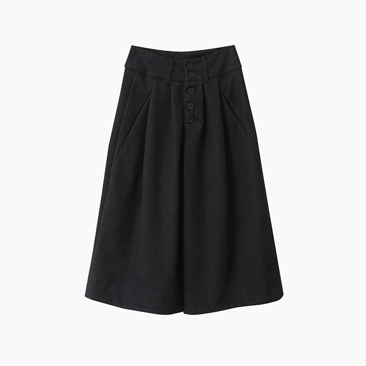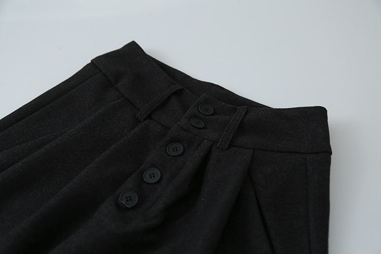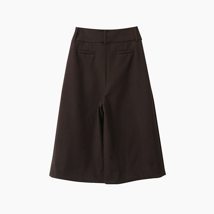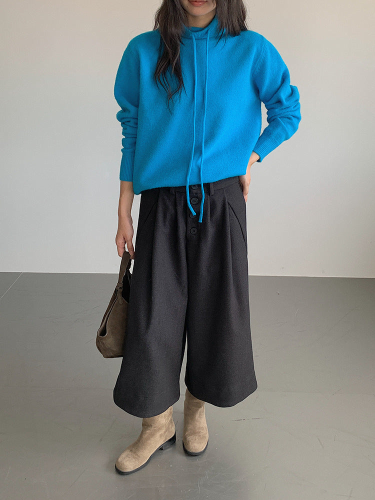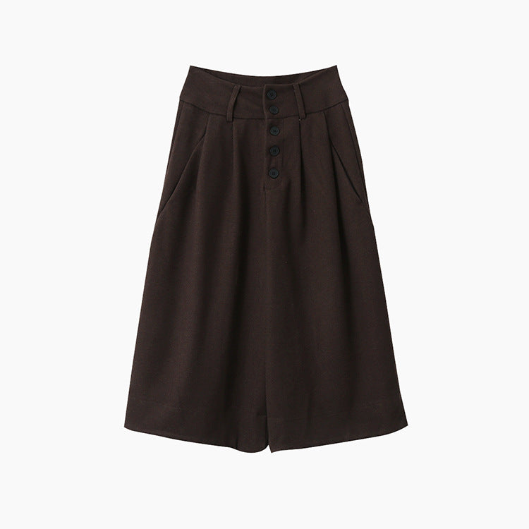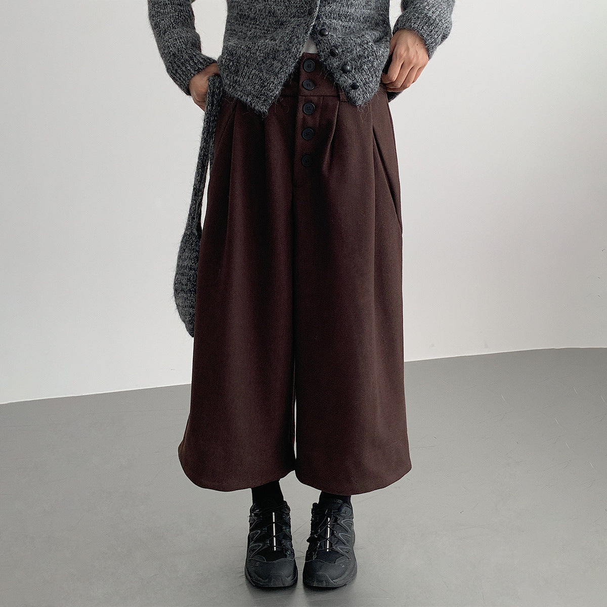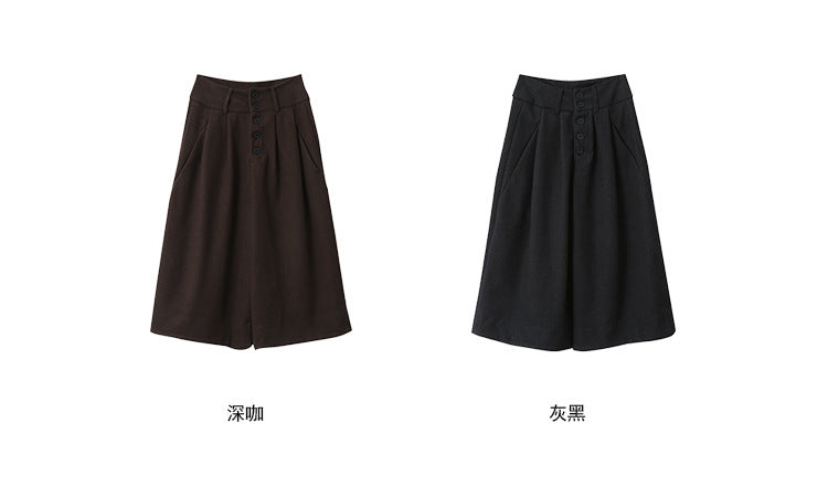 【LD3301】實拍韓系簡約高腰毛呢闊腿七分褲251103