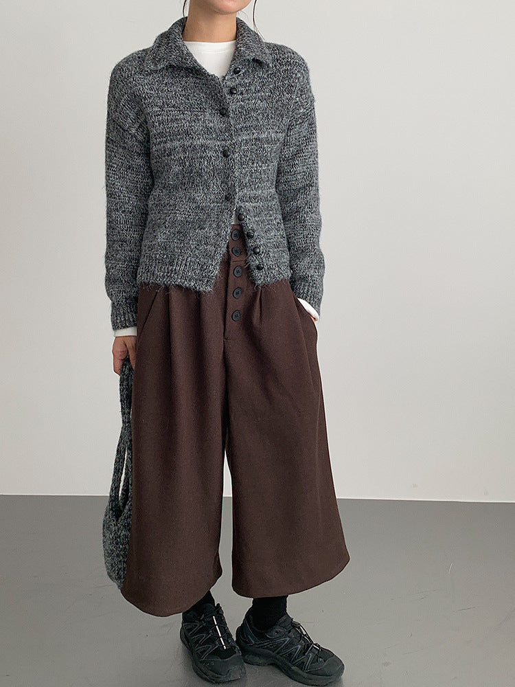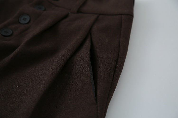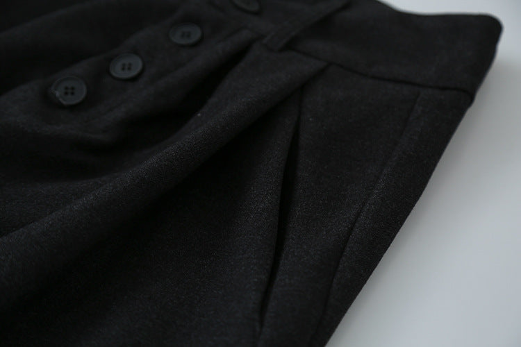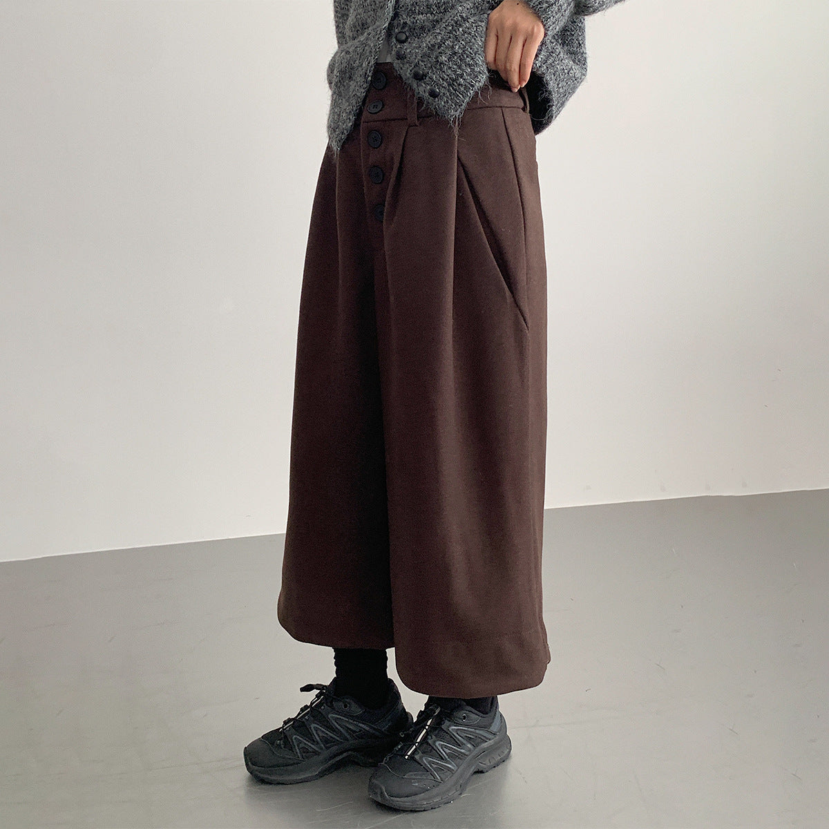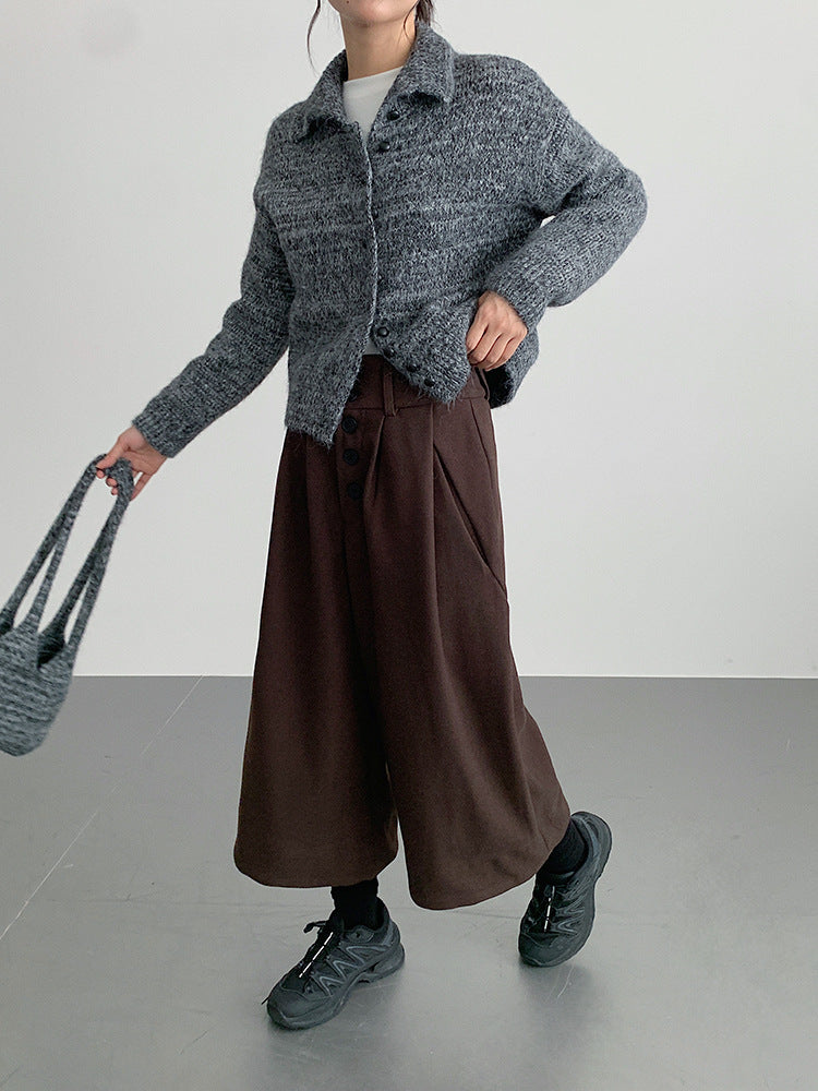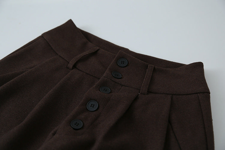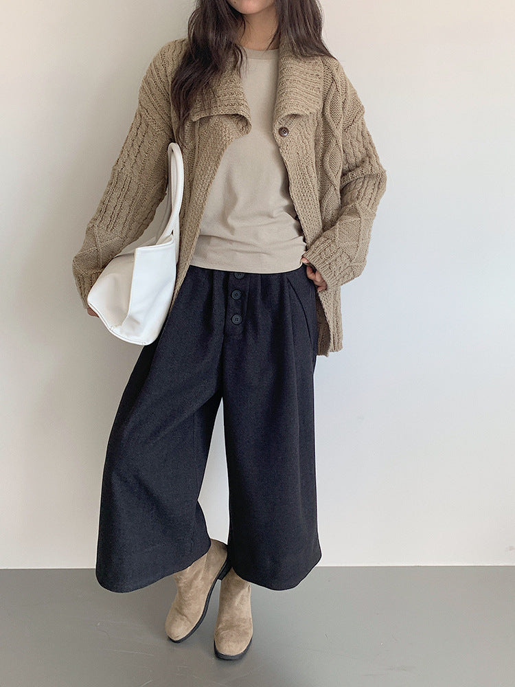【LD3301】實拍韓系簡約高腰毛呢闊腿七分褲251103