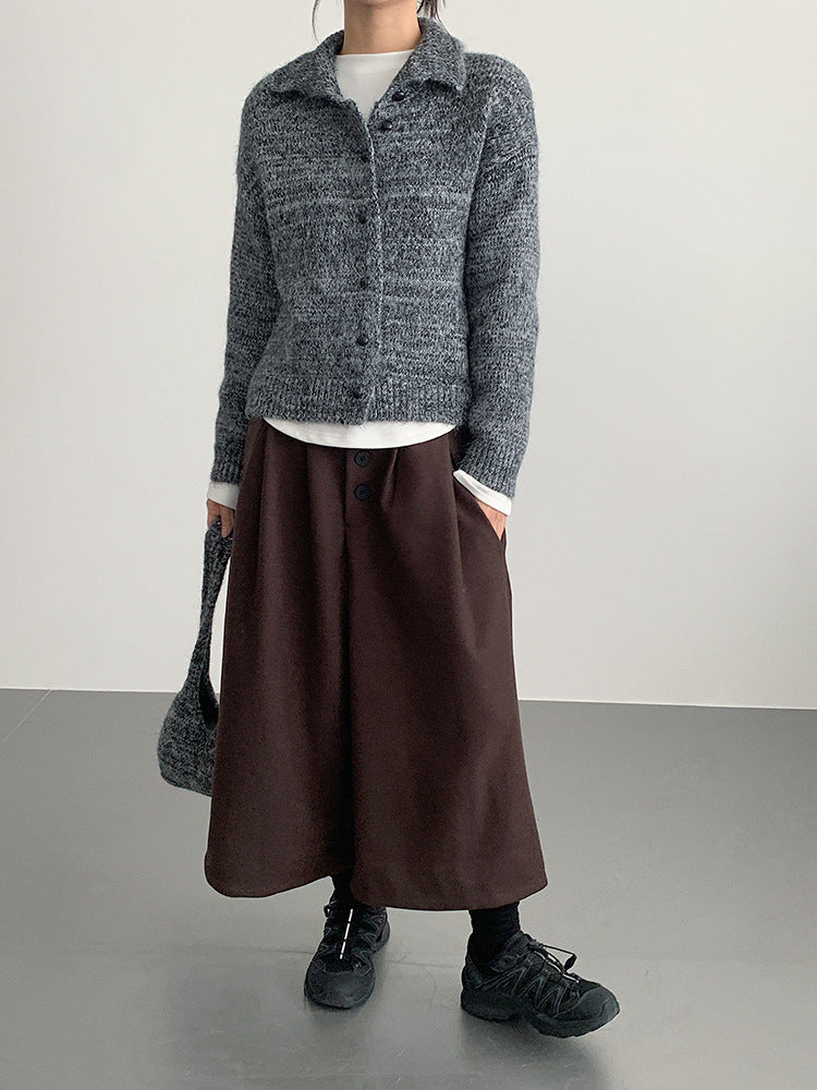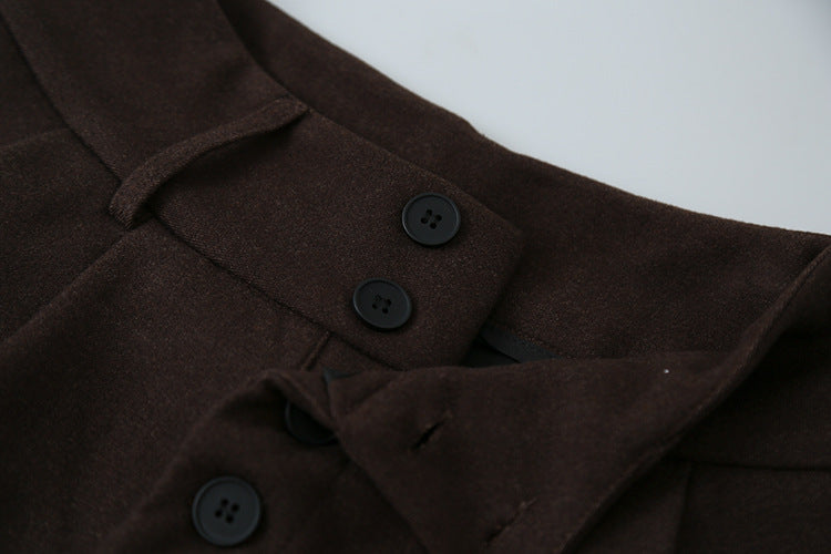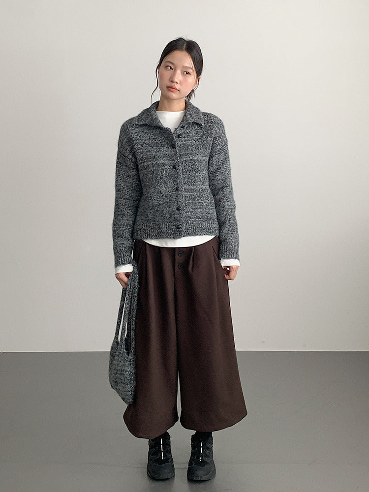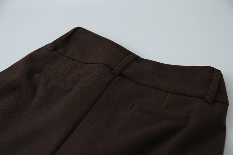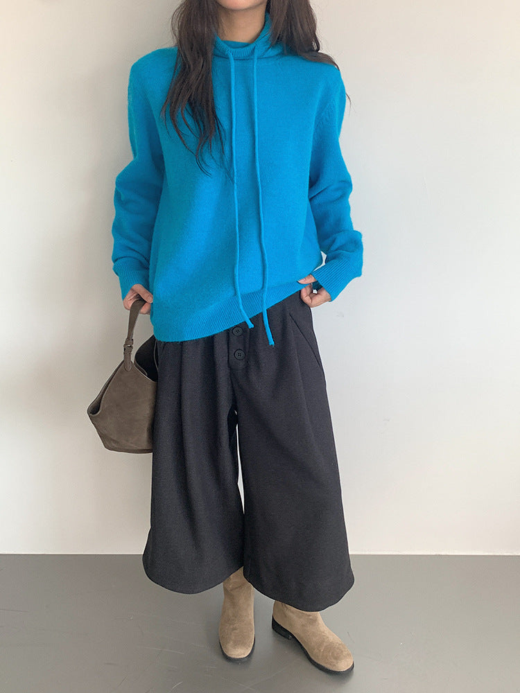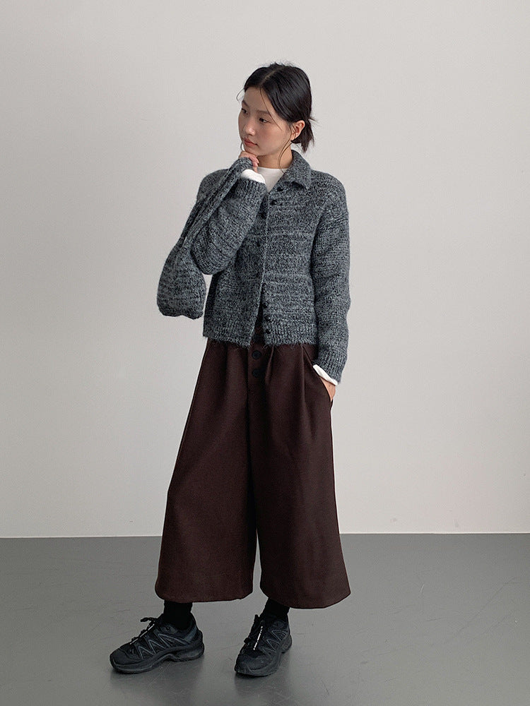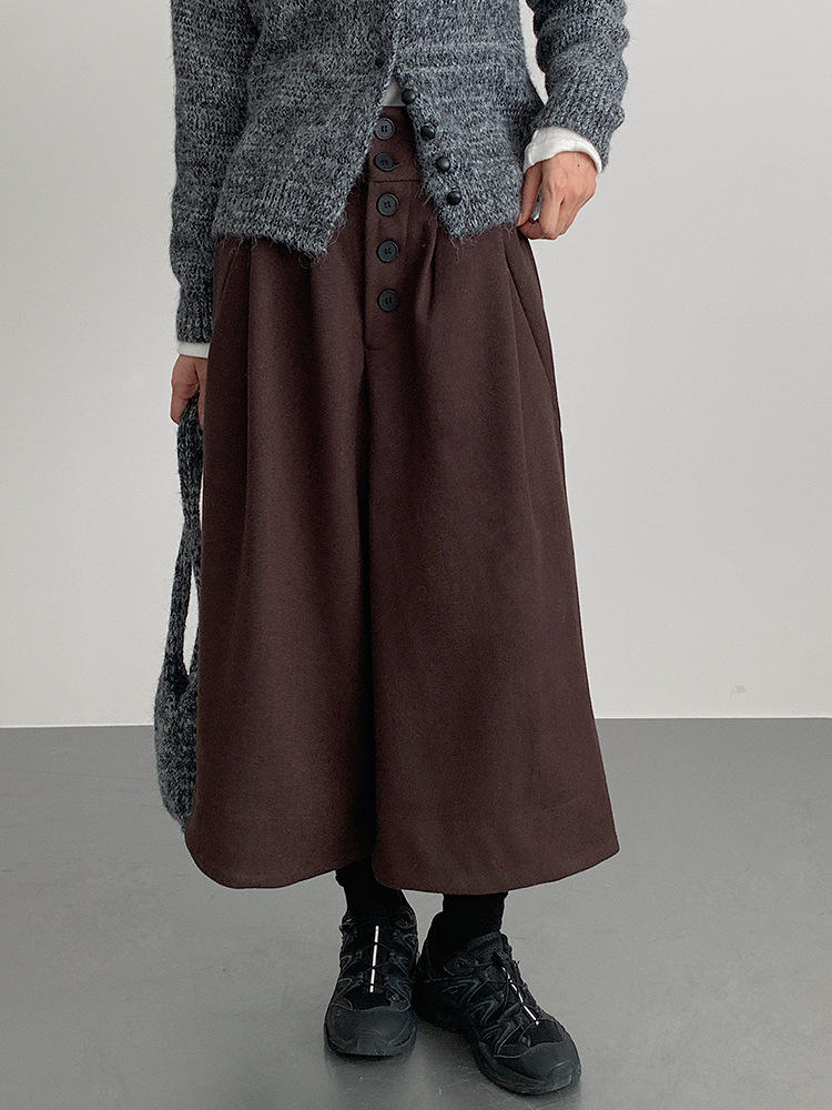 【LD3301】實拍韓系簡約高腰毛呢闊腿七分褲251103