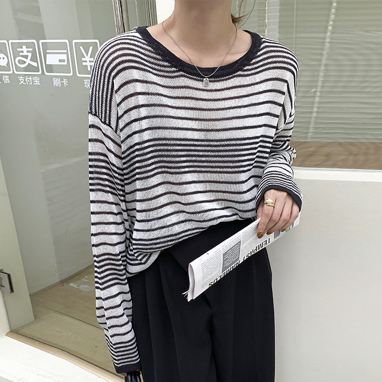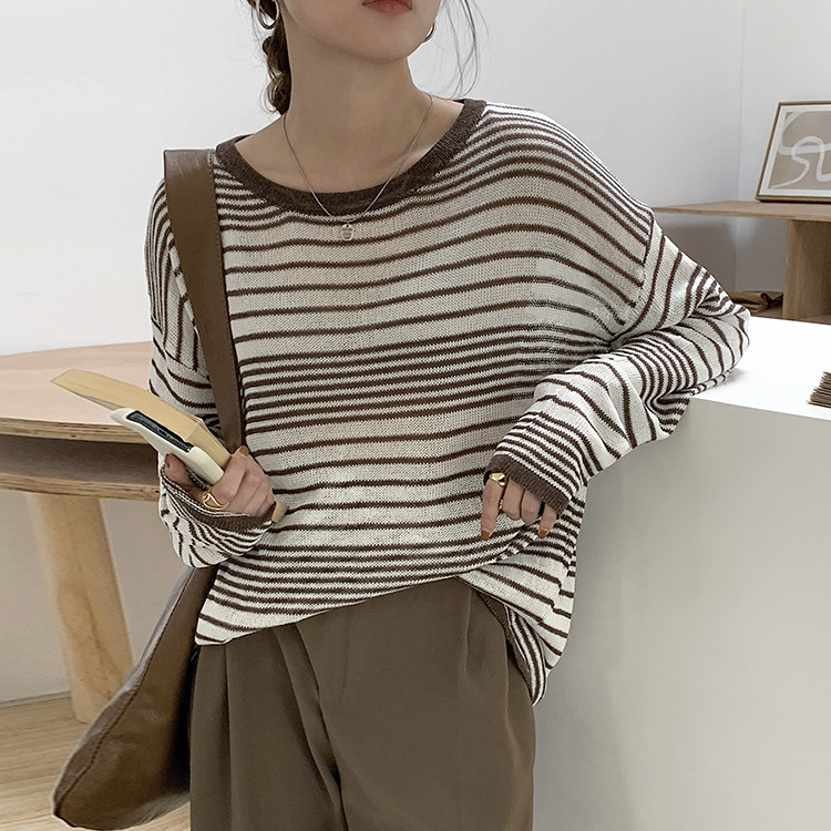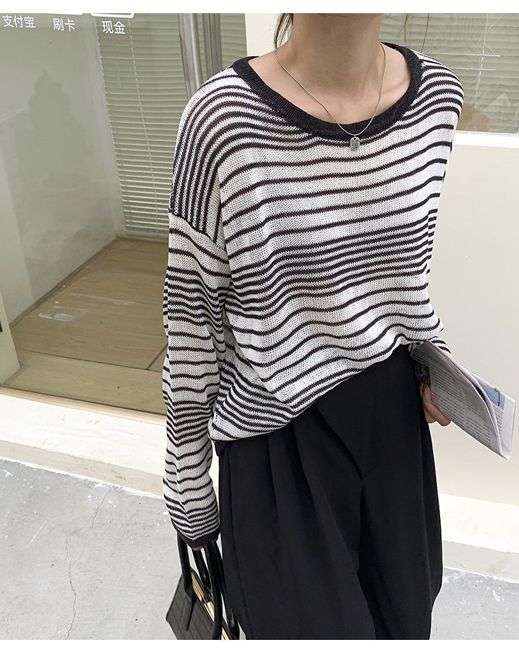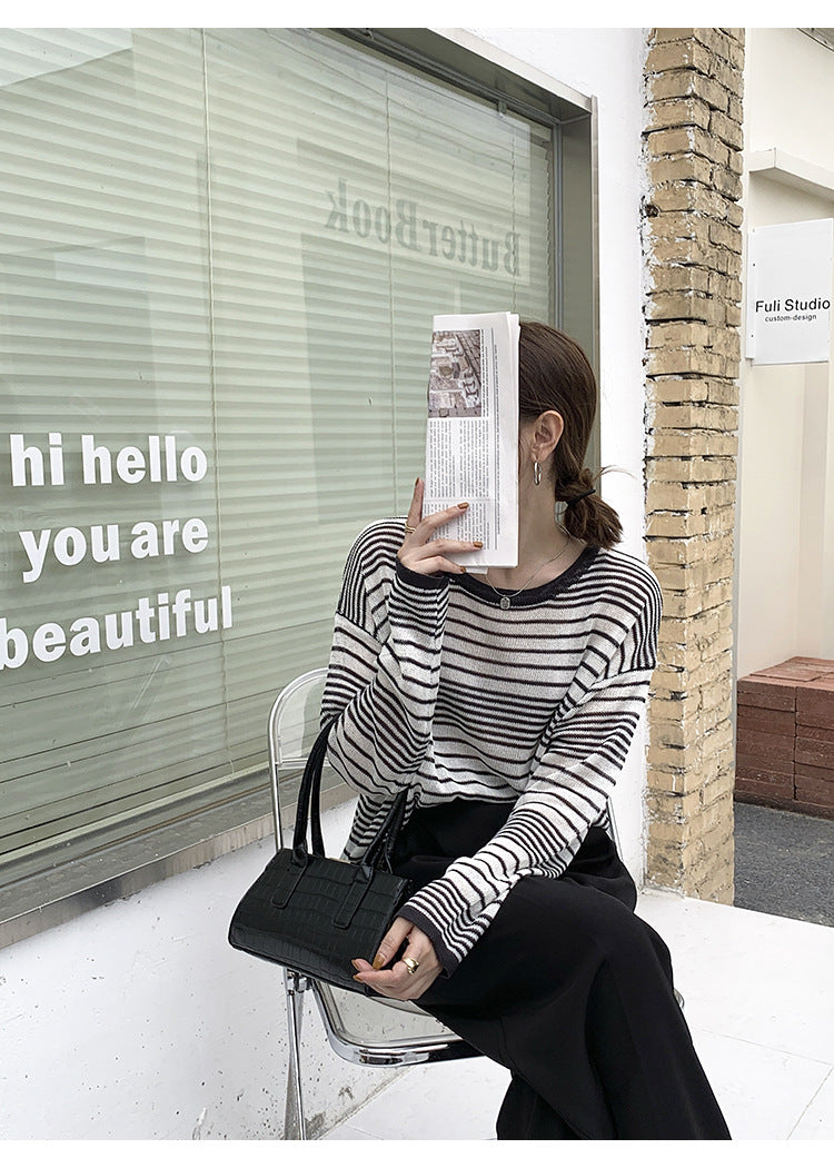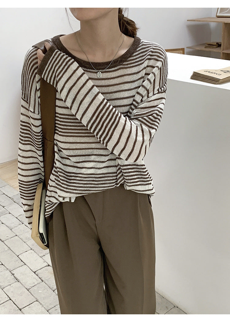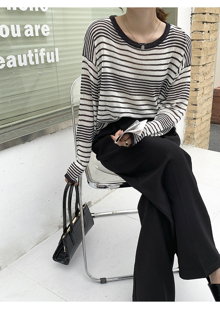 【LD8128】實拍初秋長銷款條紋圓領針織衫250908