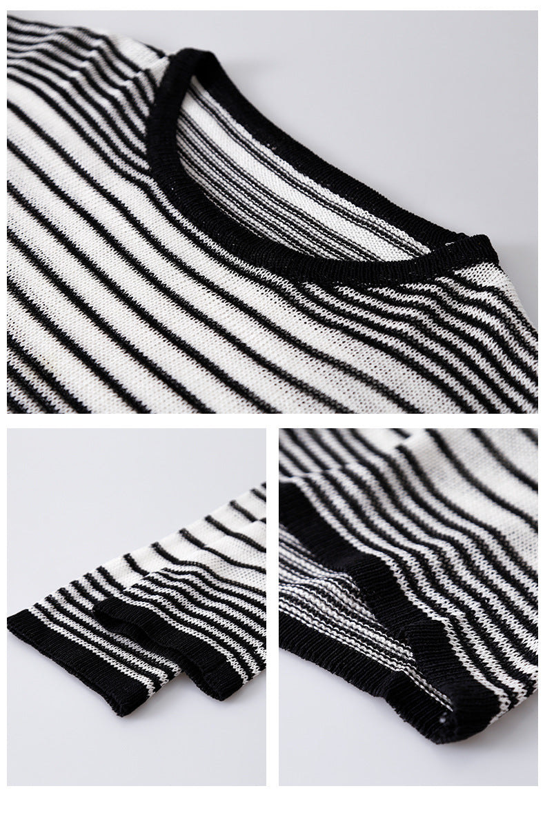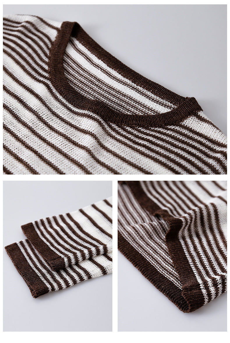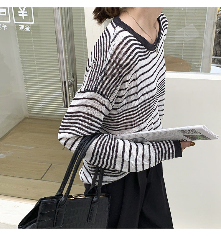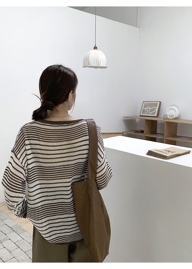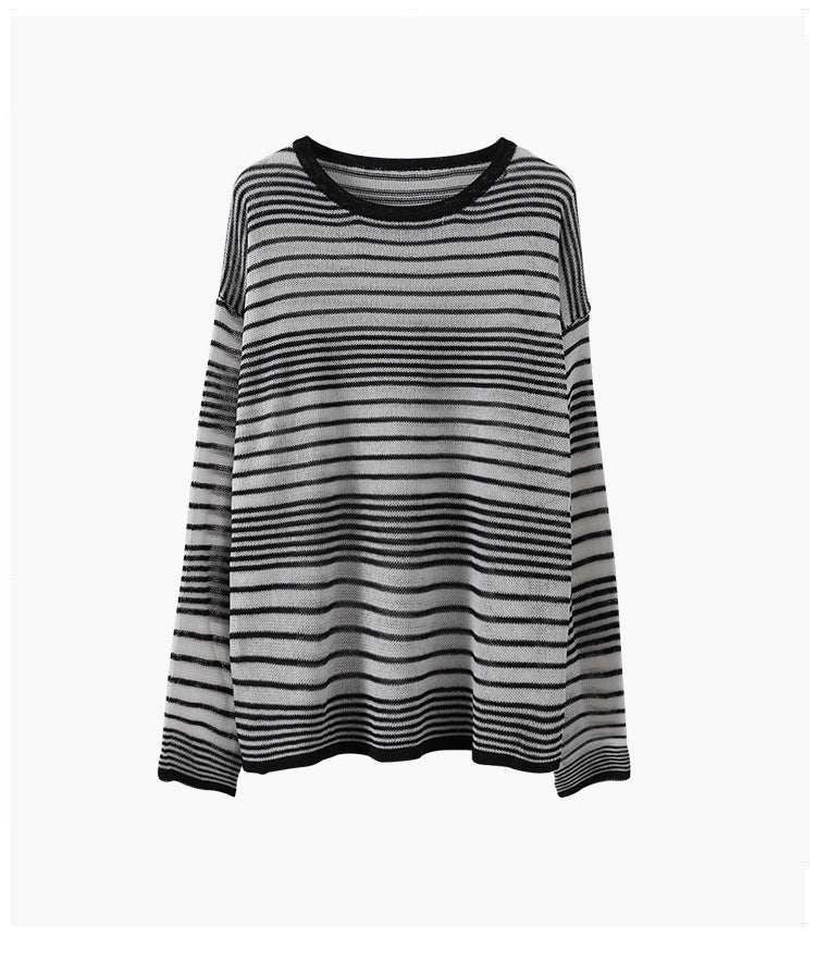 【LD8128】實拍初秋長銷款條紋圓領針織衫250908