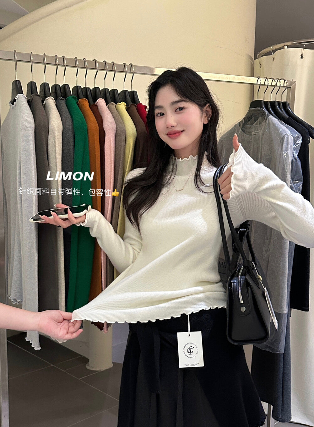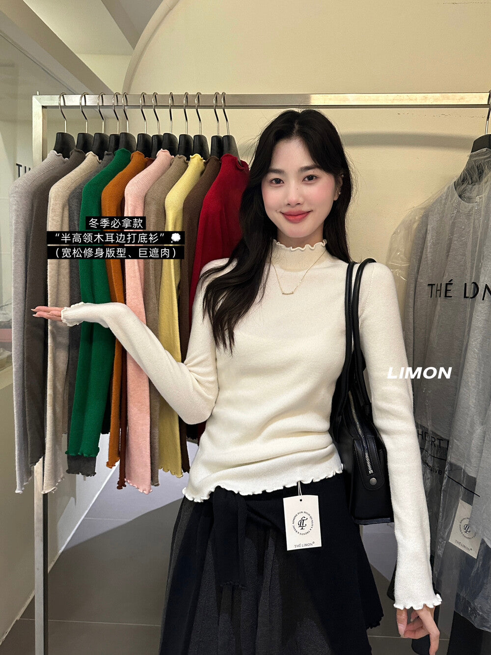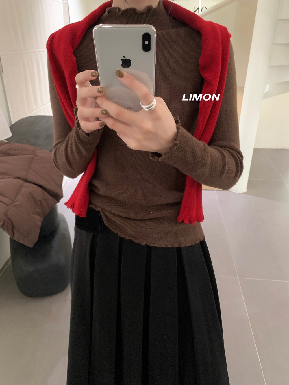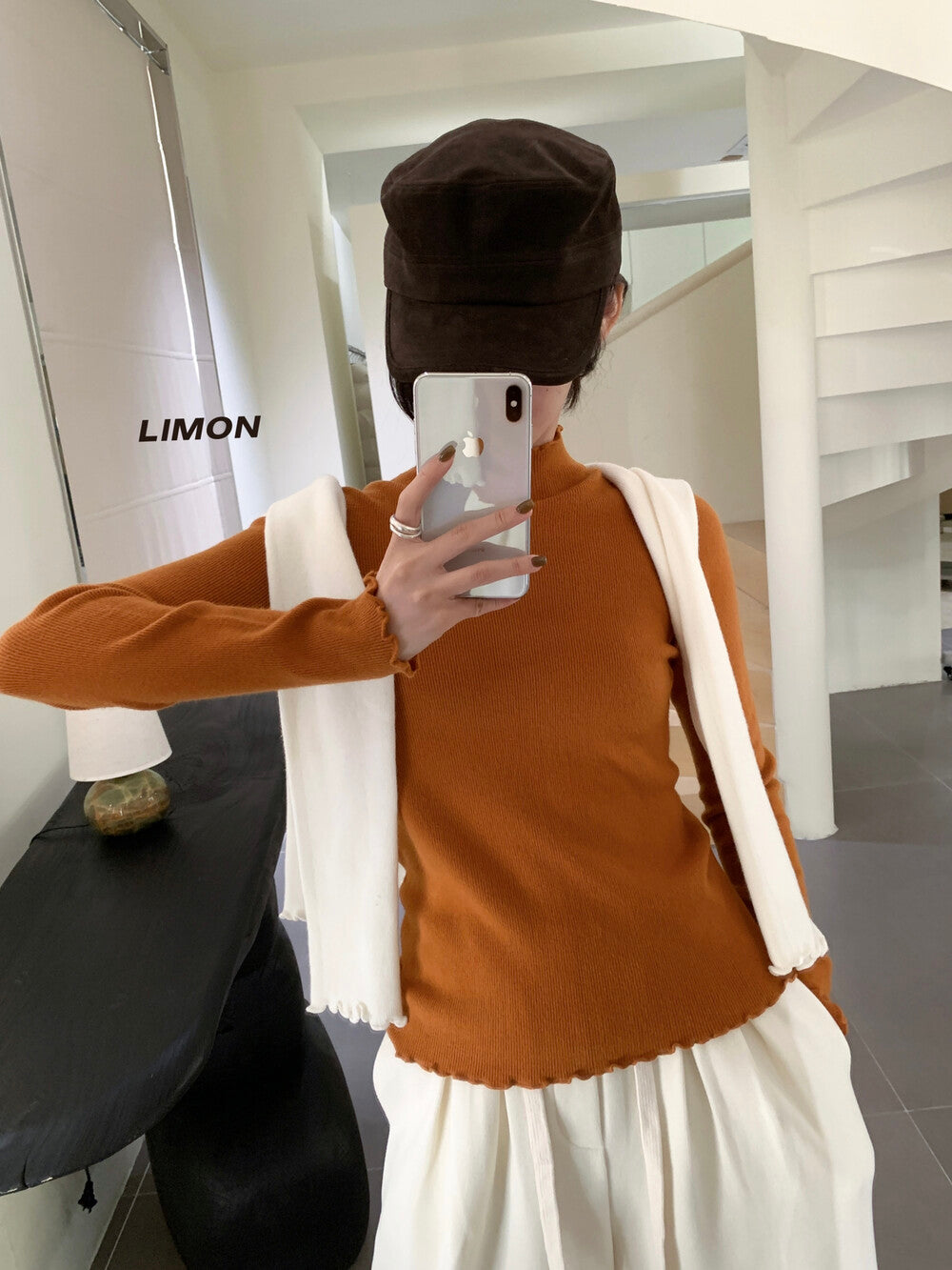 【LDF006】檸檬家親膚絨木耳邊半高領長袖針織衫251117