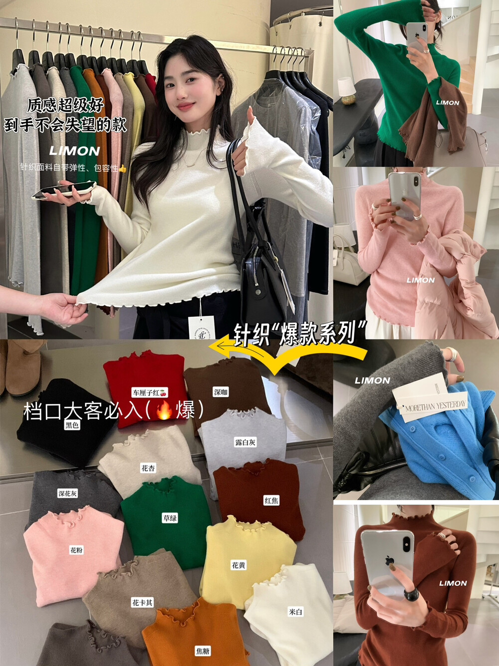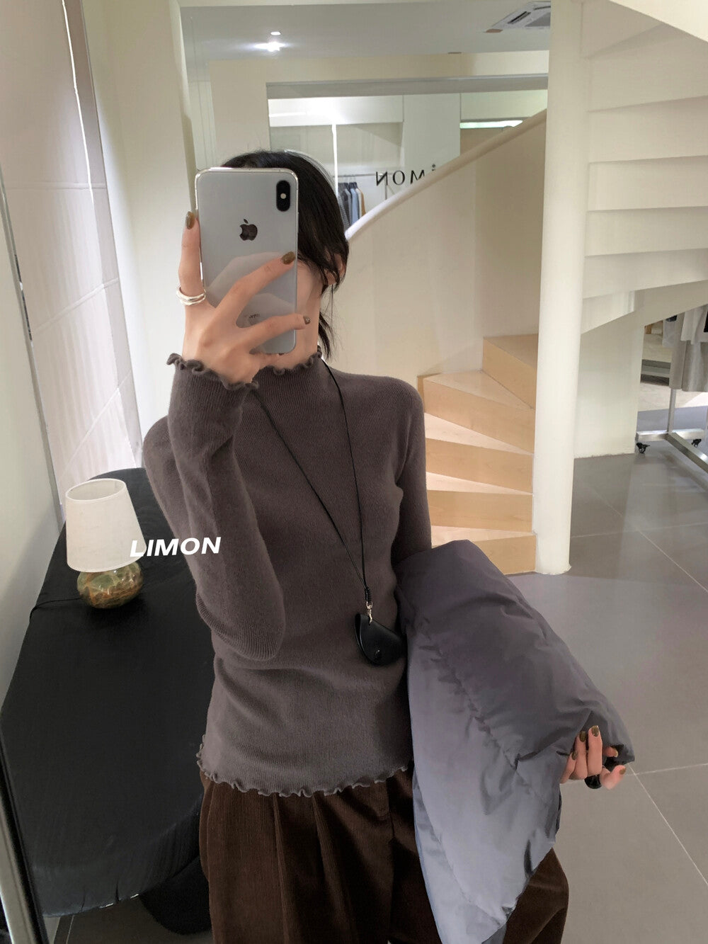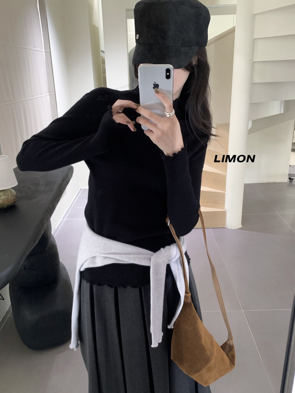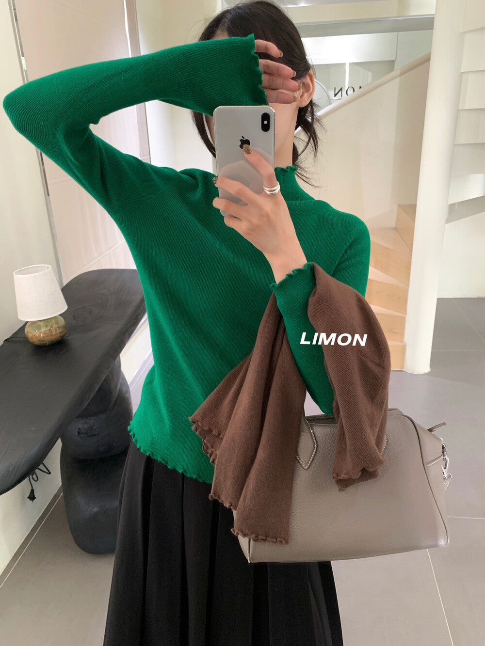 【LDF006】檸檬家親膚絨木耳邊半高領長袖針織衫251117