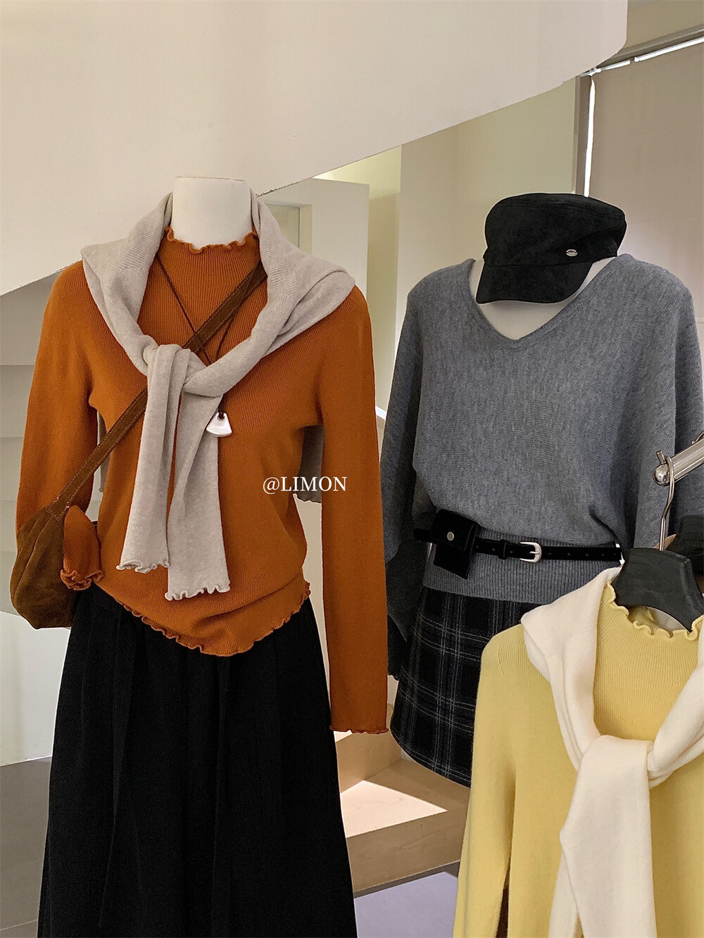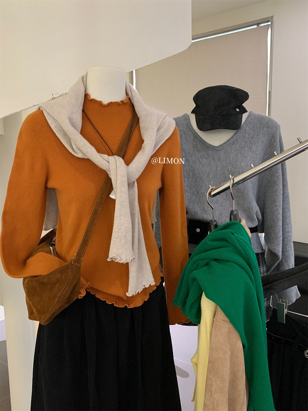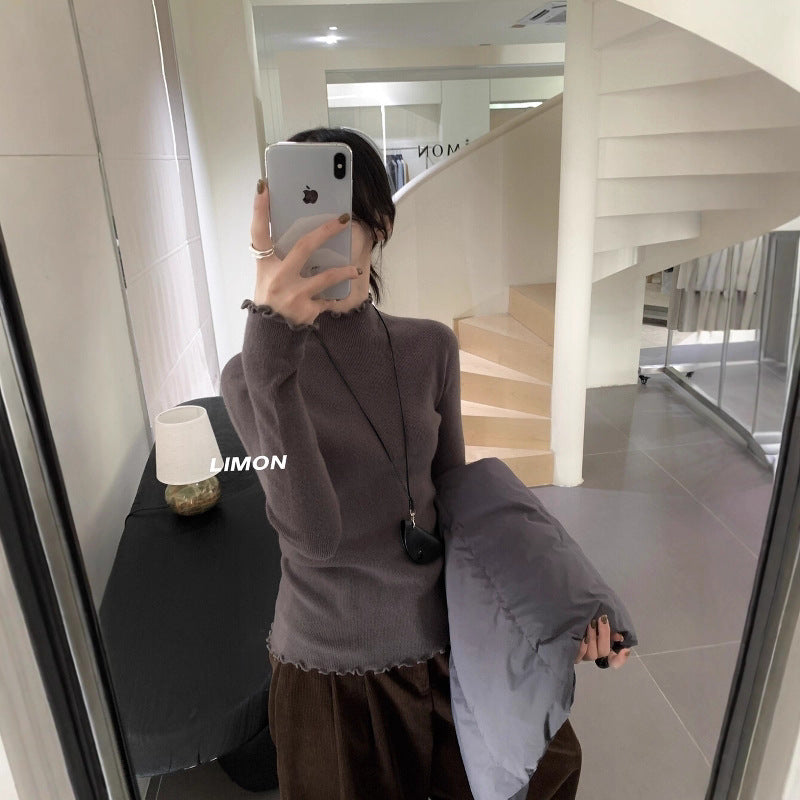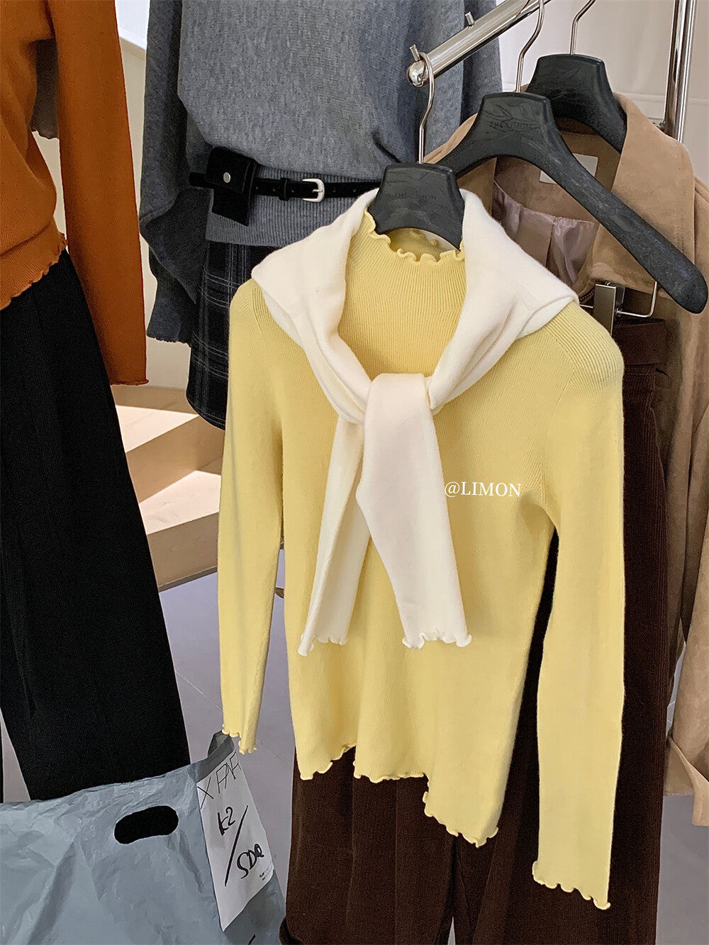 【LDF006】檸檬家親膚絨木耳邊半高領長袖針織衫251117