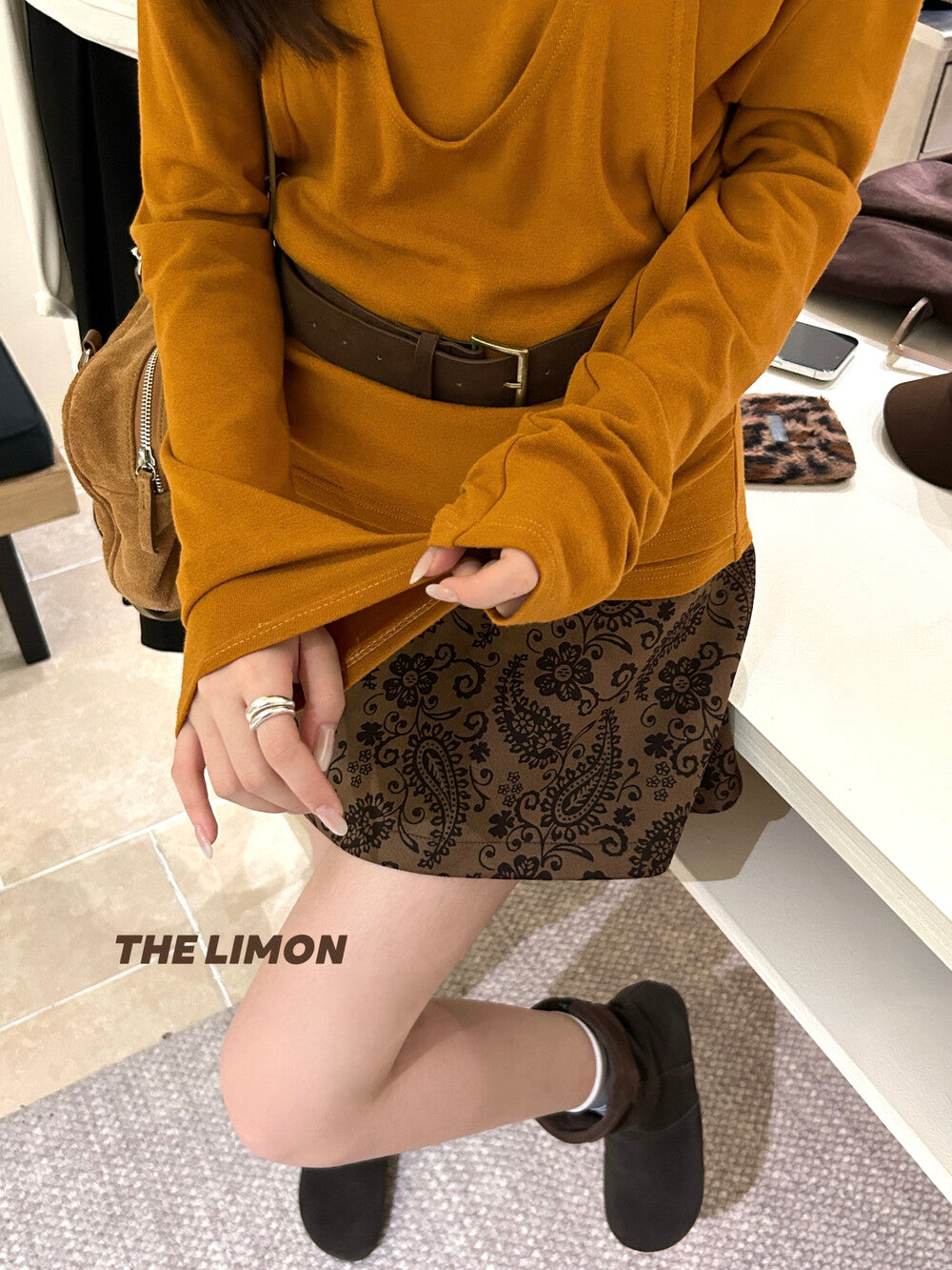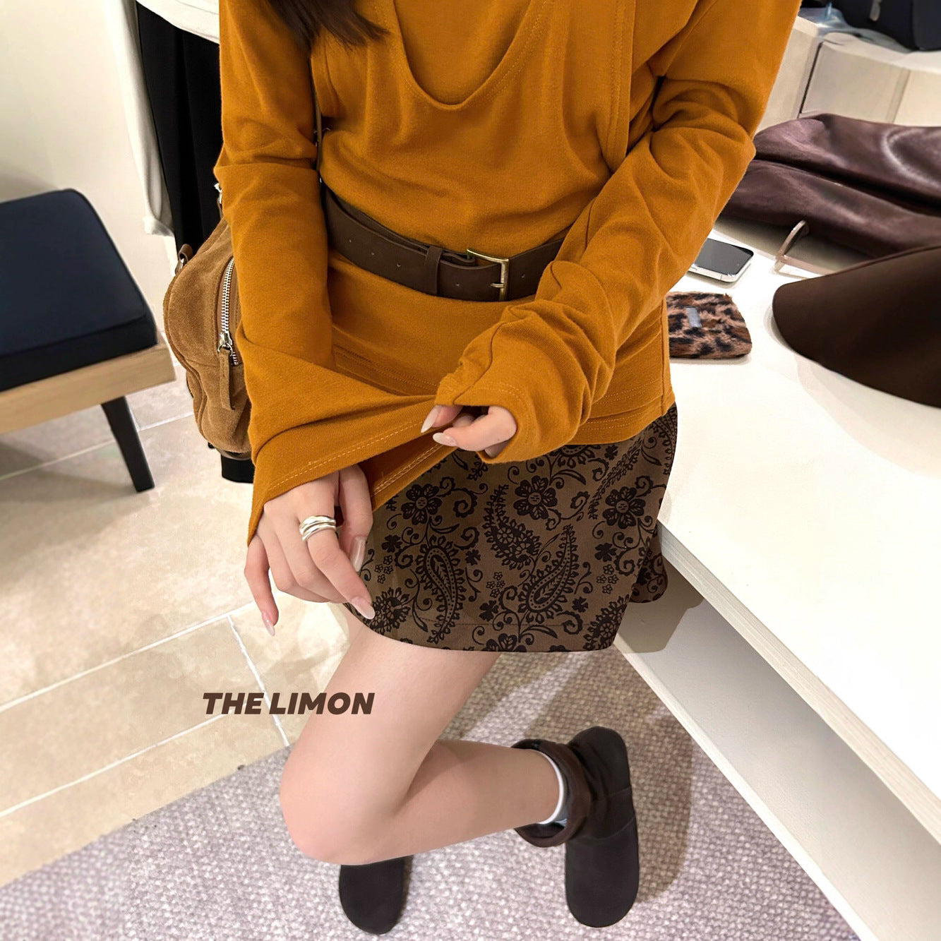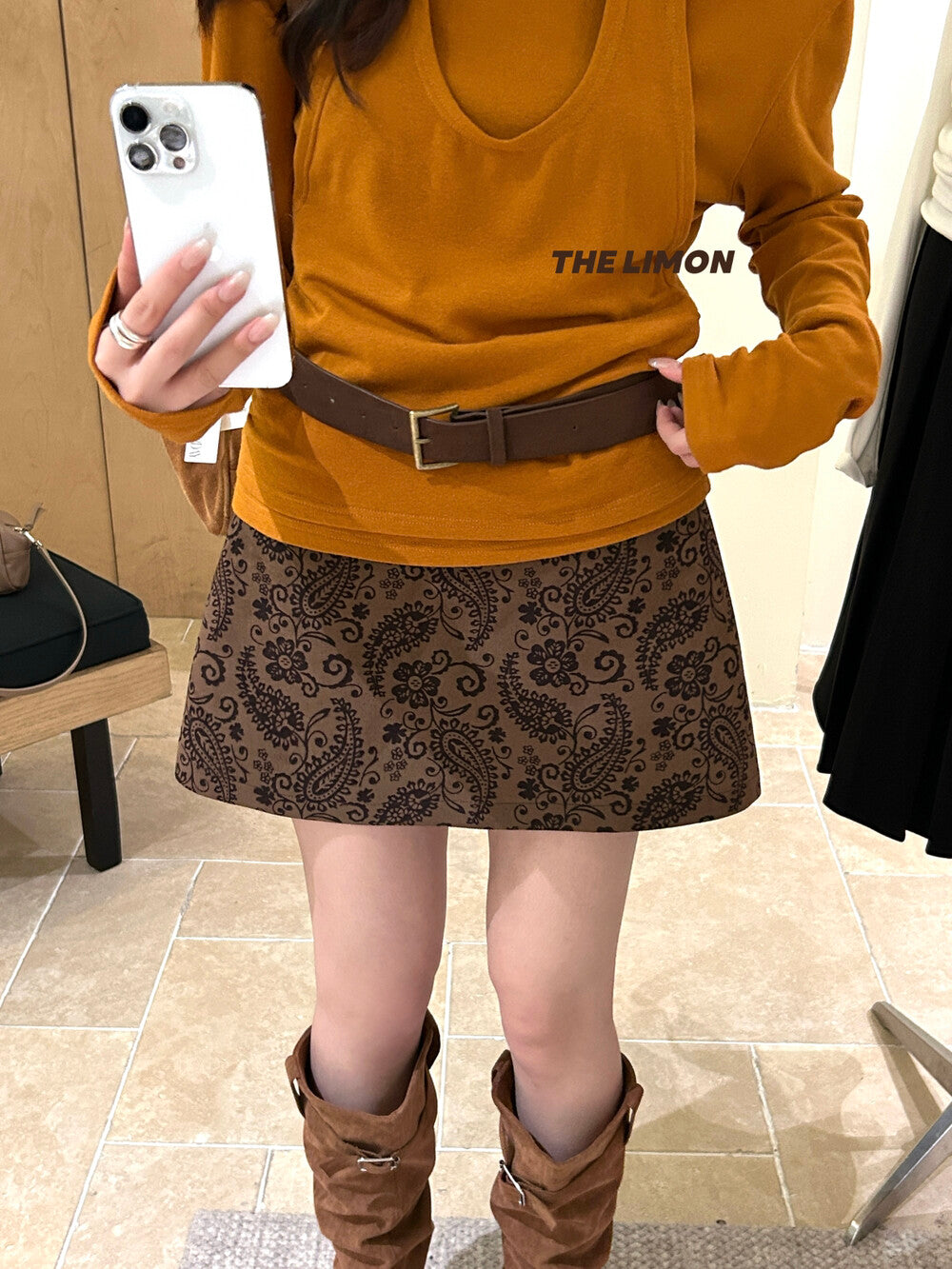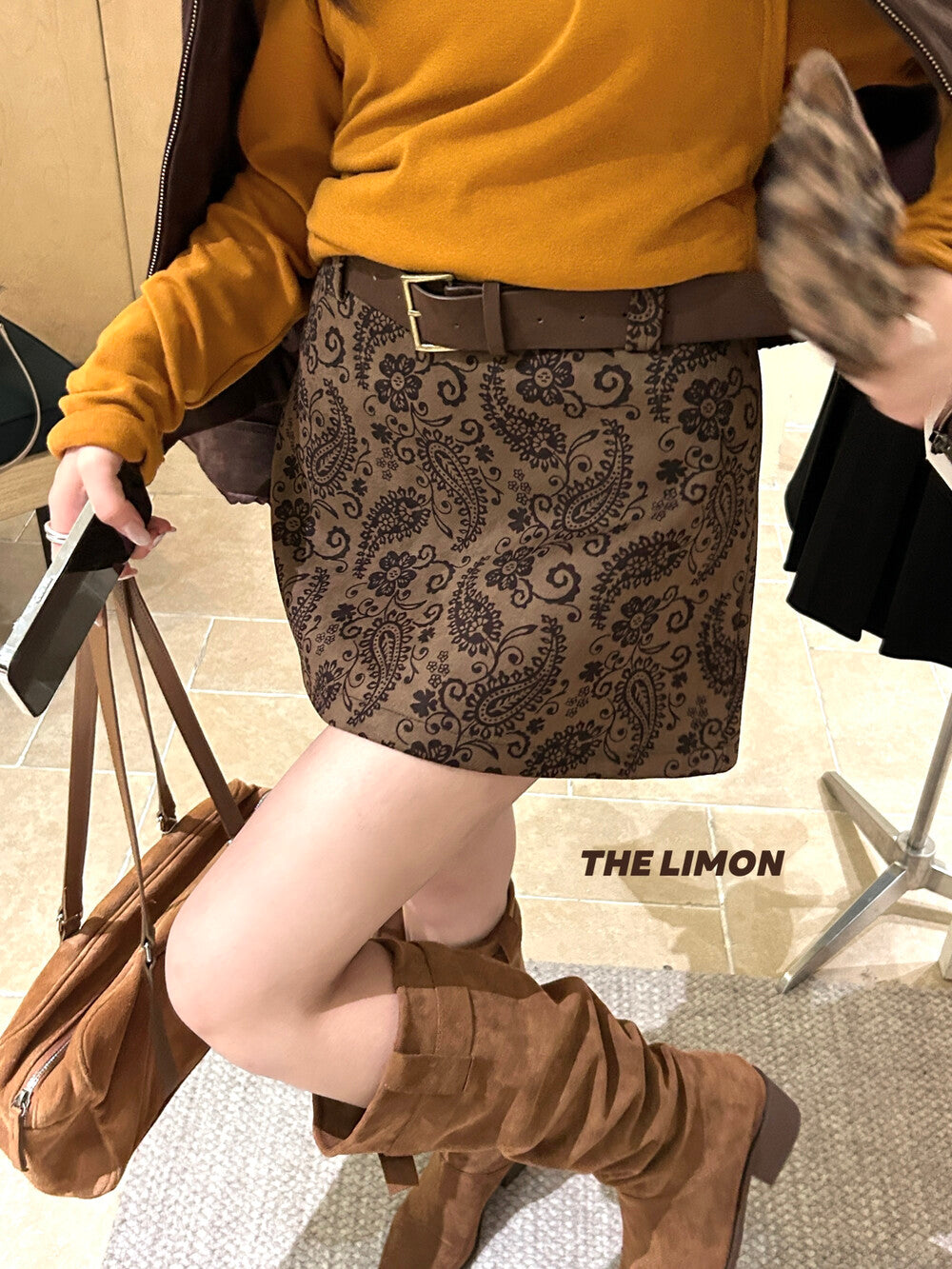 【LTM1171】實拍檸檬法式復古麂皮絨高腰裙+腰帶250923
