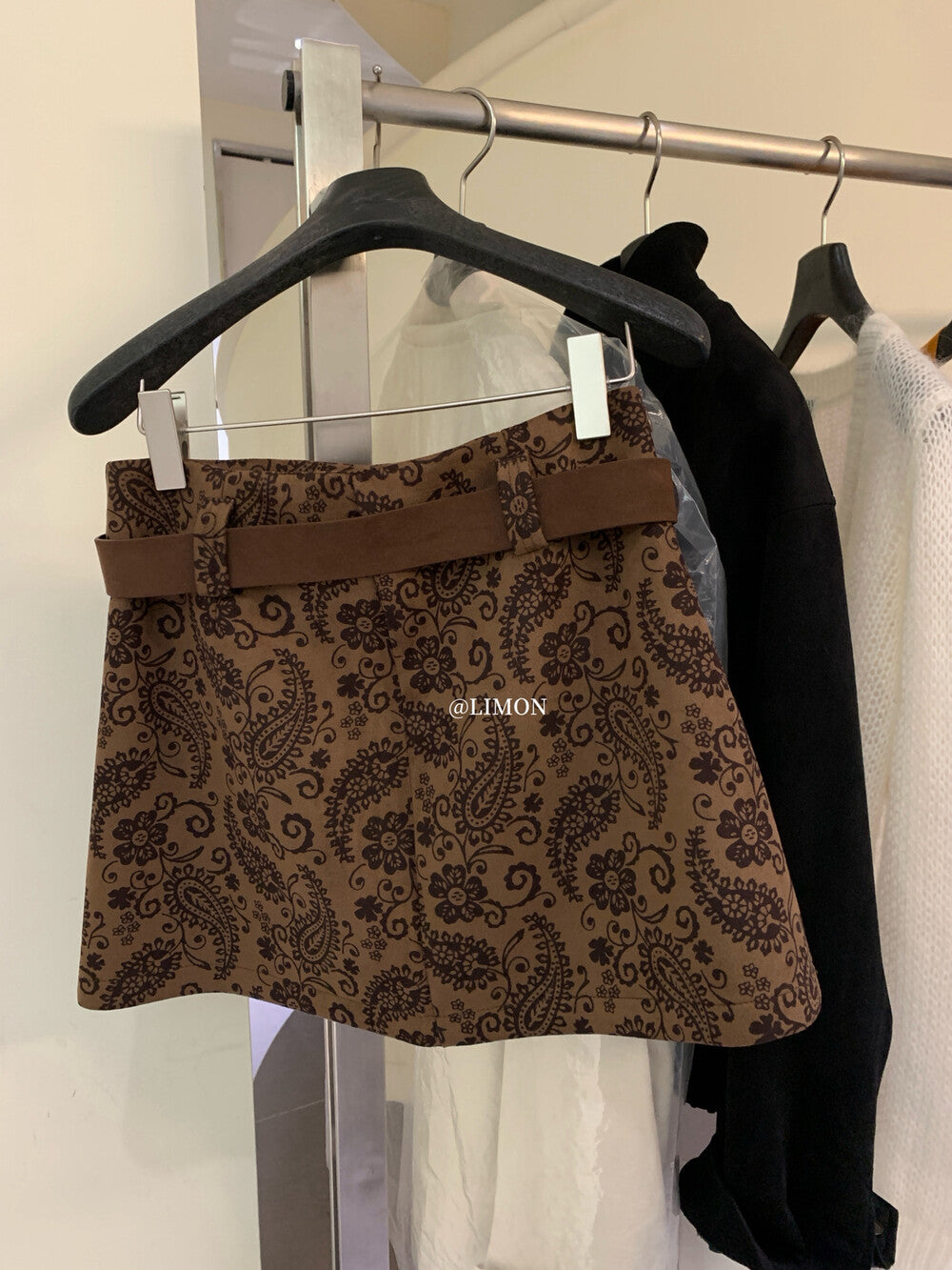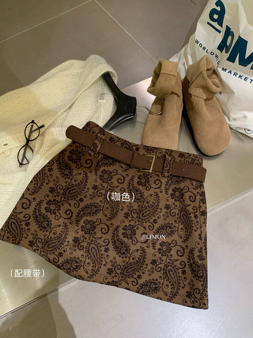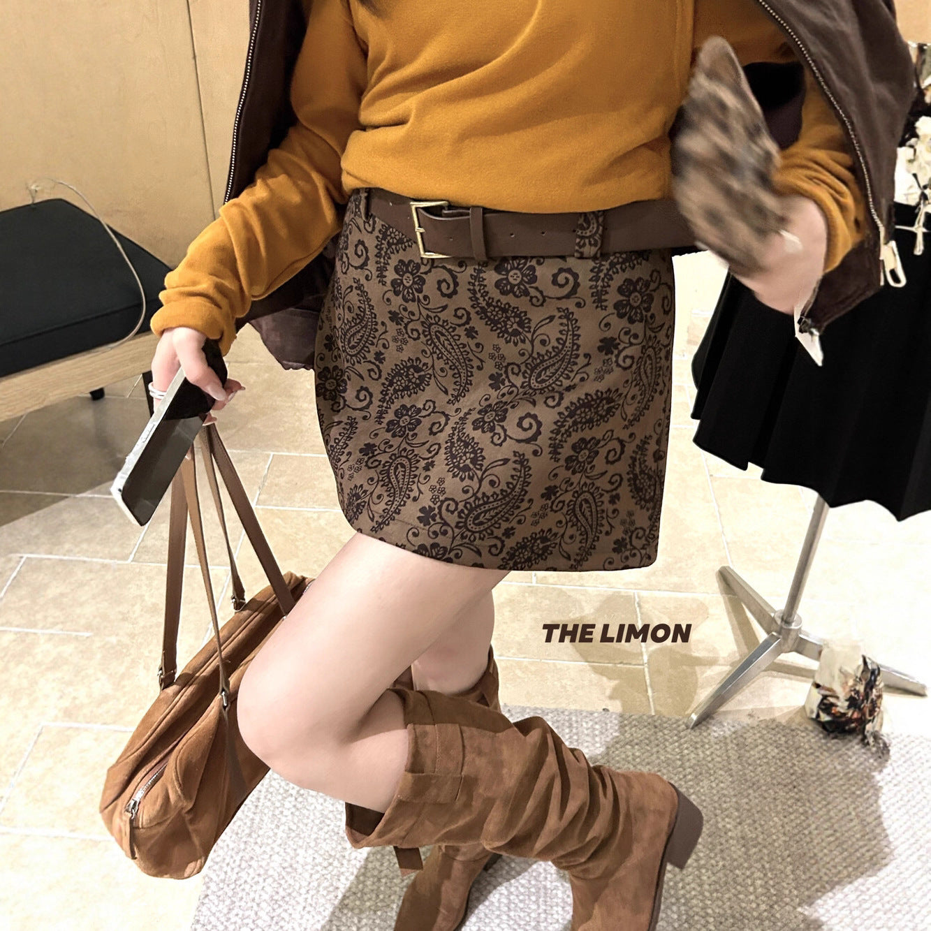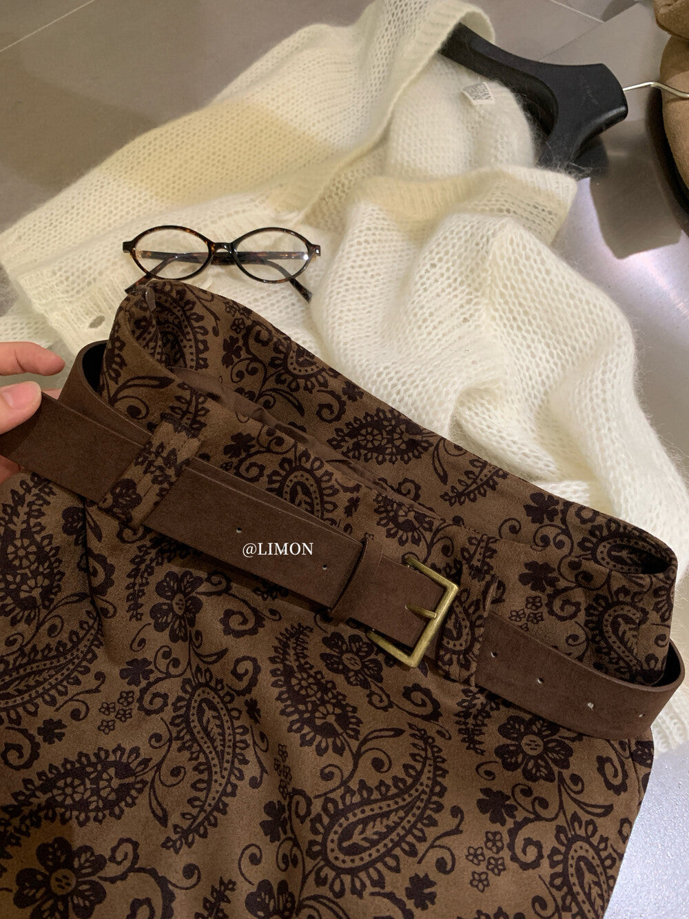 【LTM1171】實拍檸檬法式復古麂皮絨高腰裙+腰帶250923