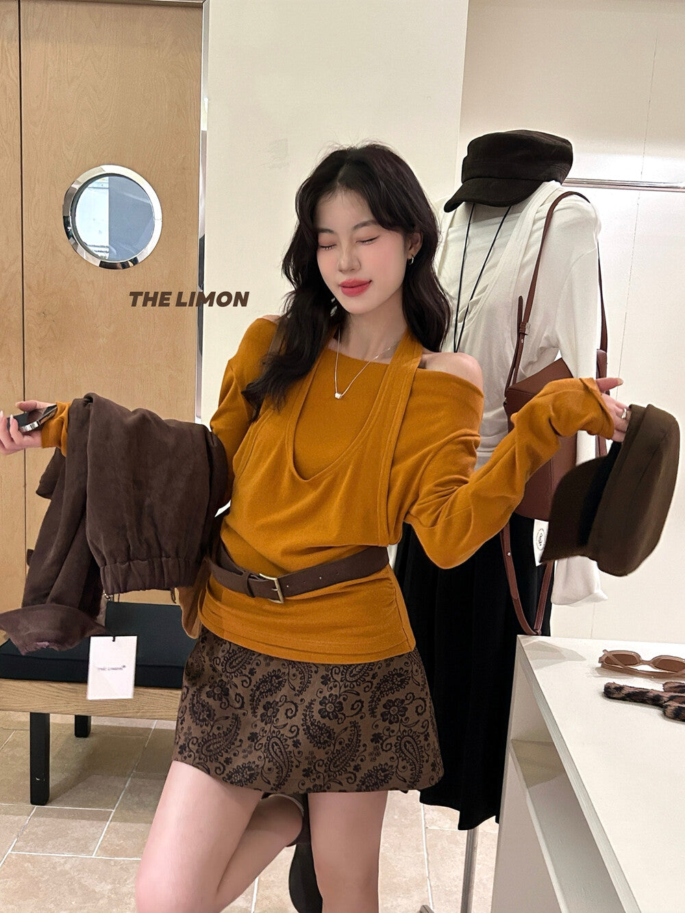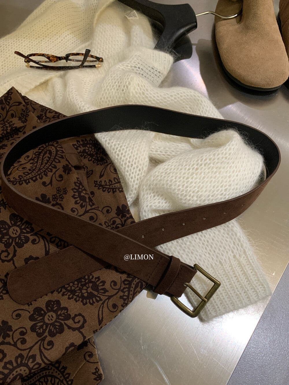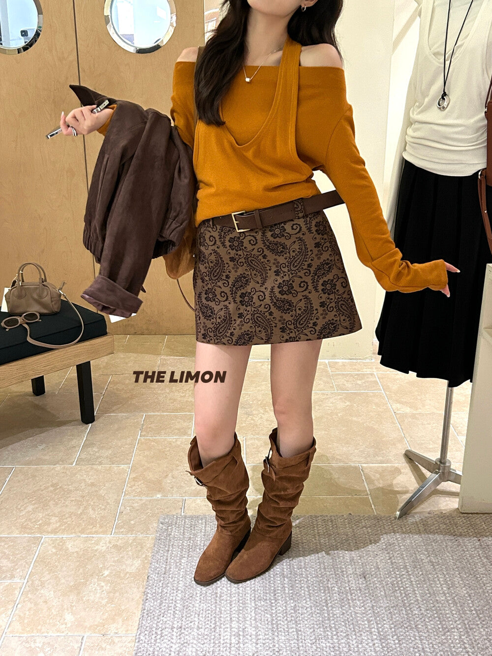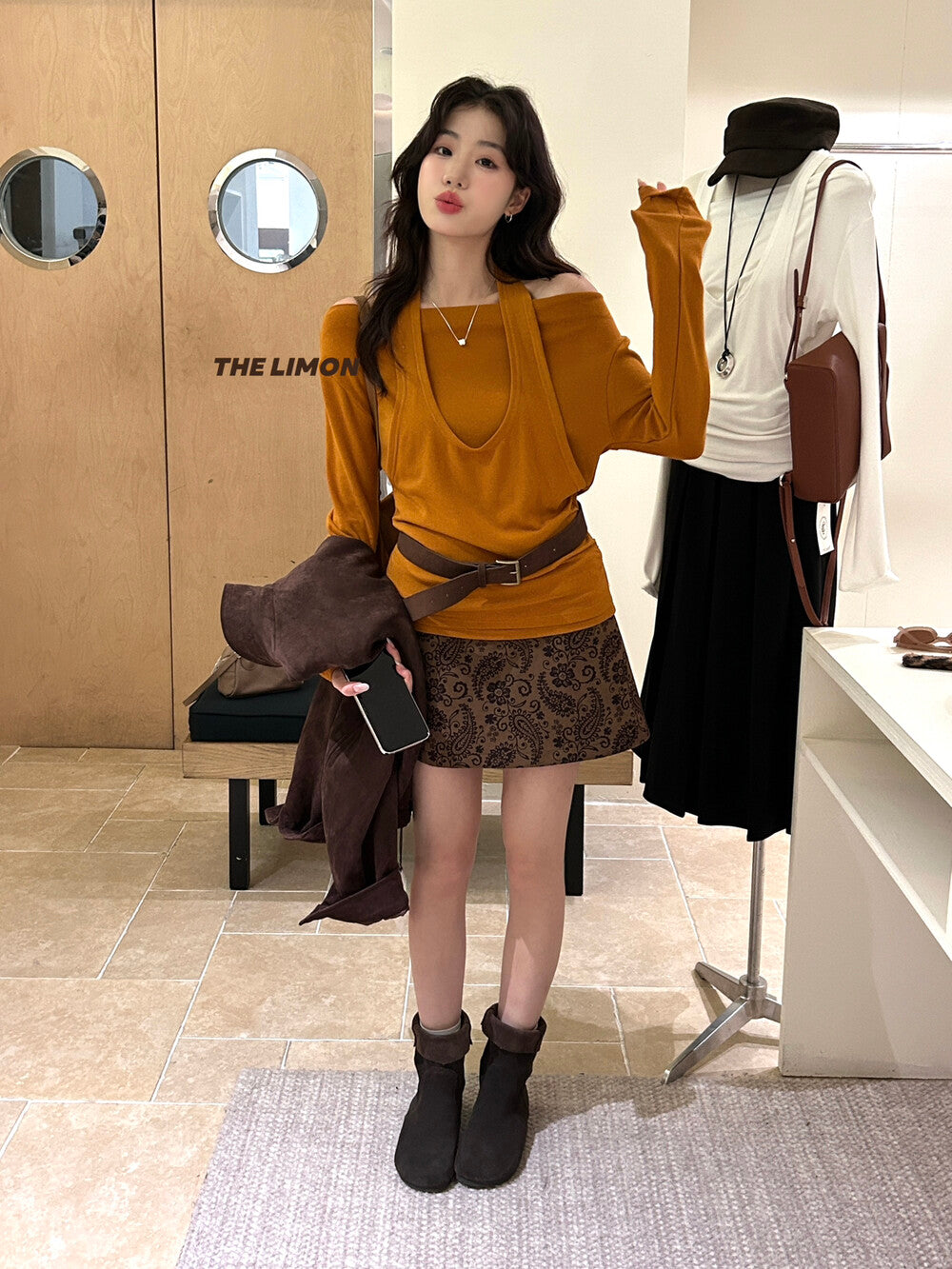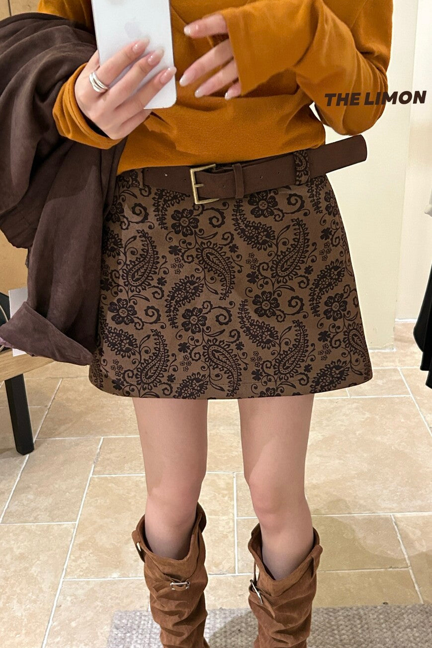 【LTM1171】實拍檸檬法式復古麂皮絨高腰裙+腰帶250923