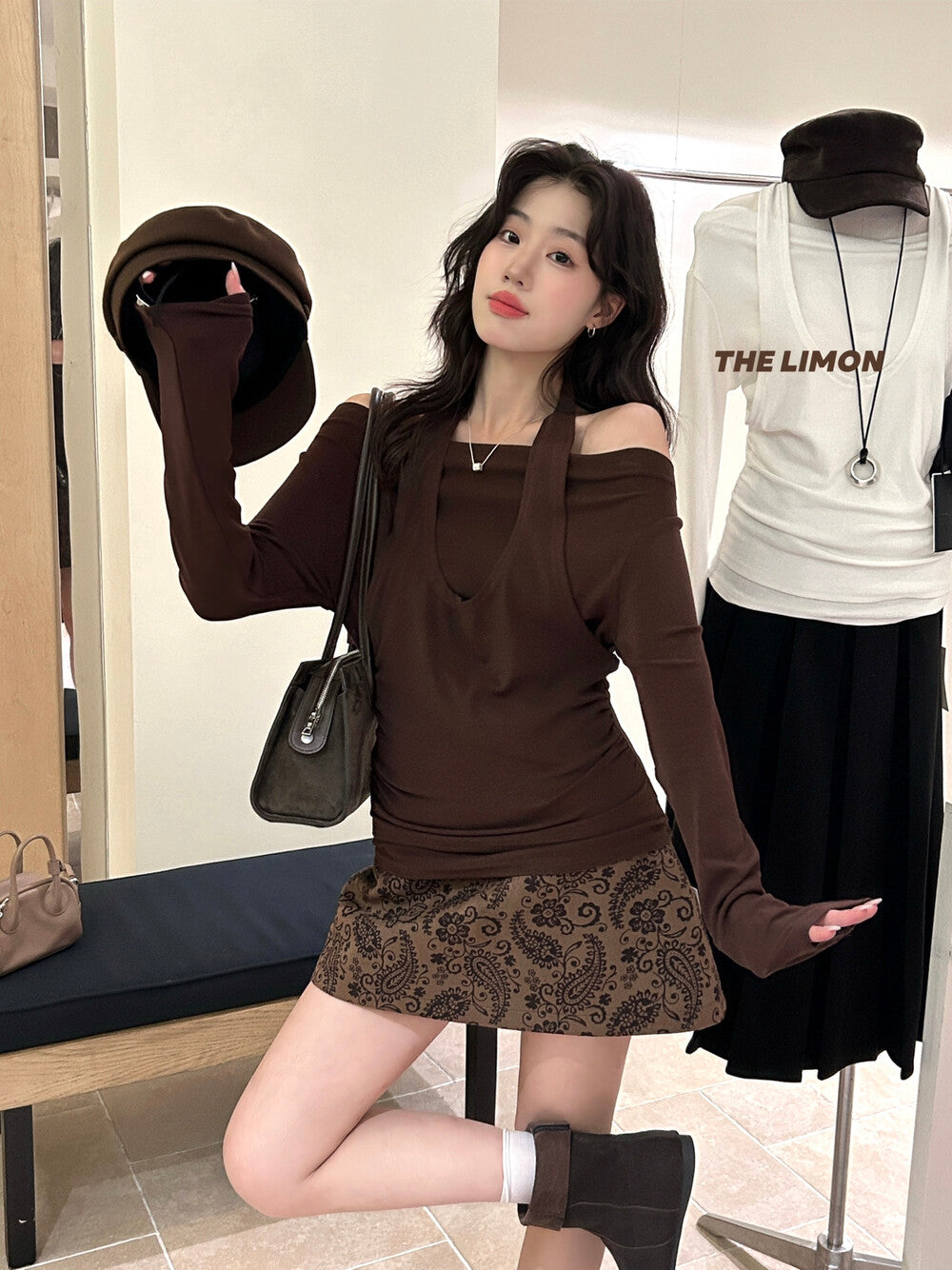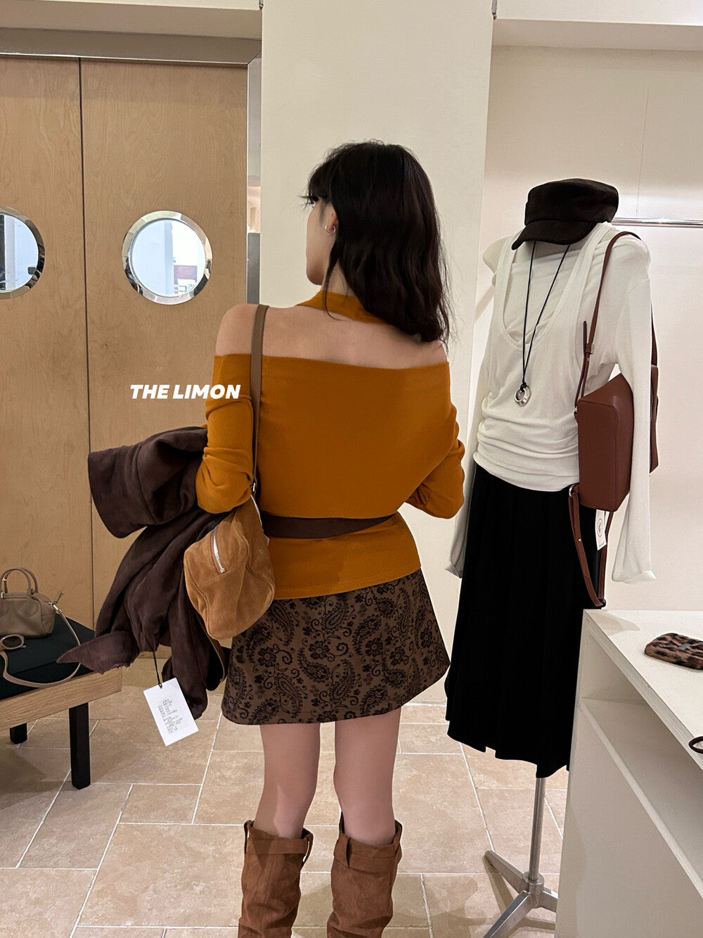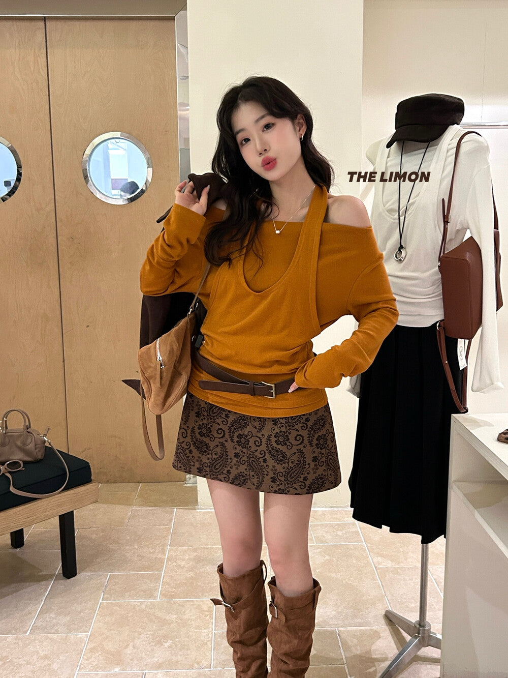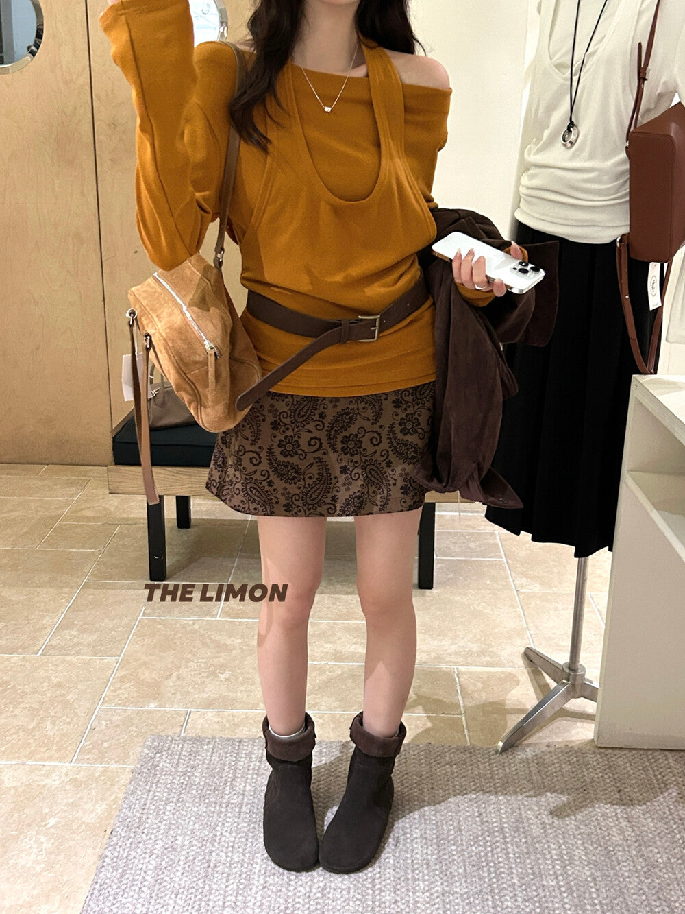 【LTM1171】實拍檸檬法式復古麂皮絨高腰裙+腰帶250923