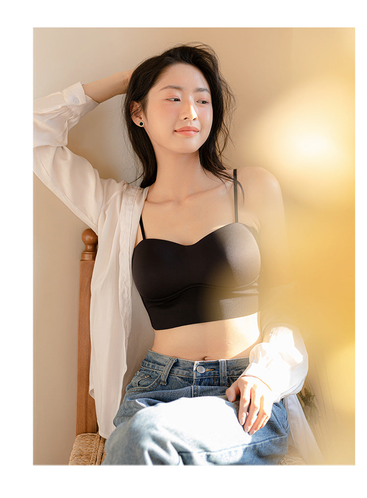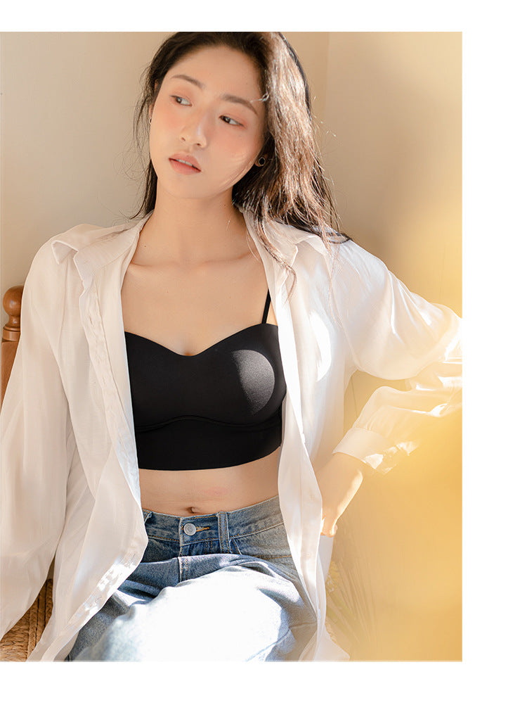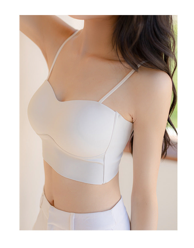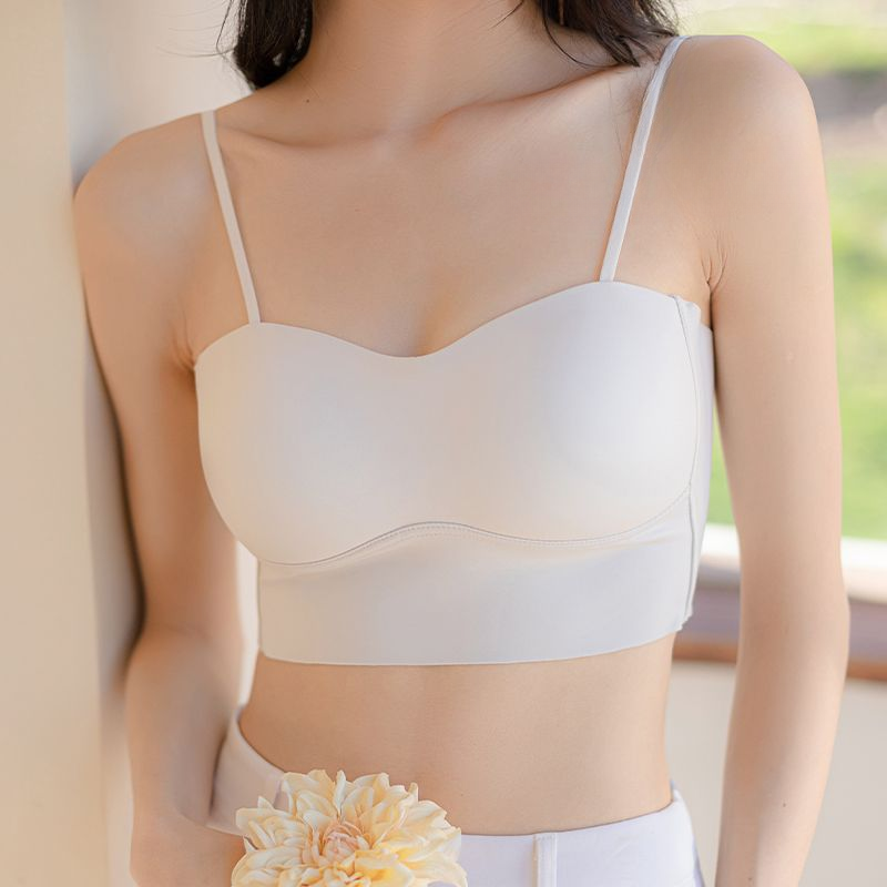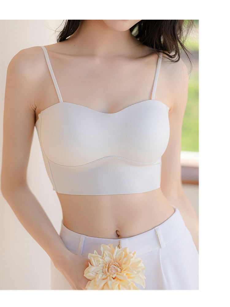 【M0405】實拍冰絲無痕連體杯彈力抹胸一字打底不走光美背內搭外穿背心230611