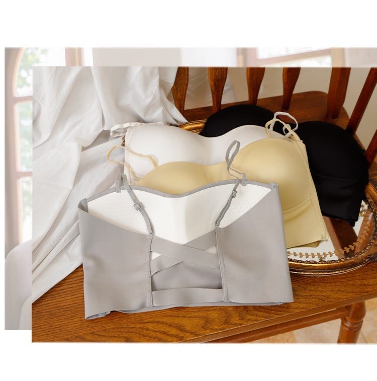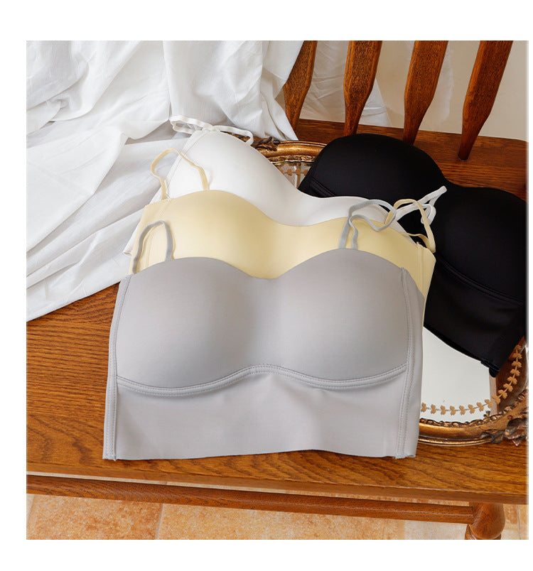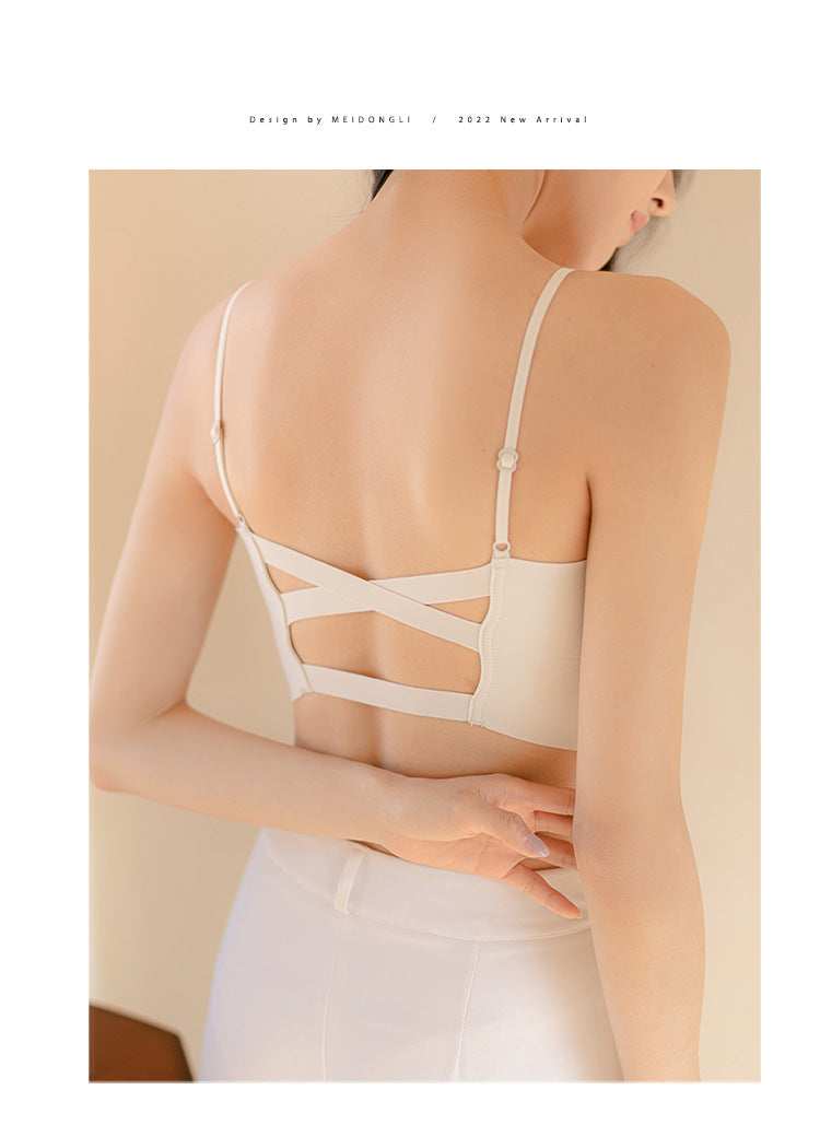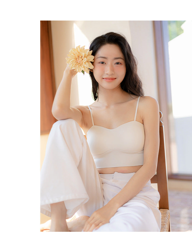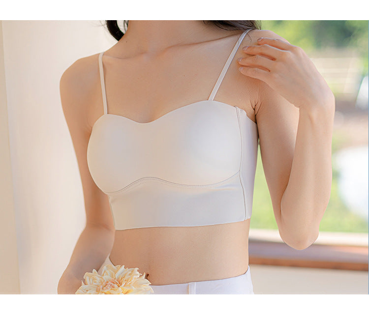 【M0405】實拍冰絲無痕連體杯彈力抹胸一字打底不走光美背內搭外穿背心230611