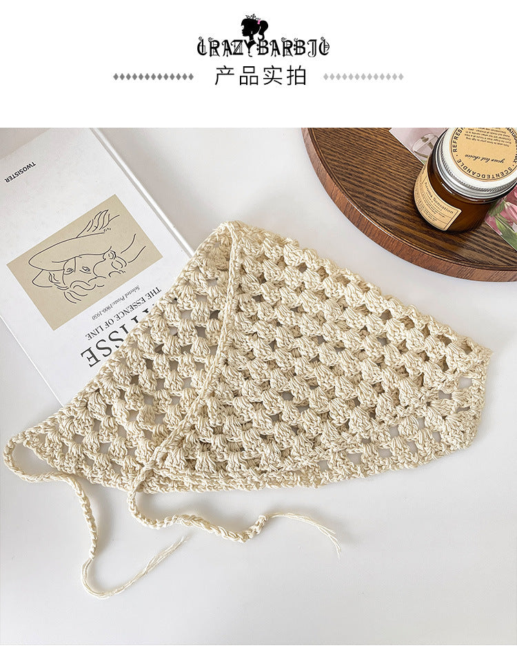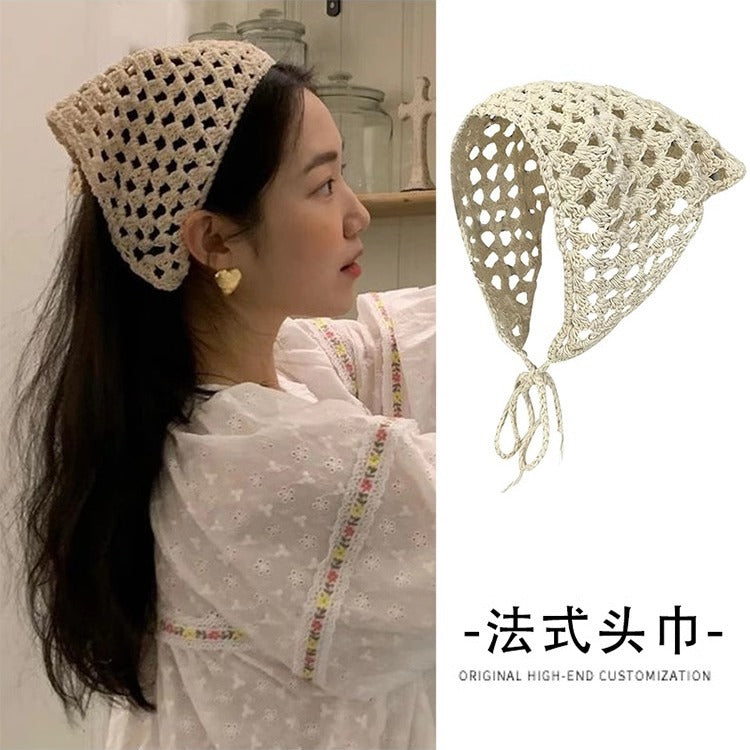 【M1013】夏日韓國法式復古針織三角巾240323