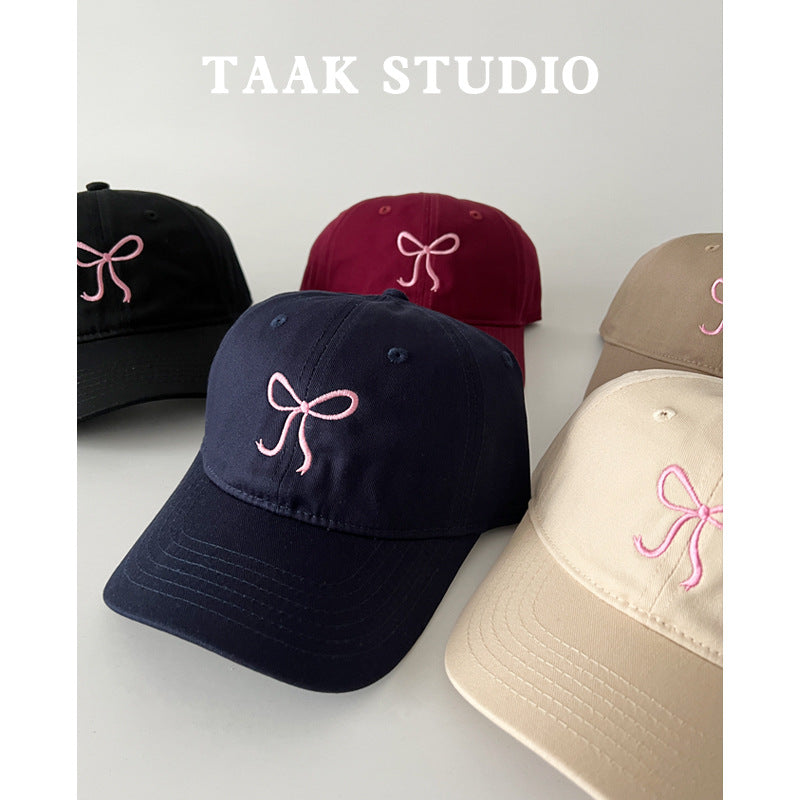 【M1681】韓國小眾設計師款粉色蝴蝶結刺繡棒球帽240323