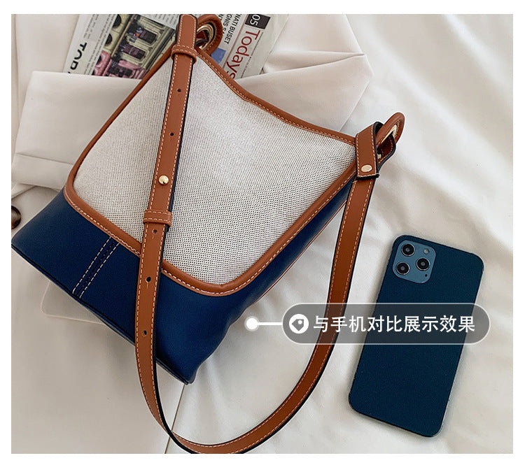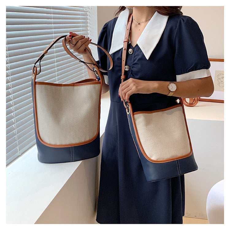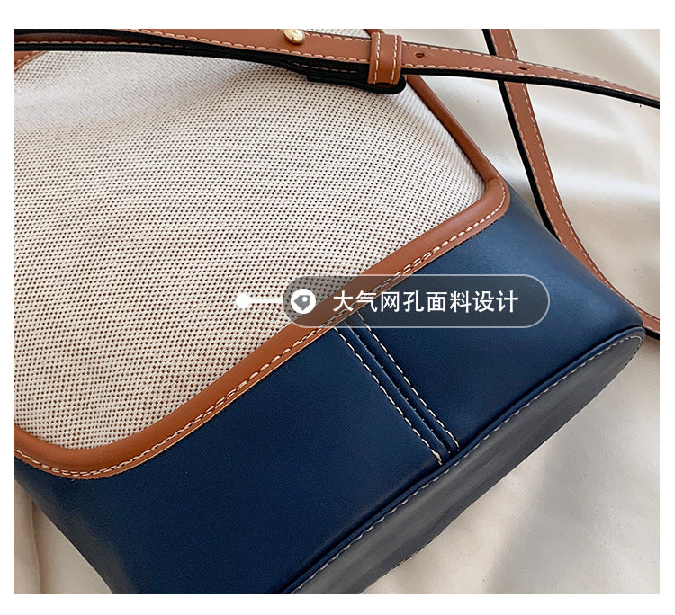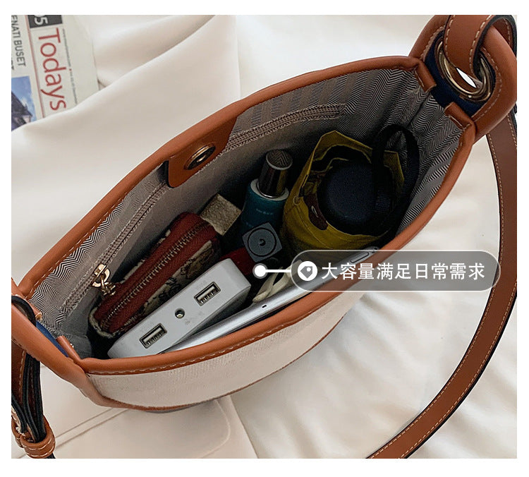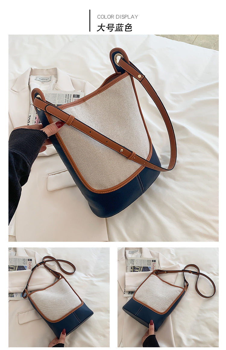 【NK2409】實拍帆布拼接皮革大容量單肩包230416
