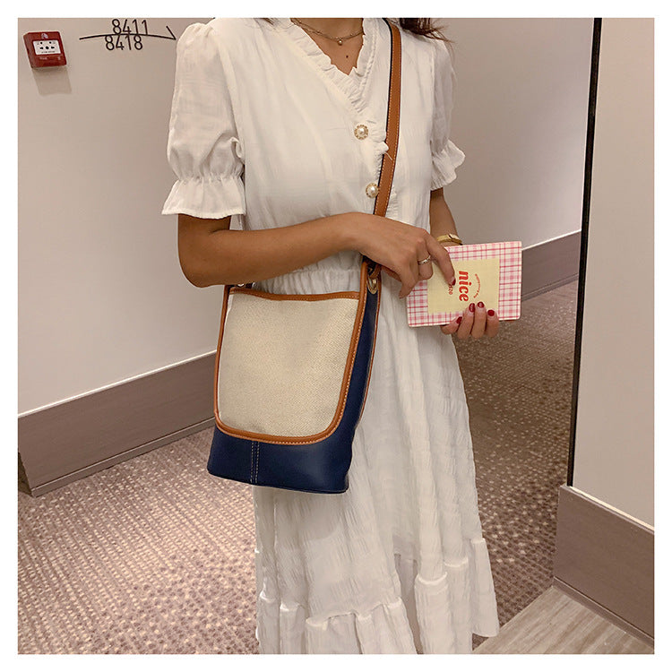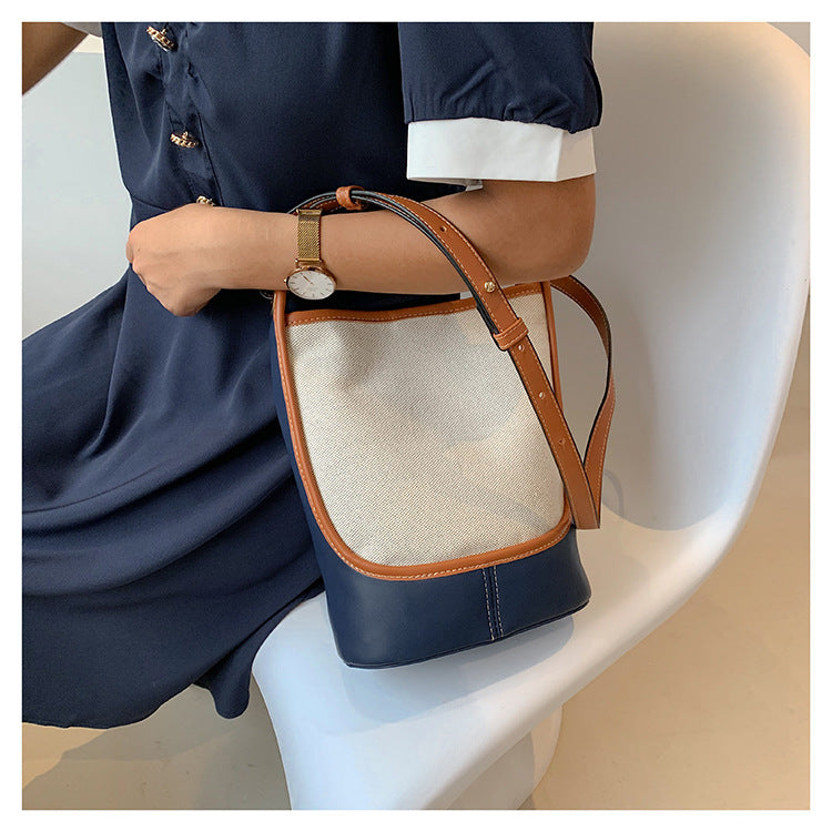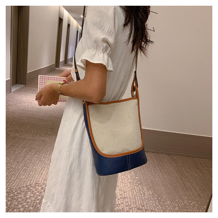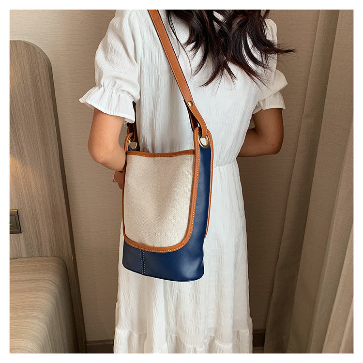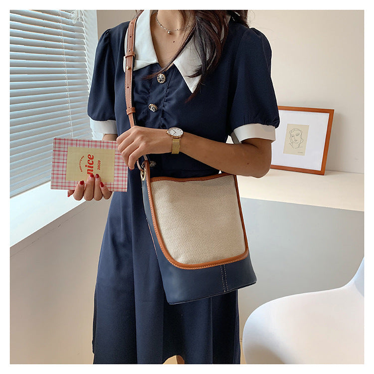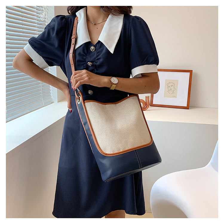 【NK2409】實拍帆布拼接皮革大容量單肩包230416