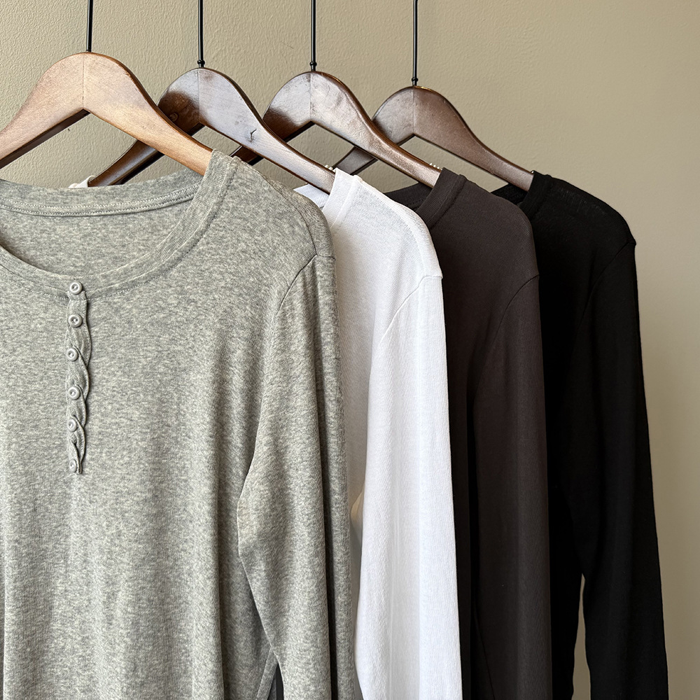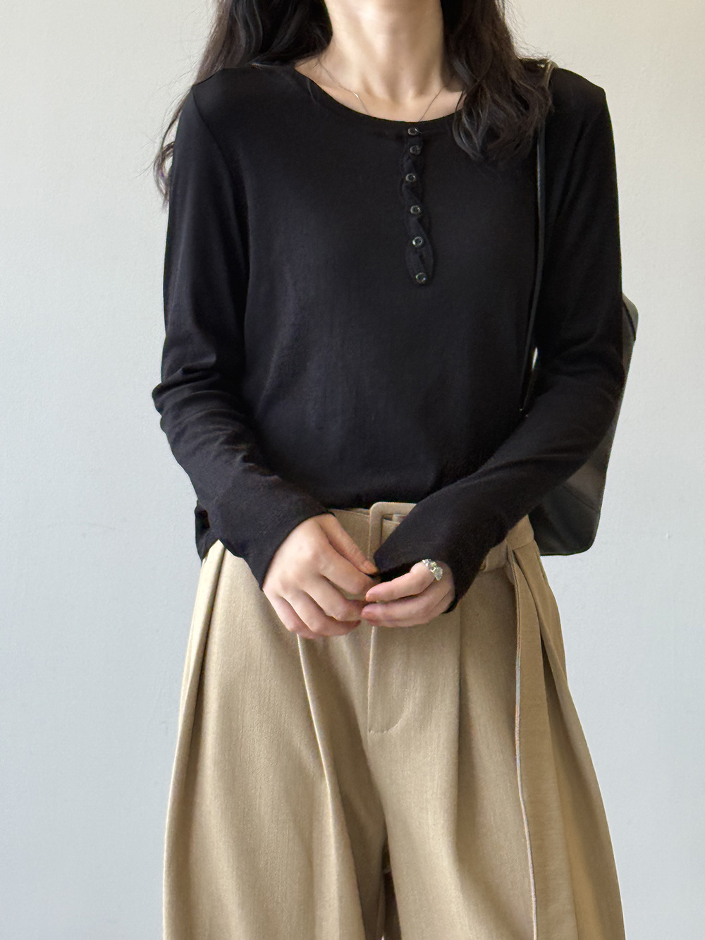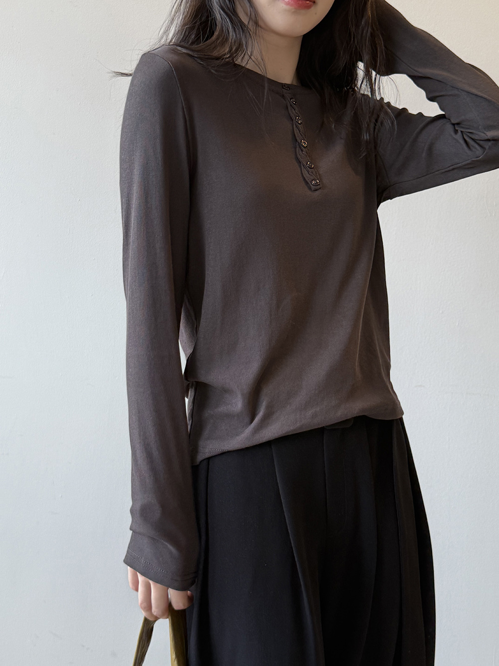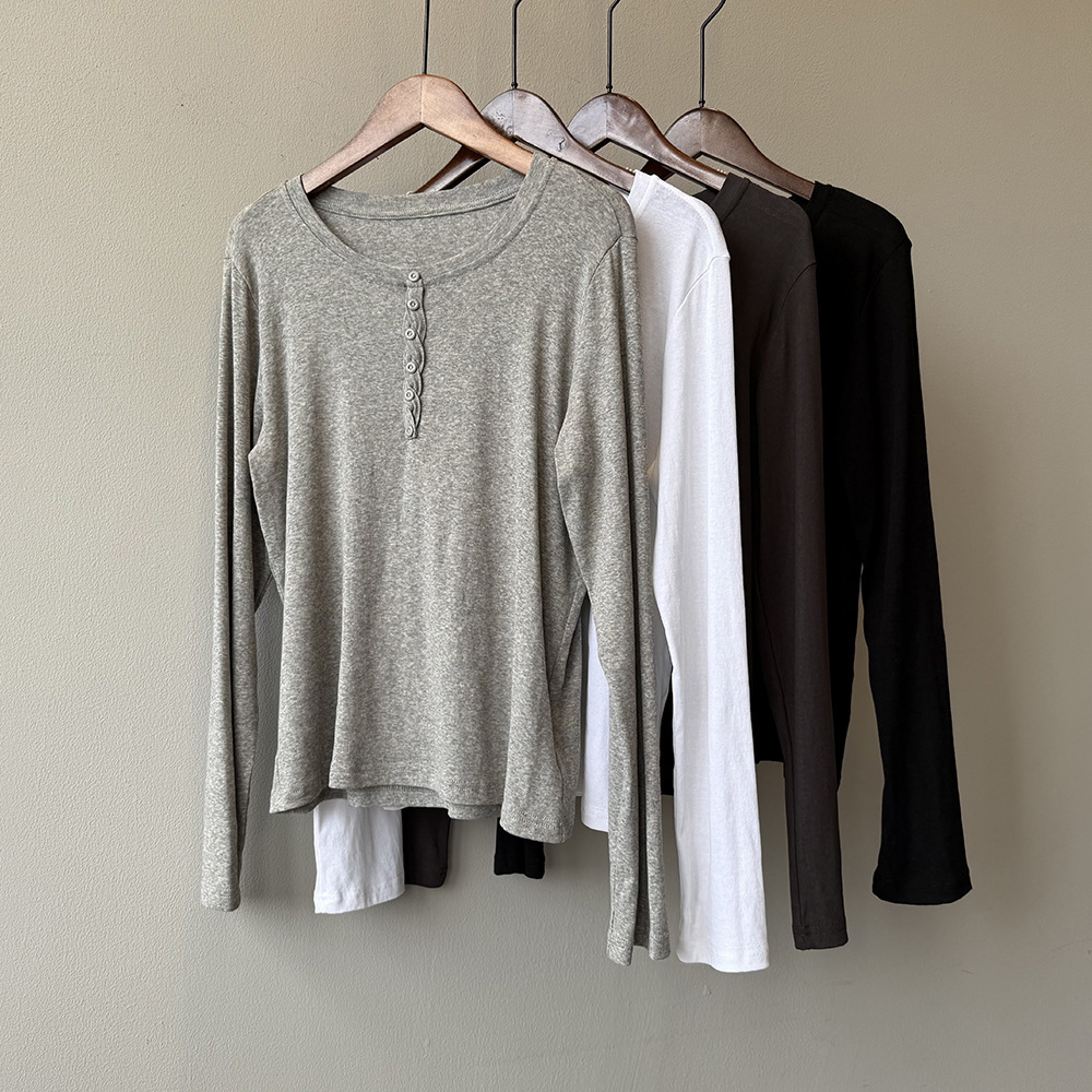 【Y20163】實拍初秋百搭舒適必備紐扣棉質長袖T恤250822