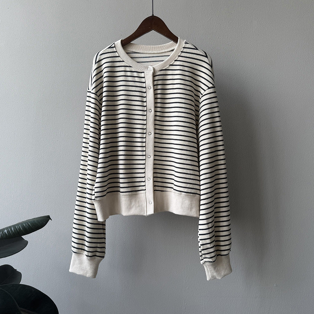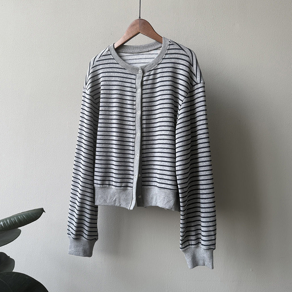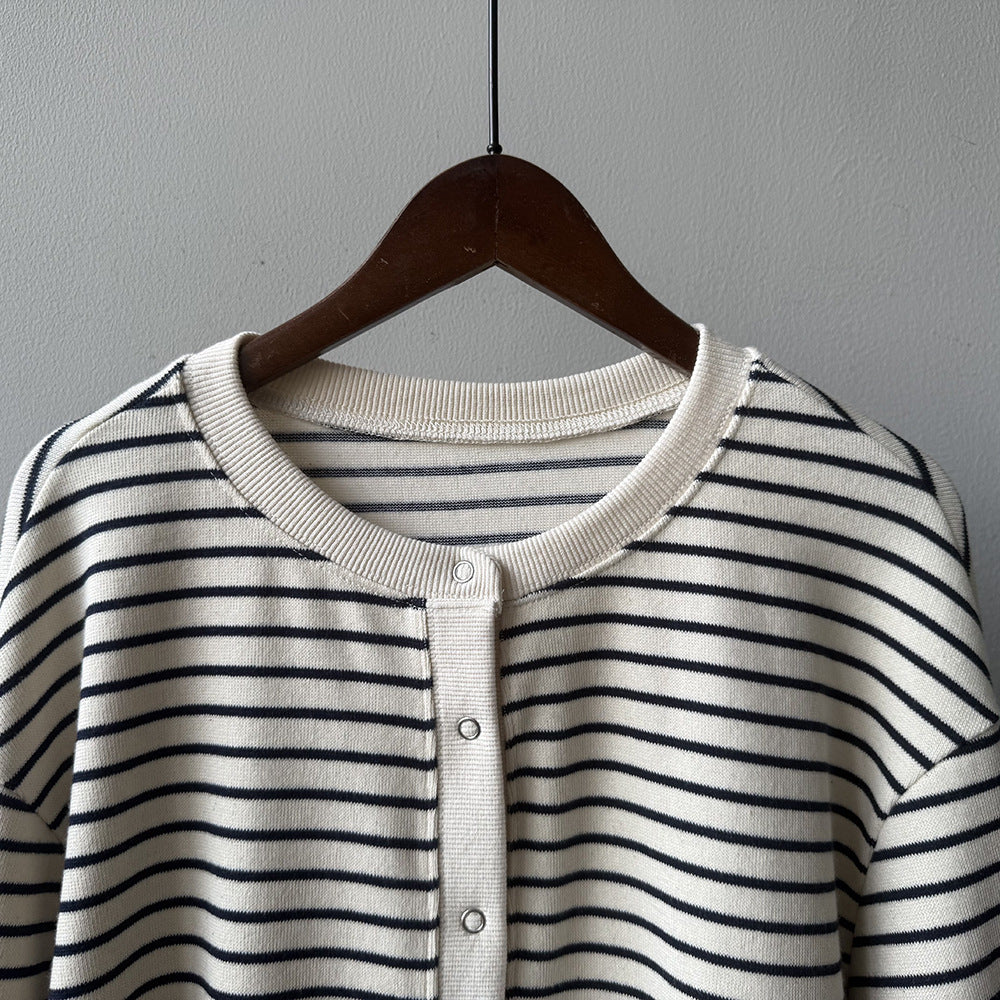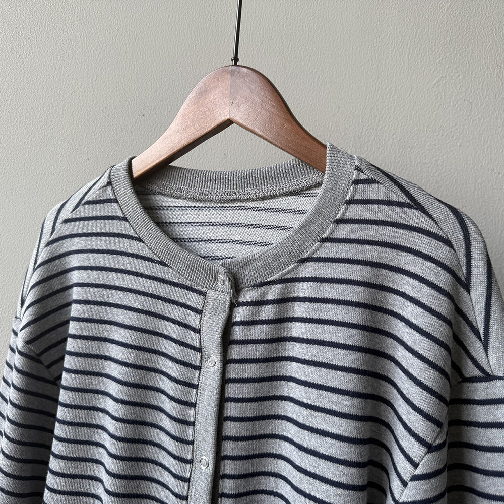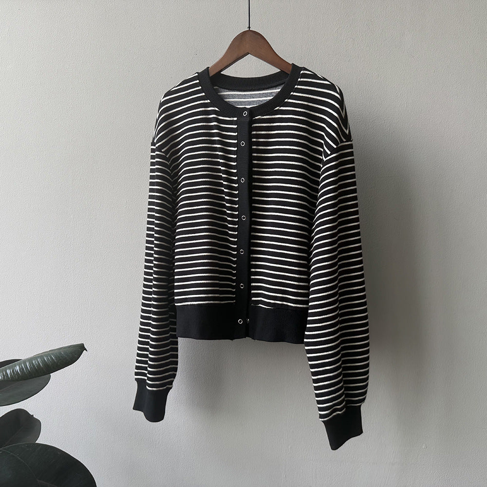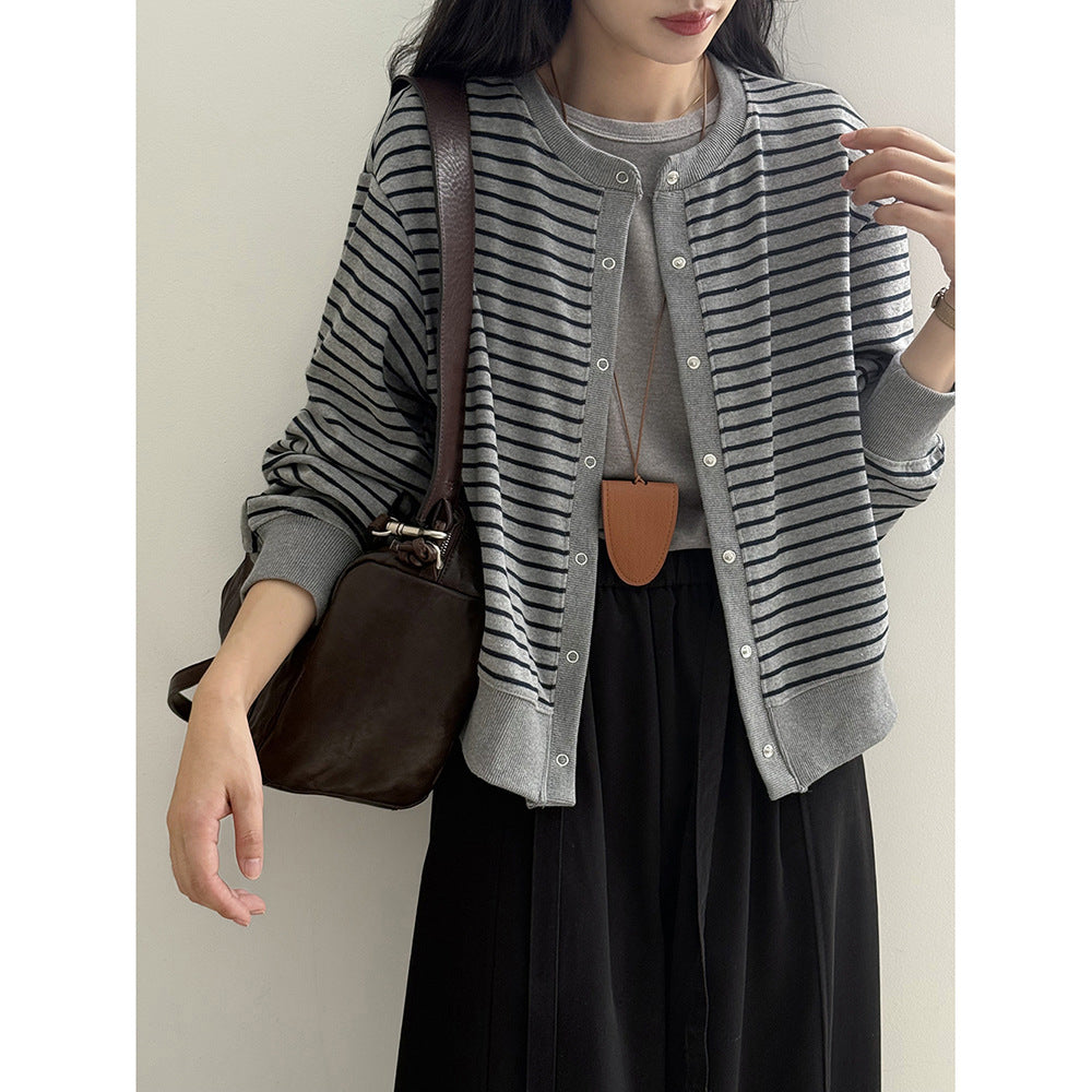 【Y20199】實拍簡約休閒圓領小按扣針織外套250911
