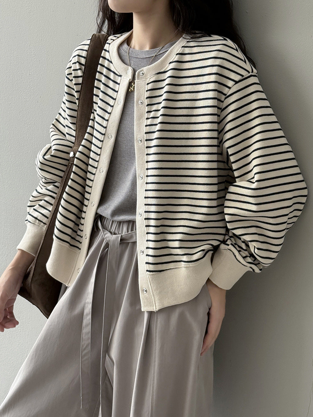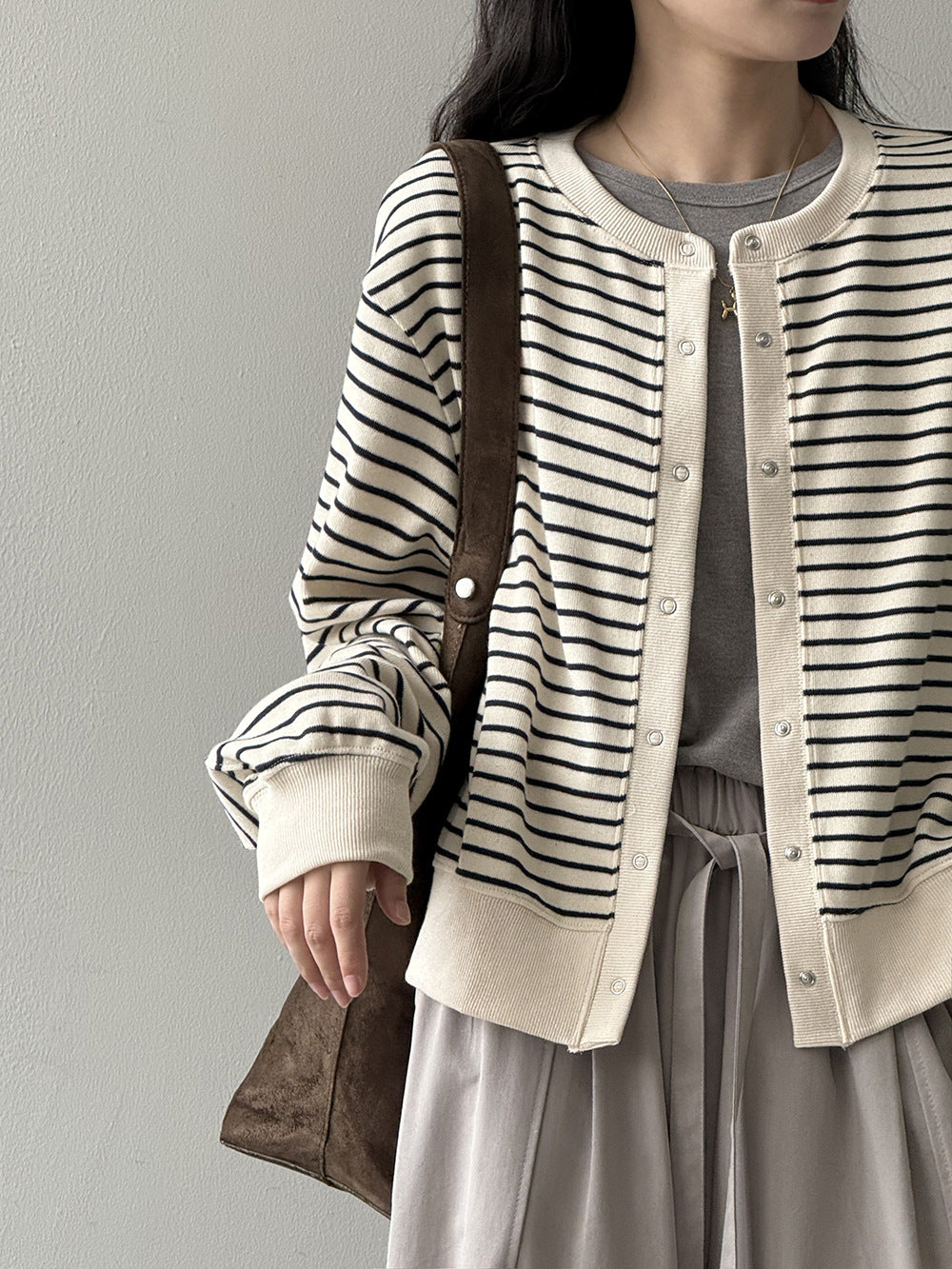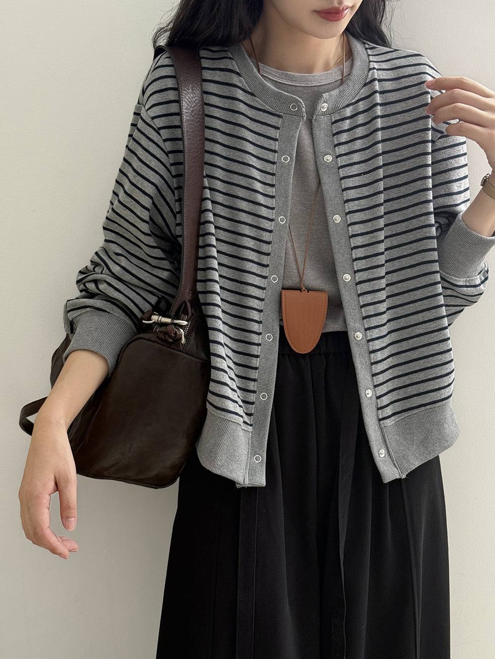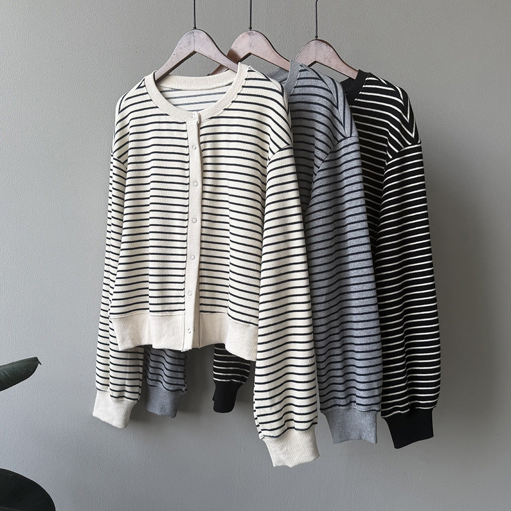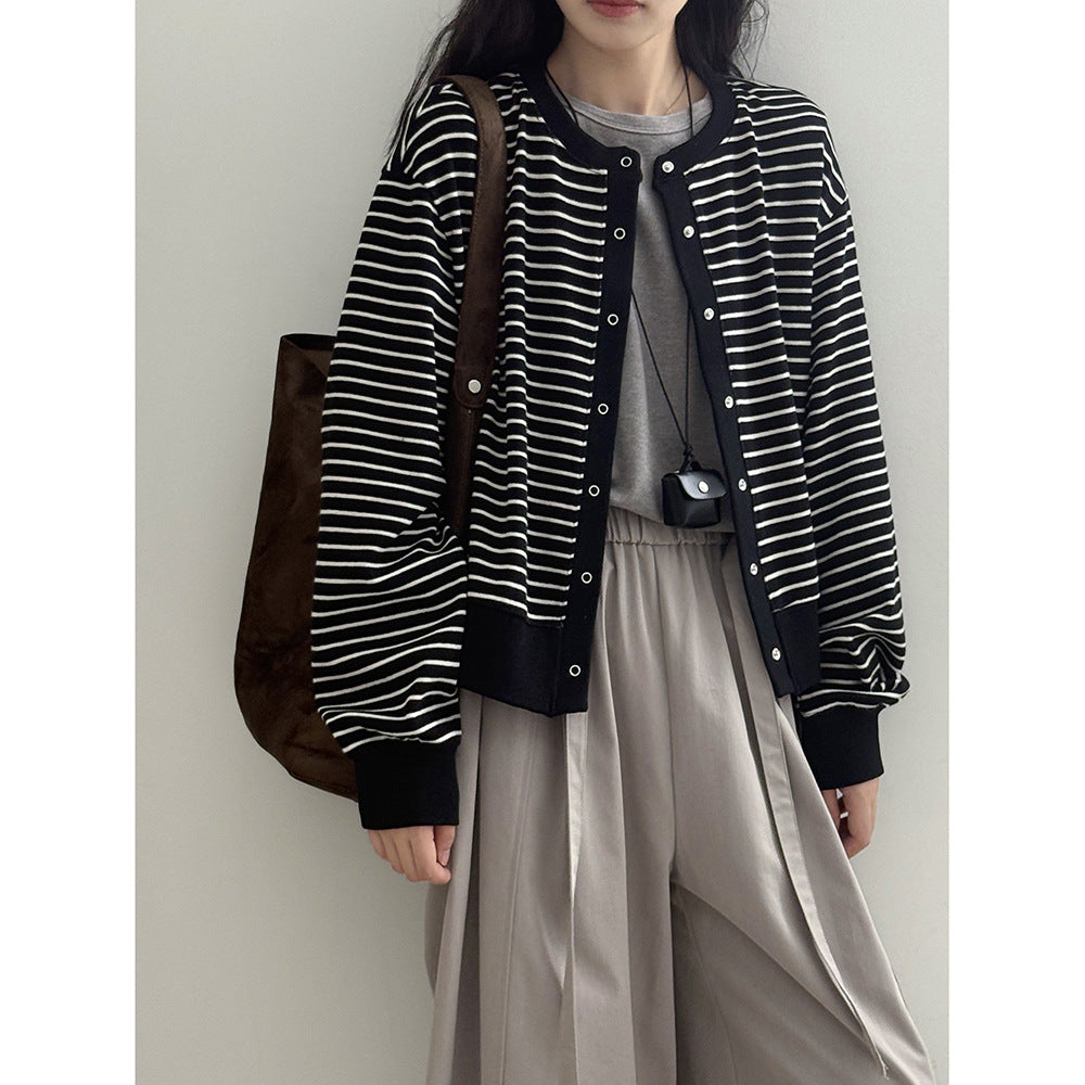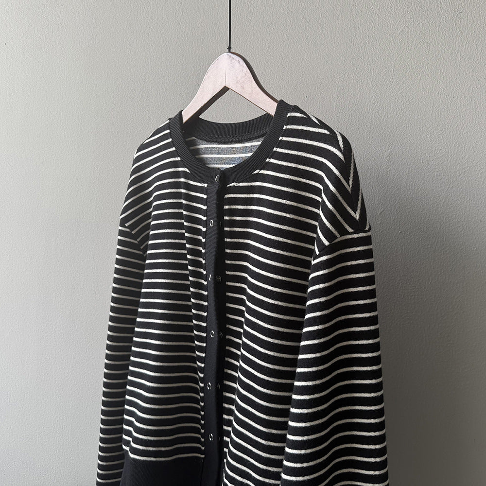 【Y20199】實拍簡約休閒圓領小按扣針織外套250911