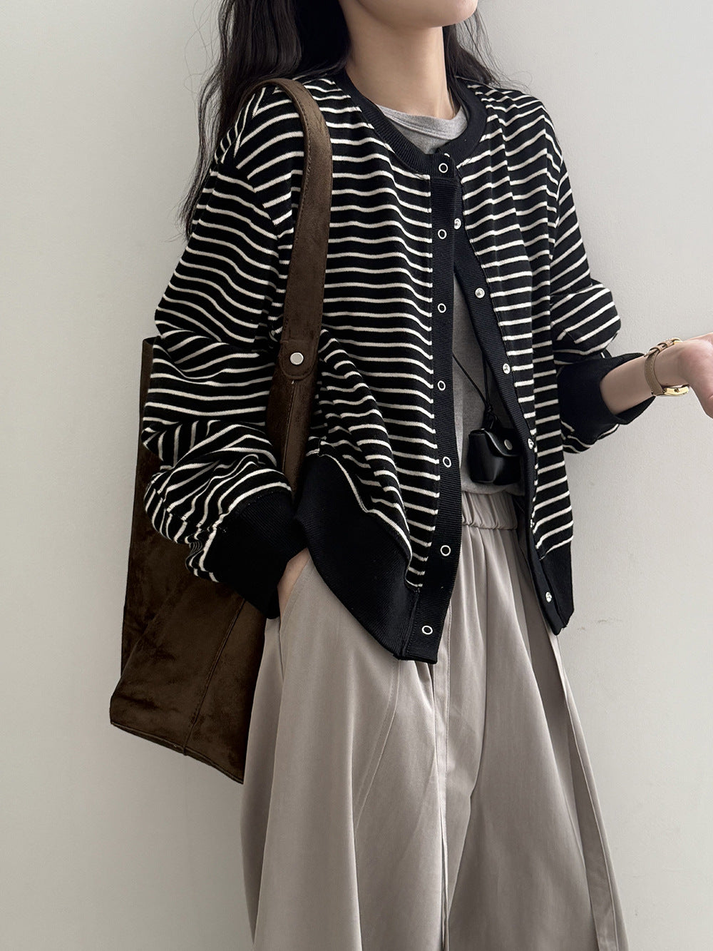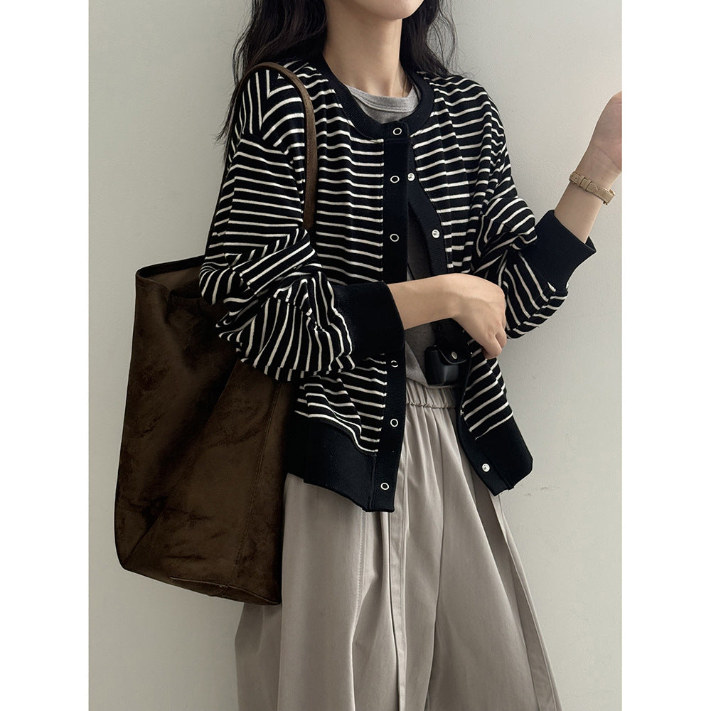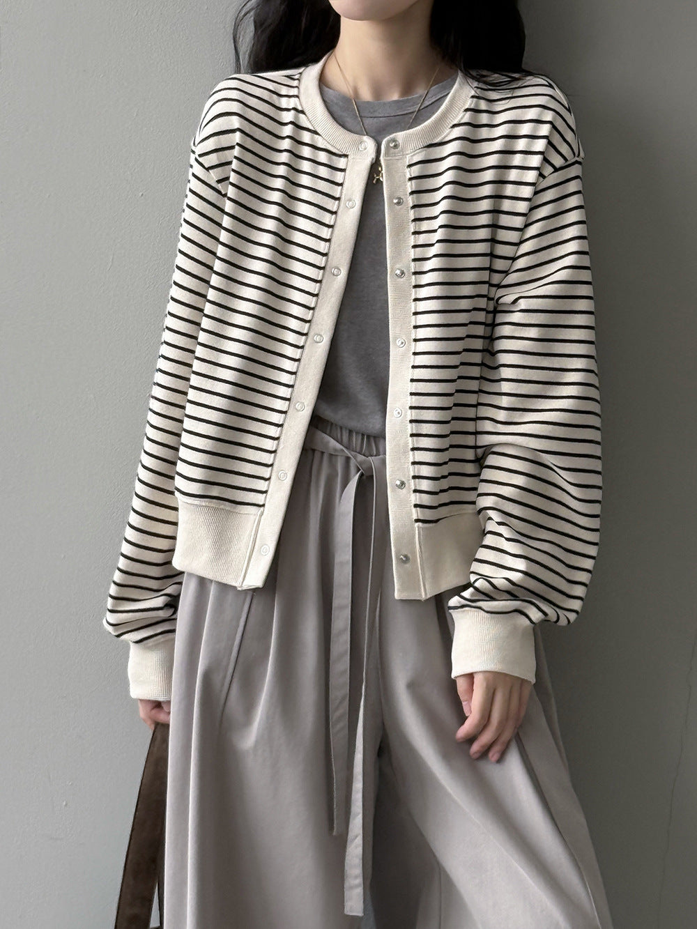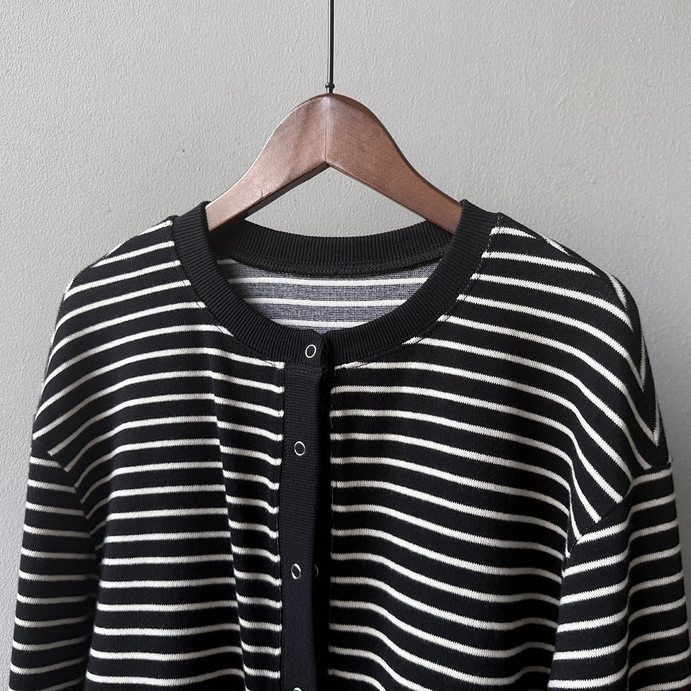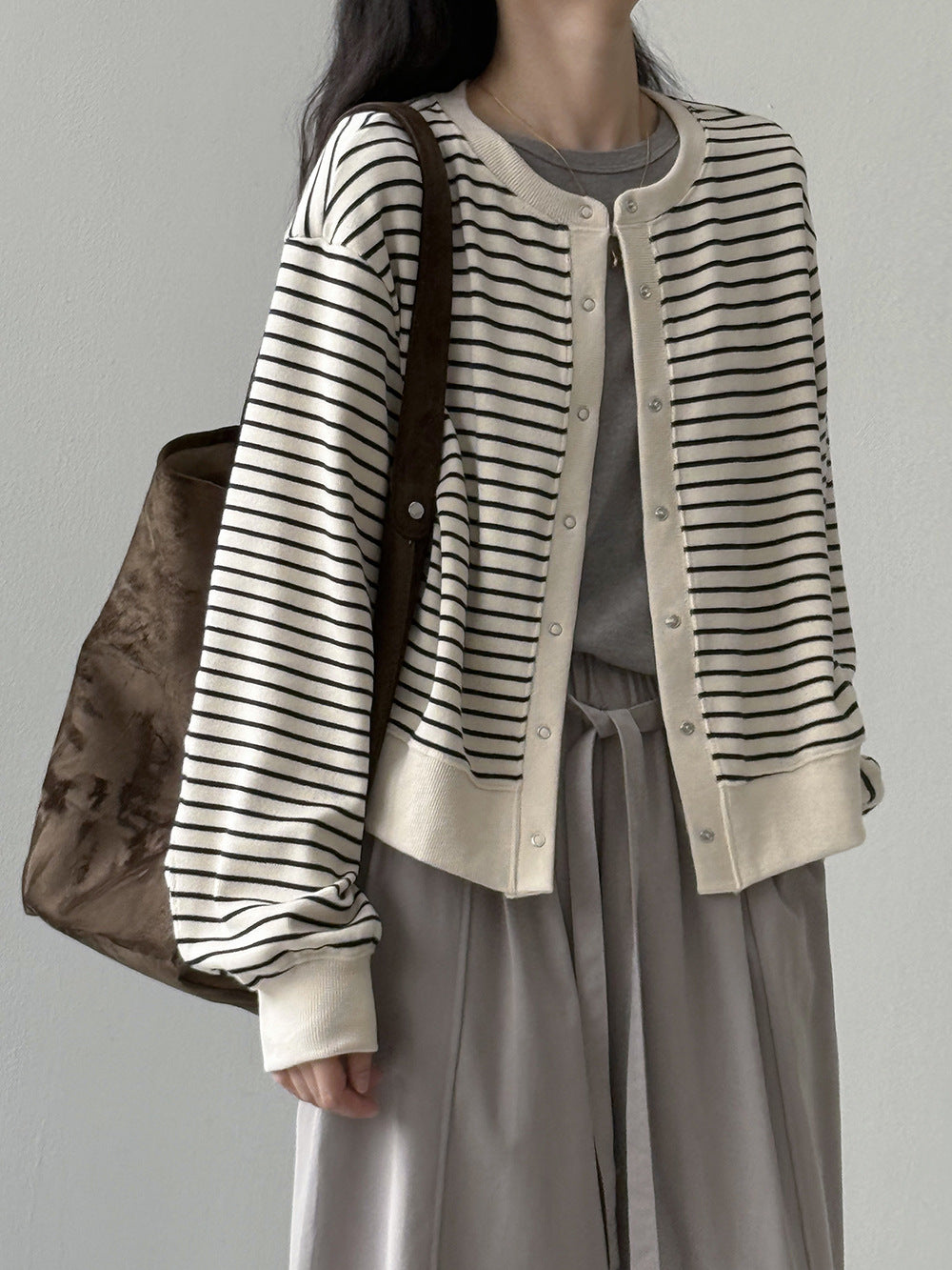 【Y20199】實拍簡約休閒圓領小按扣針織外套250911