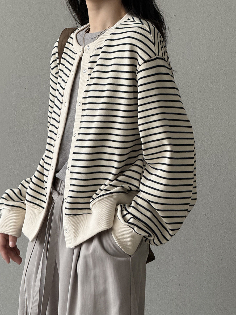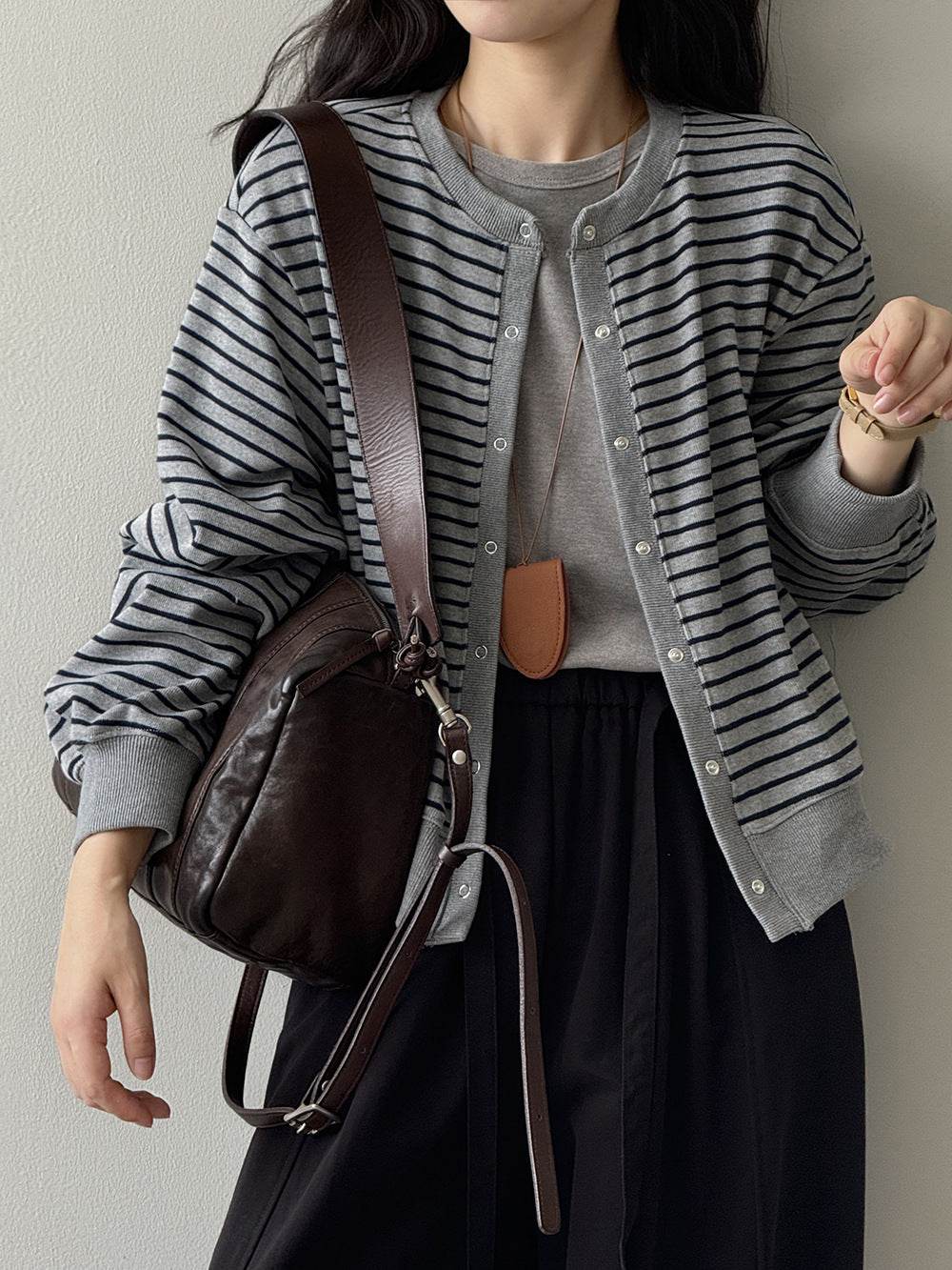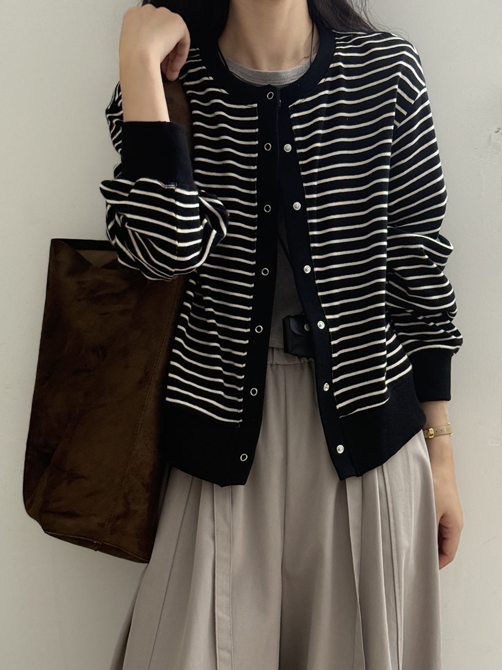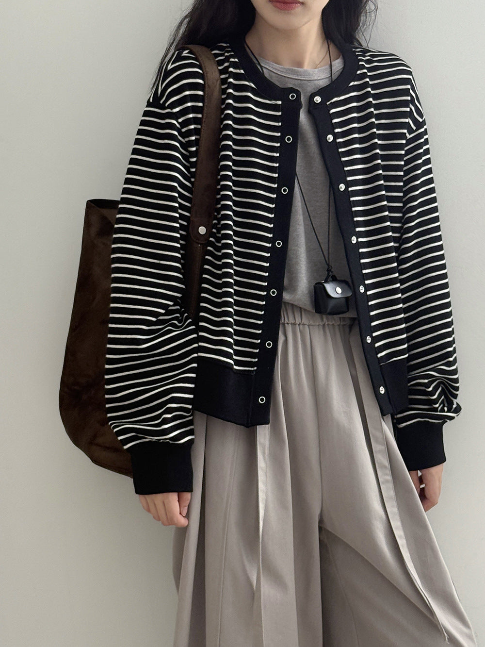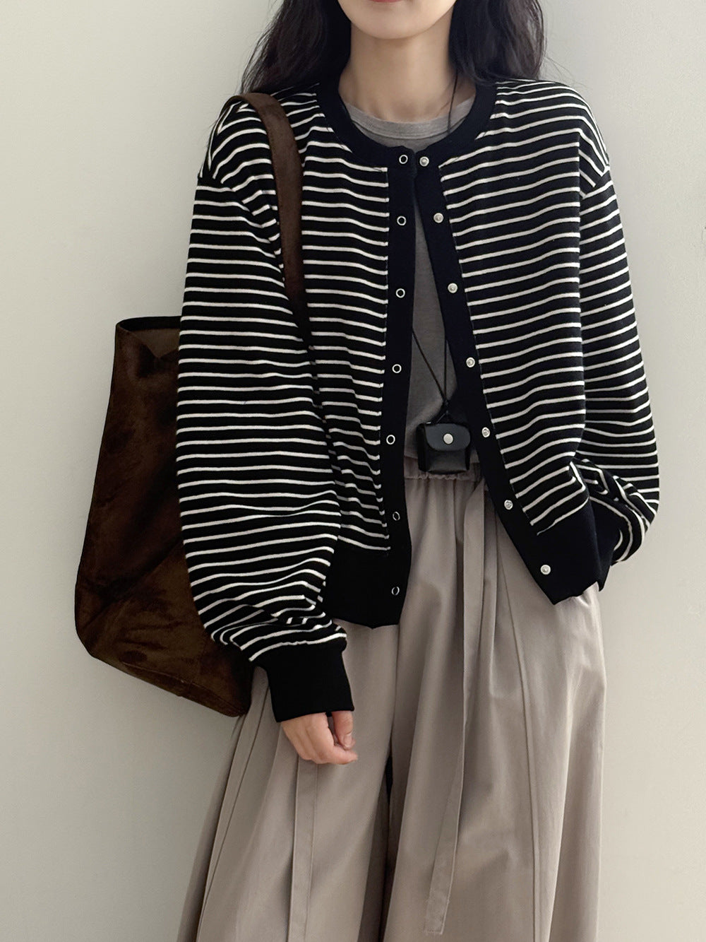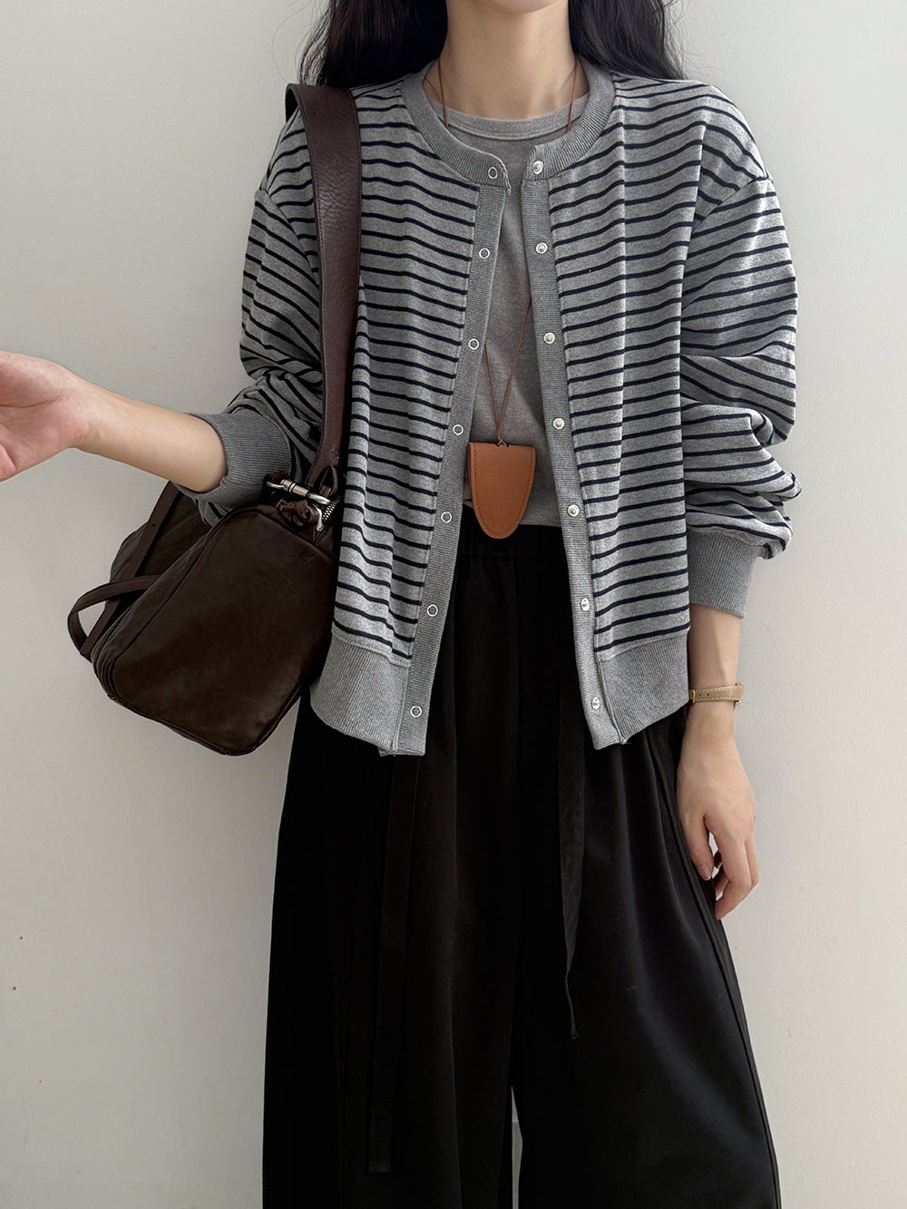 【Y20199】實拍簡約休閒圓領小按扣針織外套250911