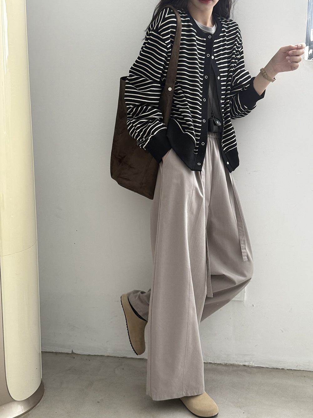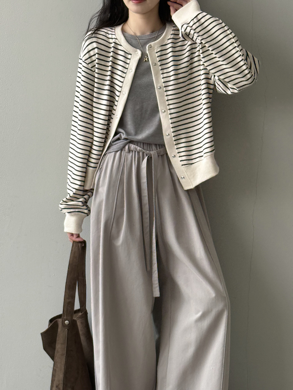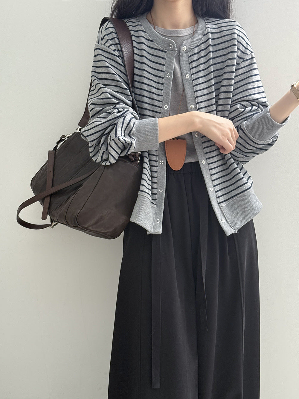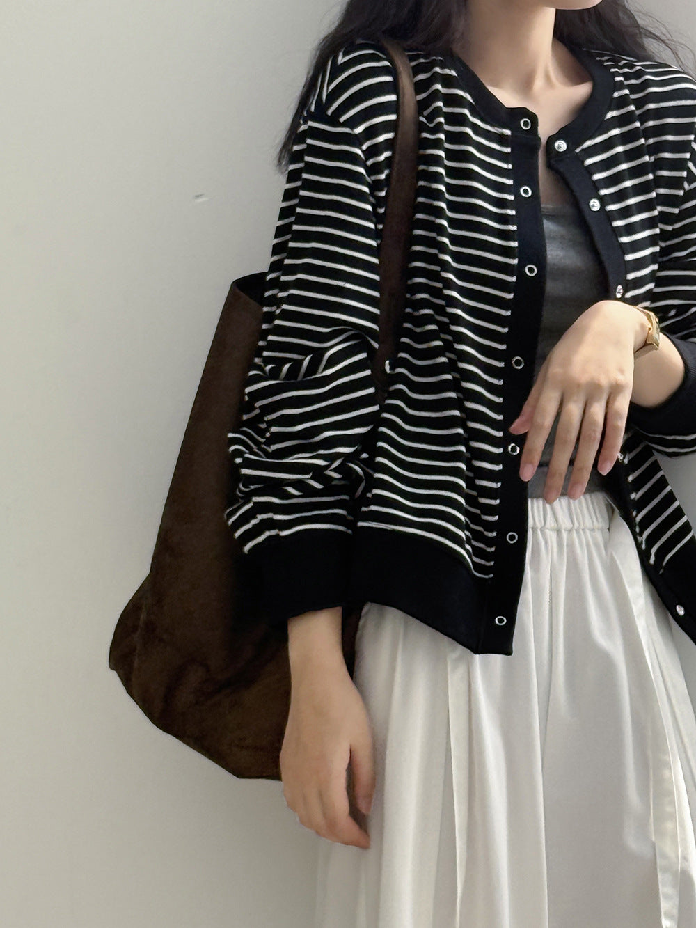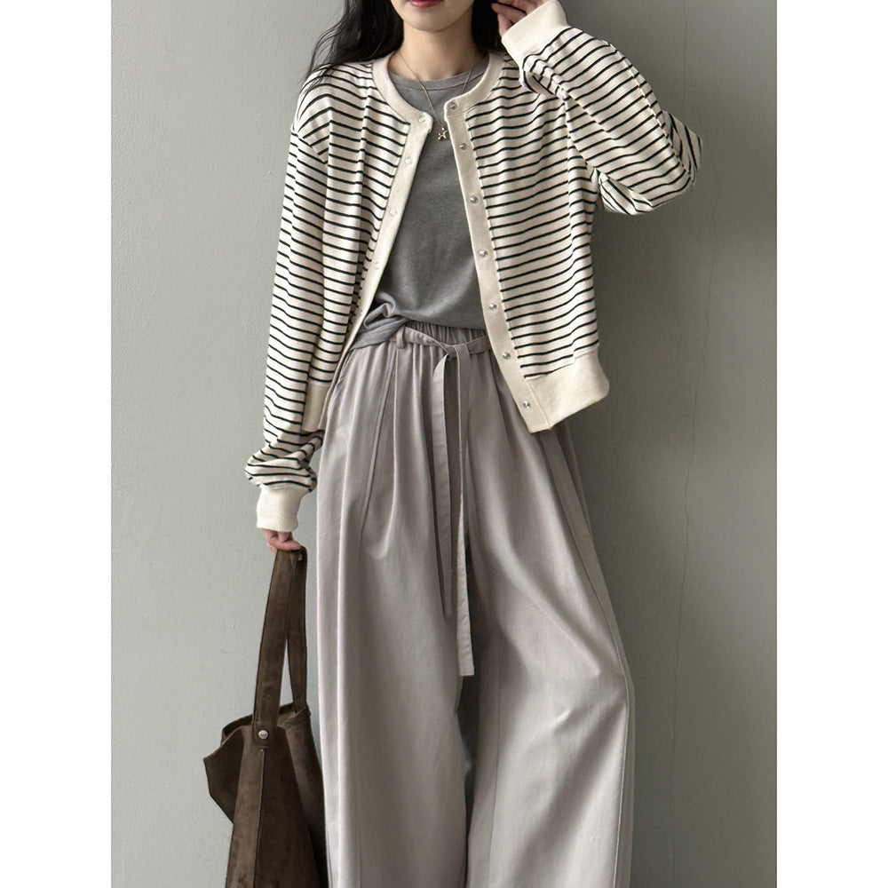 【Y20199】實拍簡約休閒圓領小按扣針織外套250911
