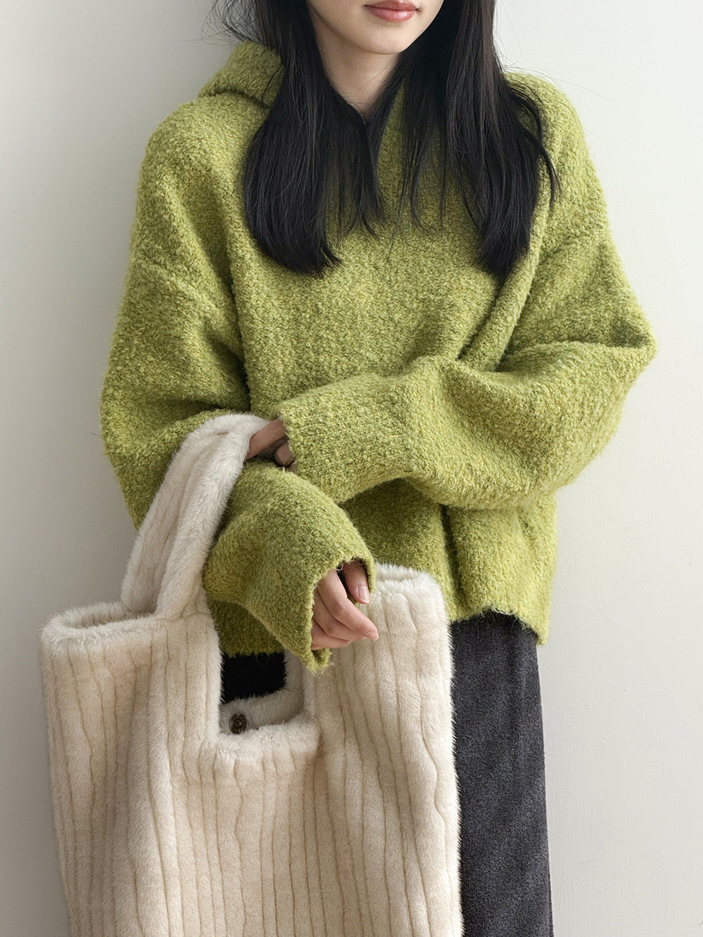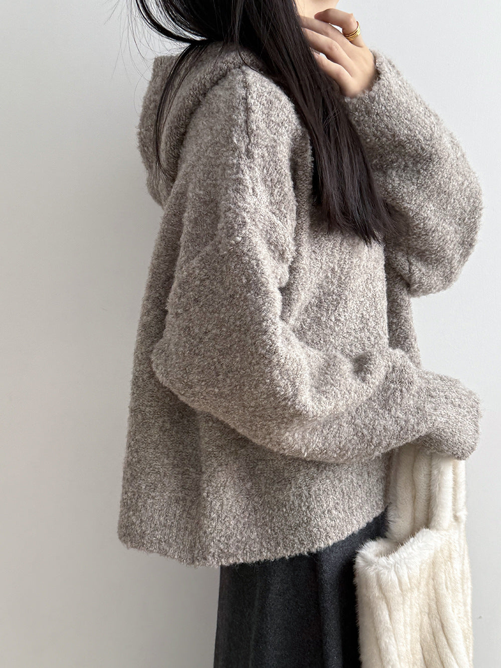 【Y2188】實拍冬季圈圈絨可愛連帽針織毛衣251106