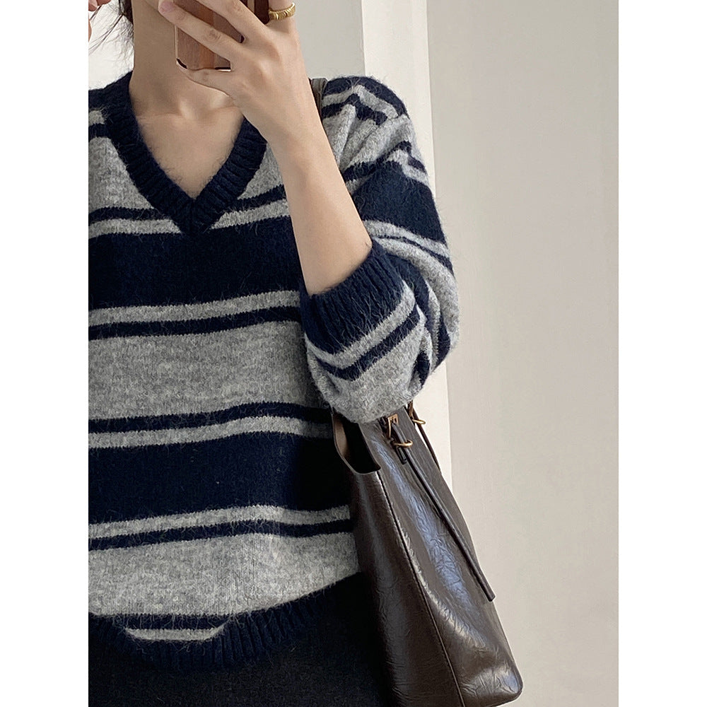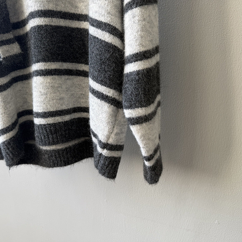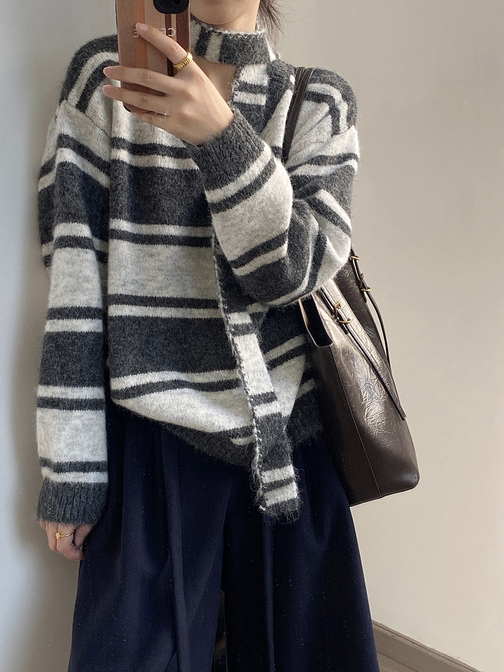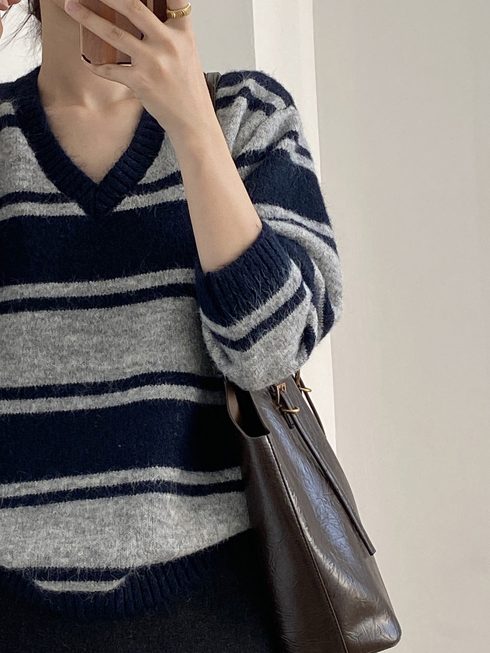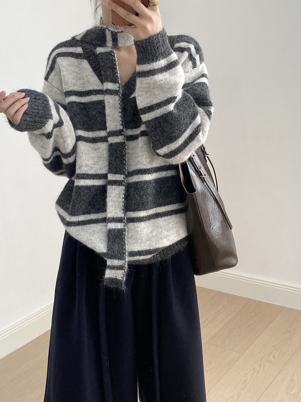 【Y25109】 實拍慵懶條紋V領毛衣+圍巾(含羊毛3%) 251023