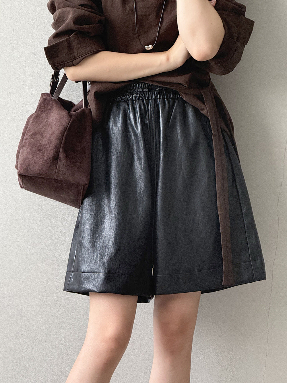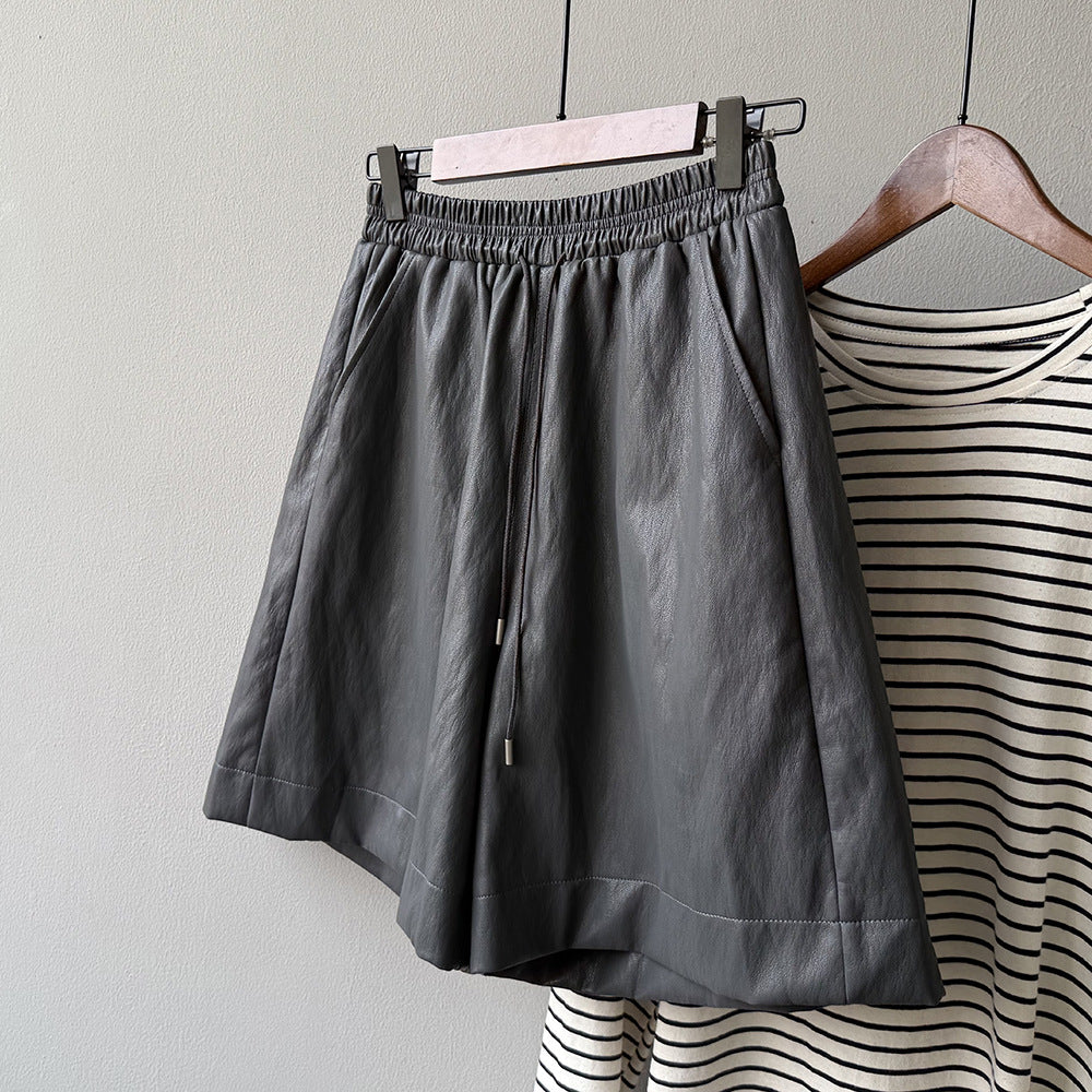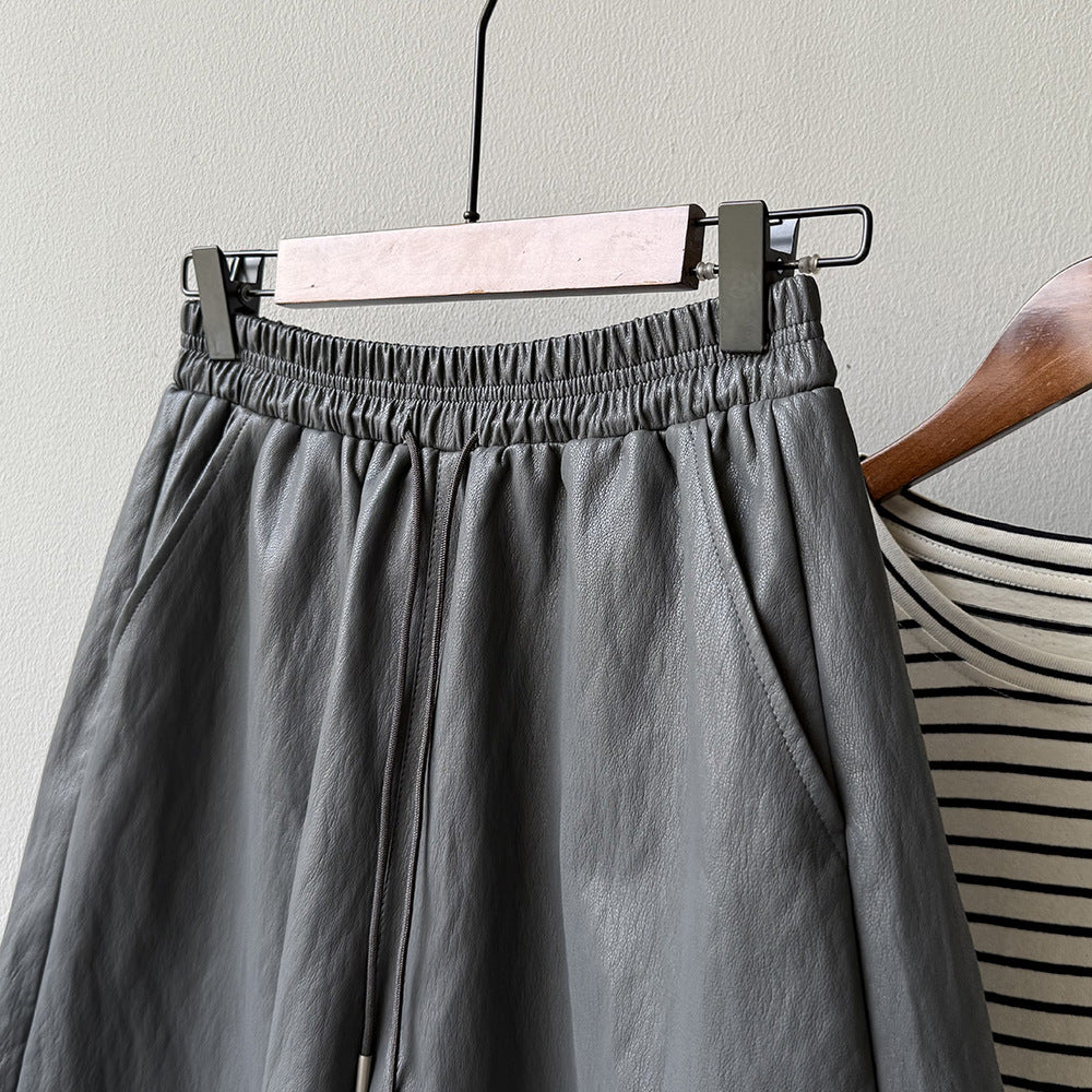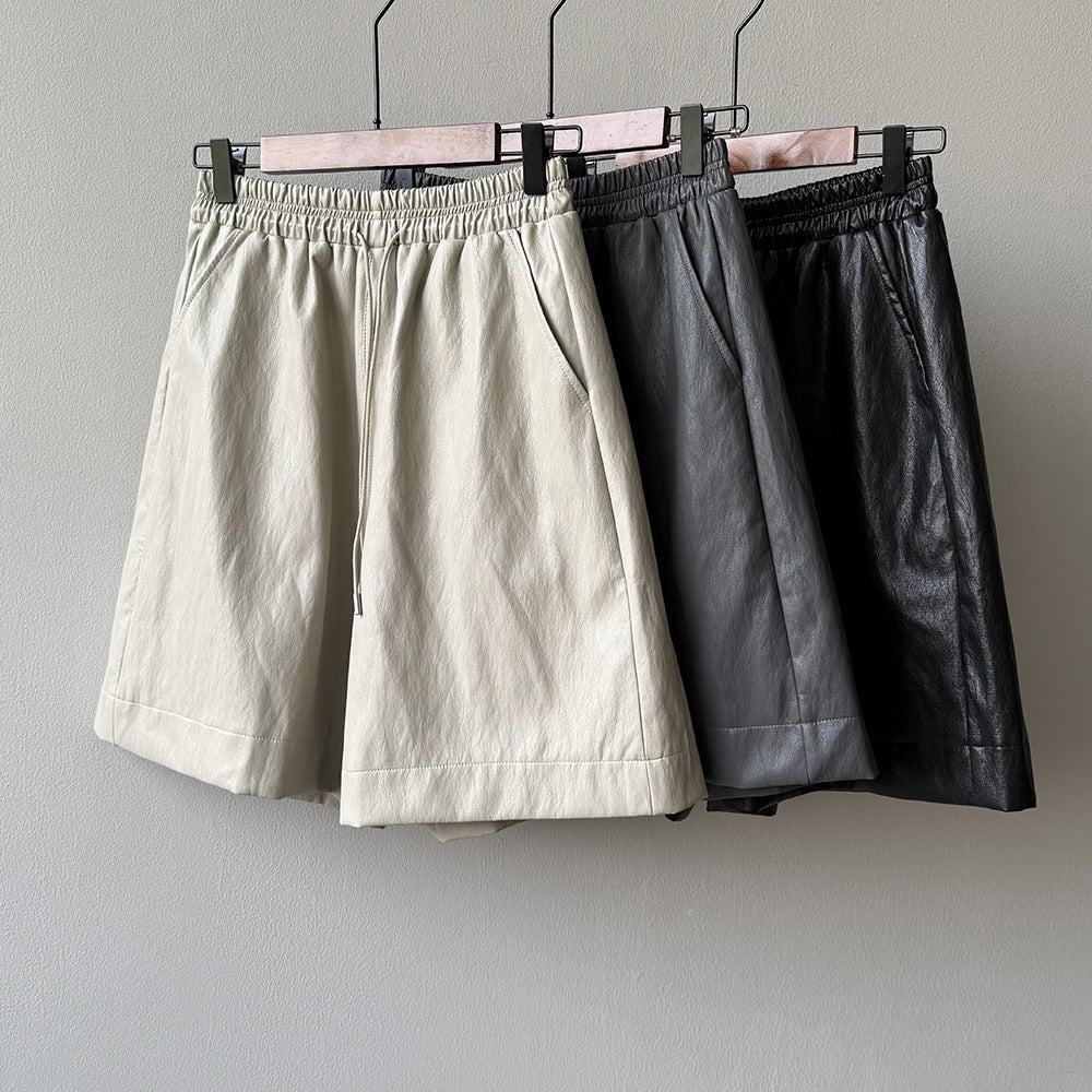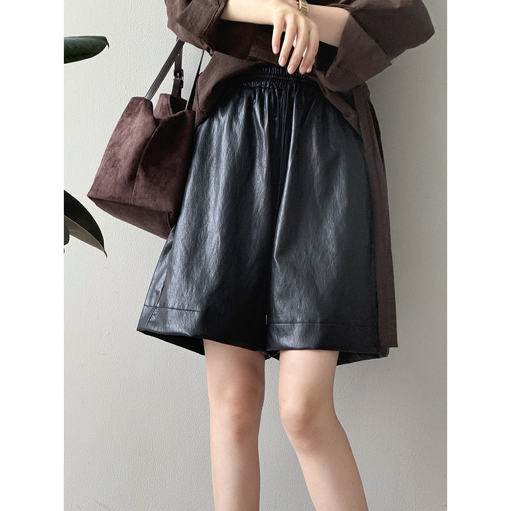 【Y26372】實拍高腰垂感PU皮A字短褲250911