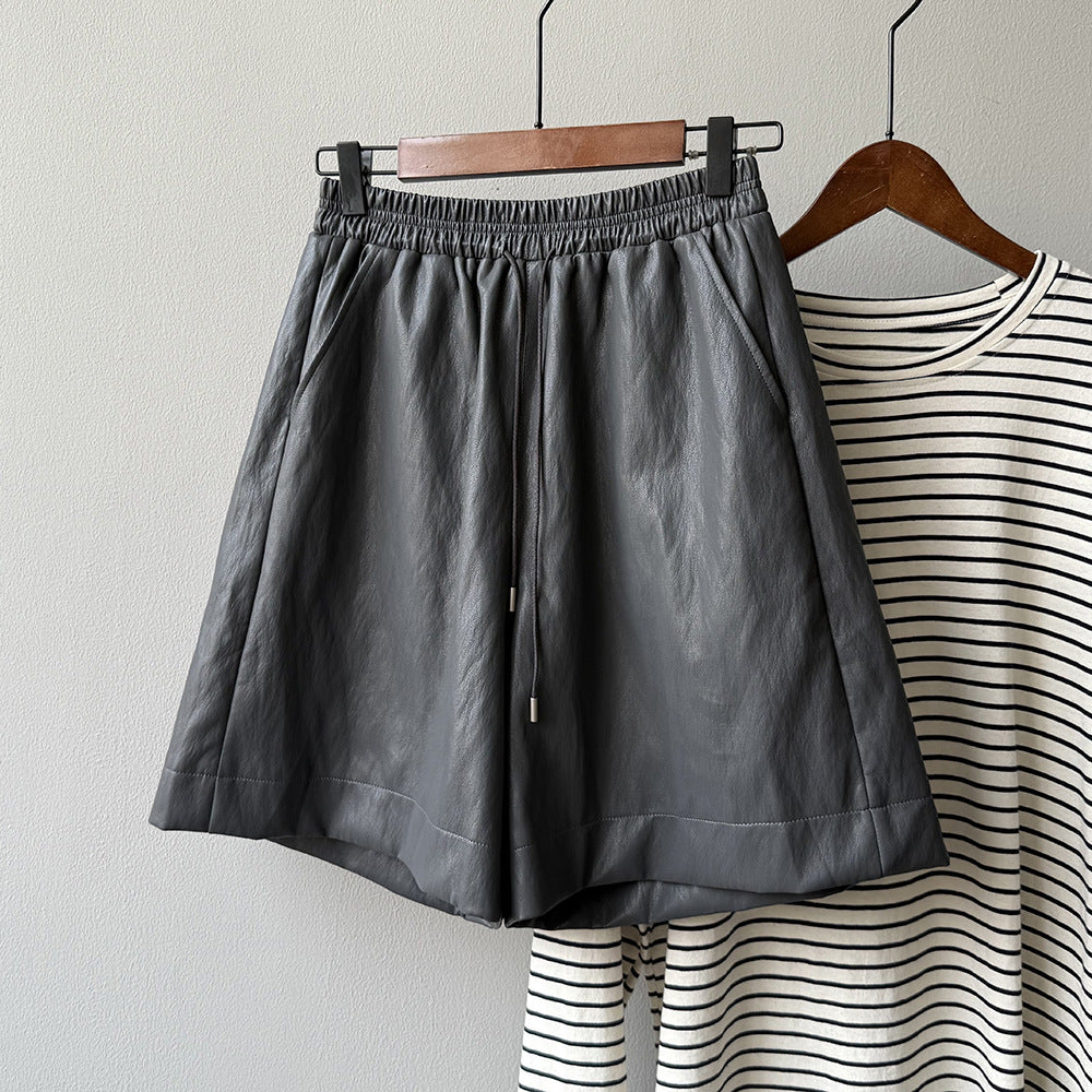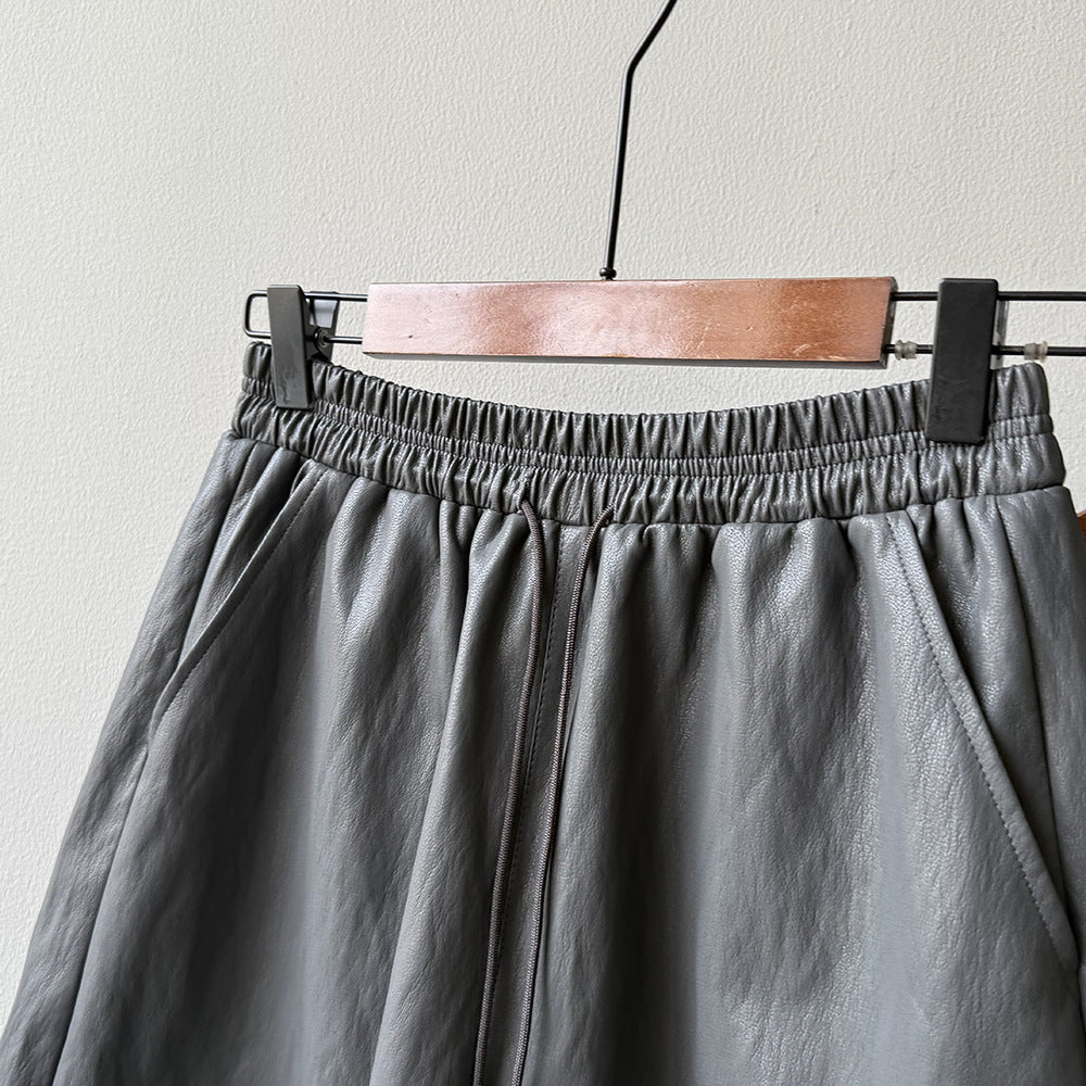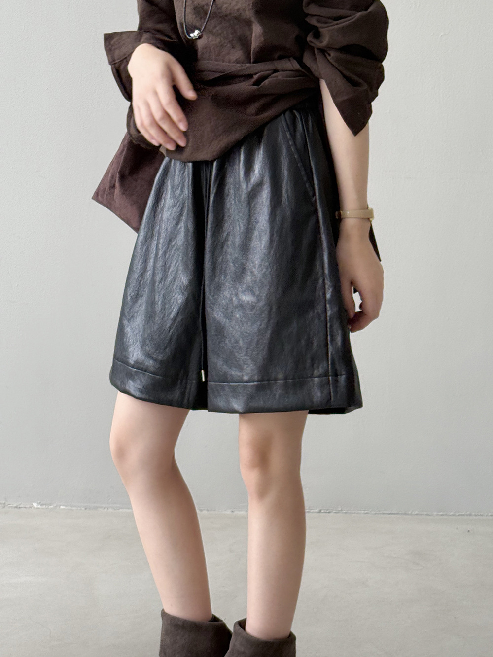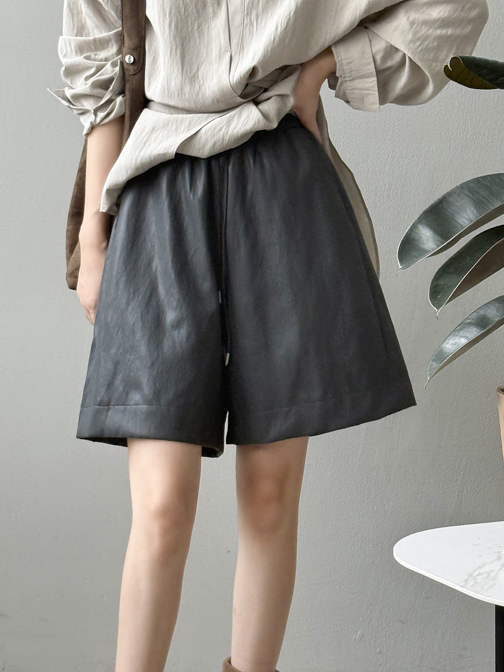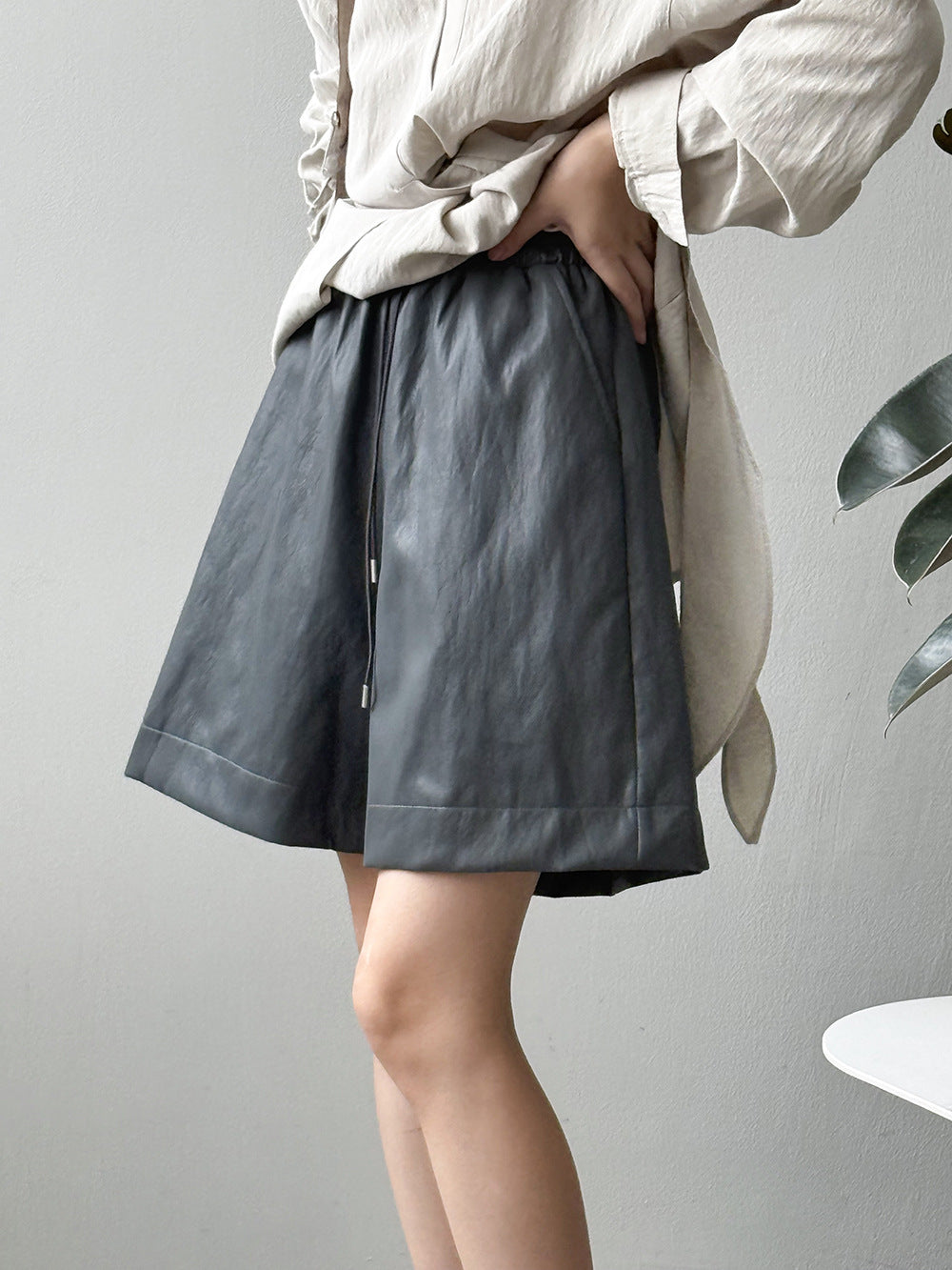 【Y26372】實拍高腰垂感PU皮A字短褲250911