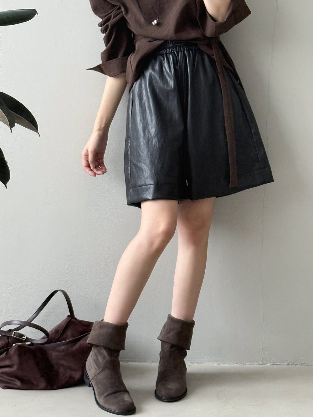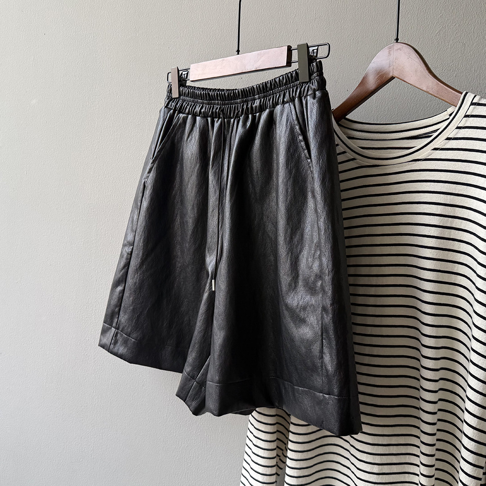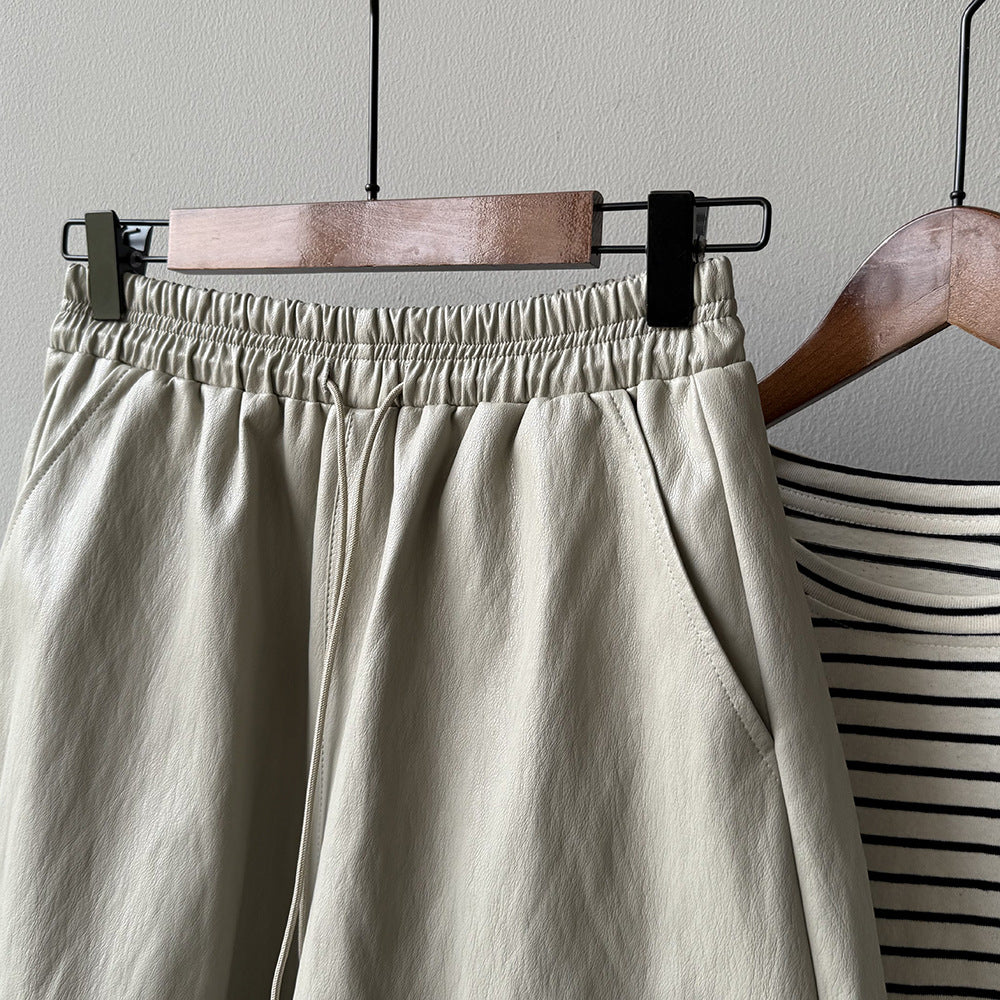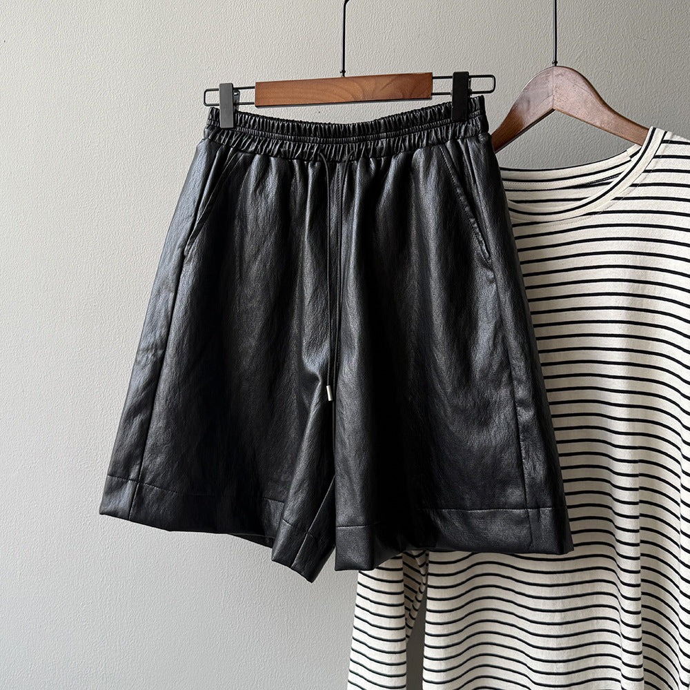 【Y26372】實拍高腰垂感PU皮A字短褲250911