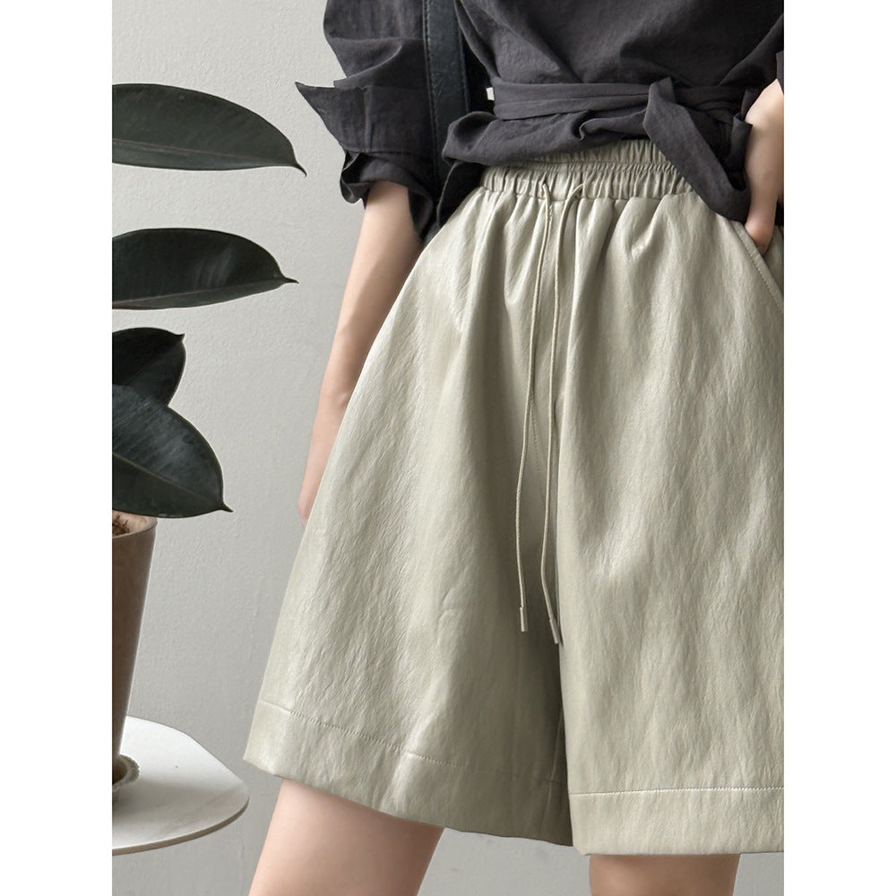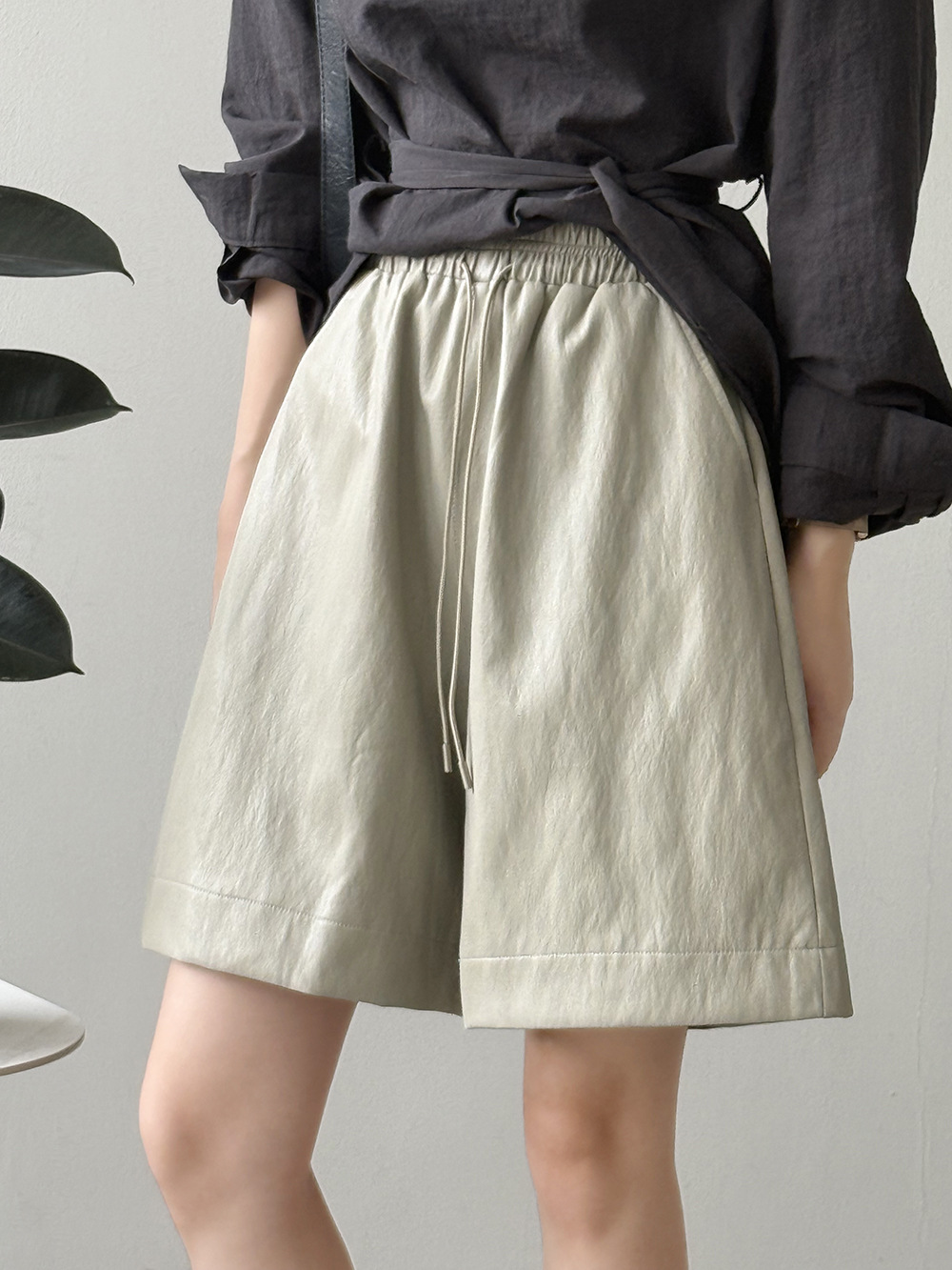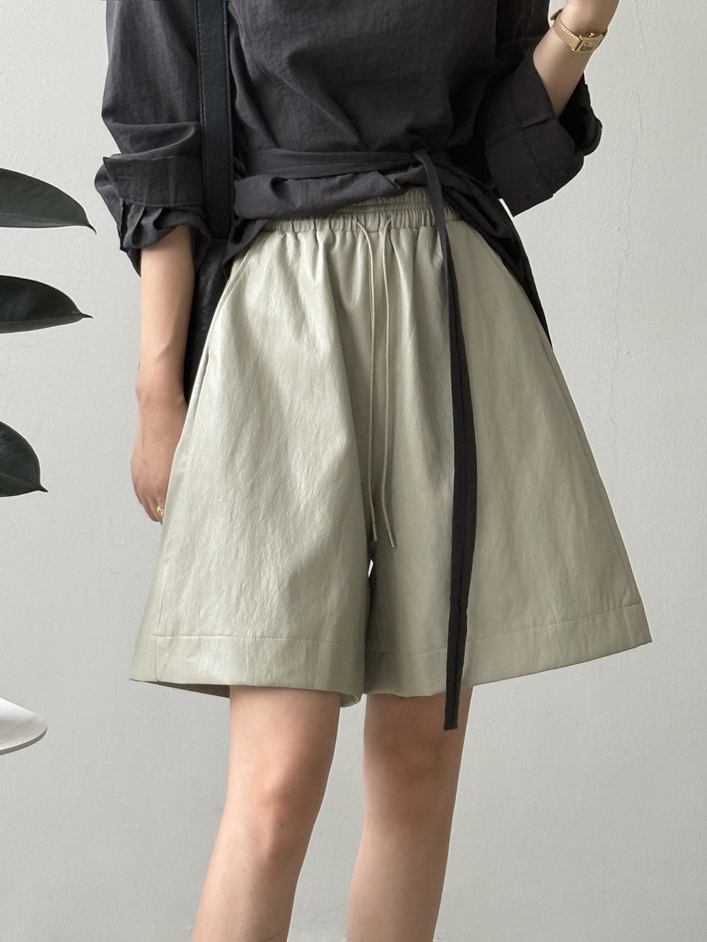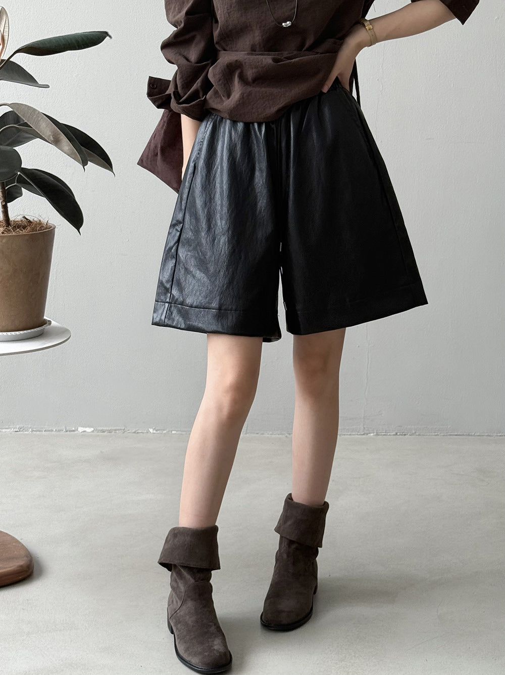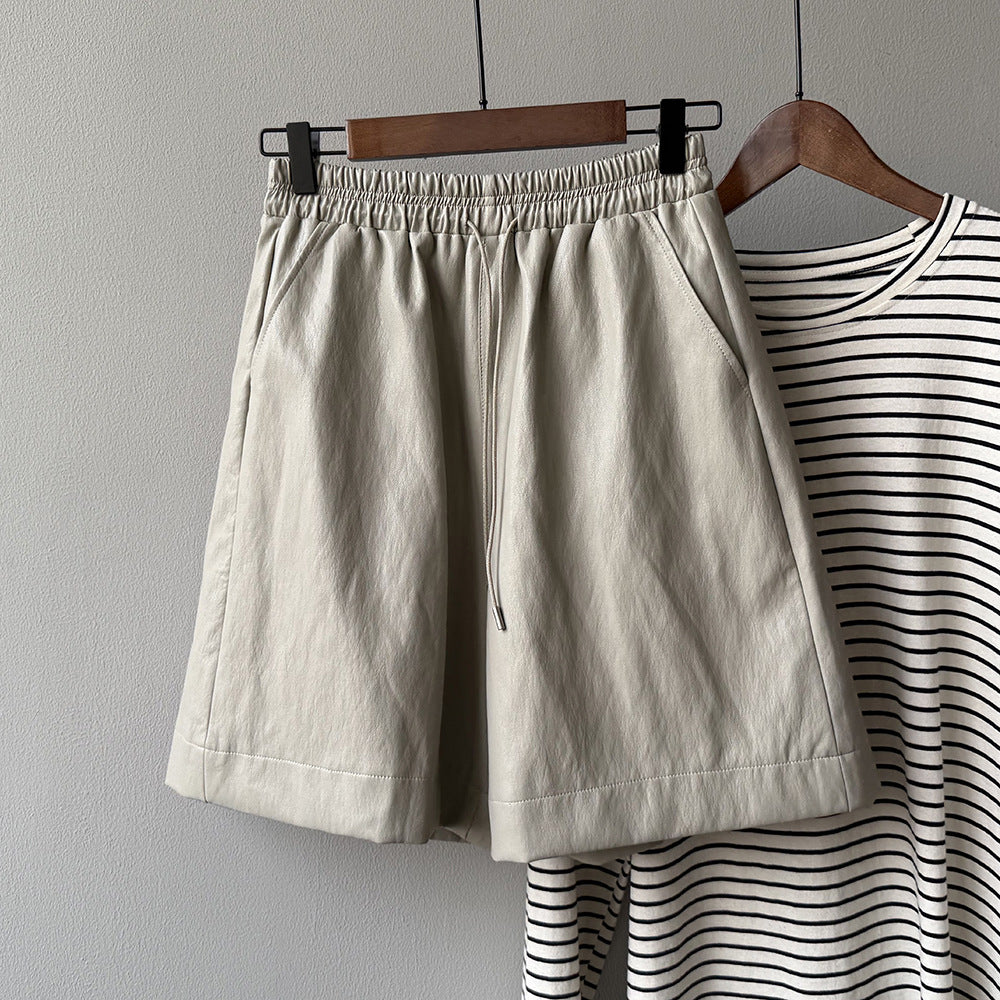 【Y26372】實拍高腰垂感PU皮A字短褲250911