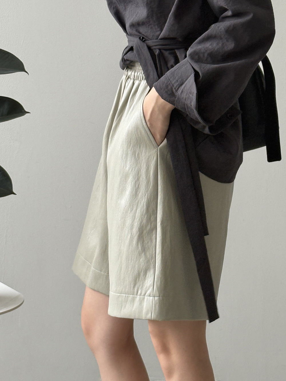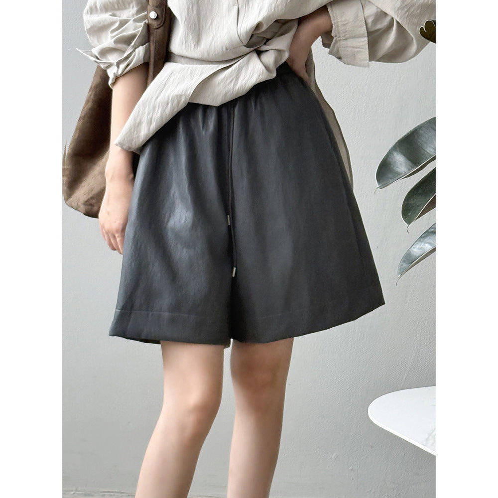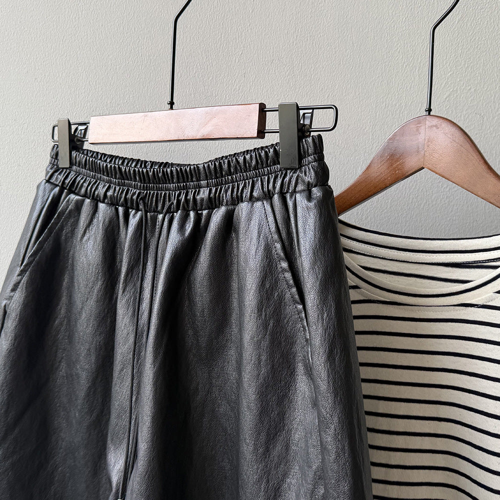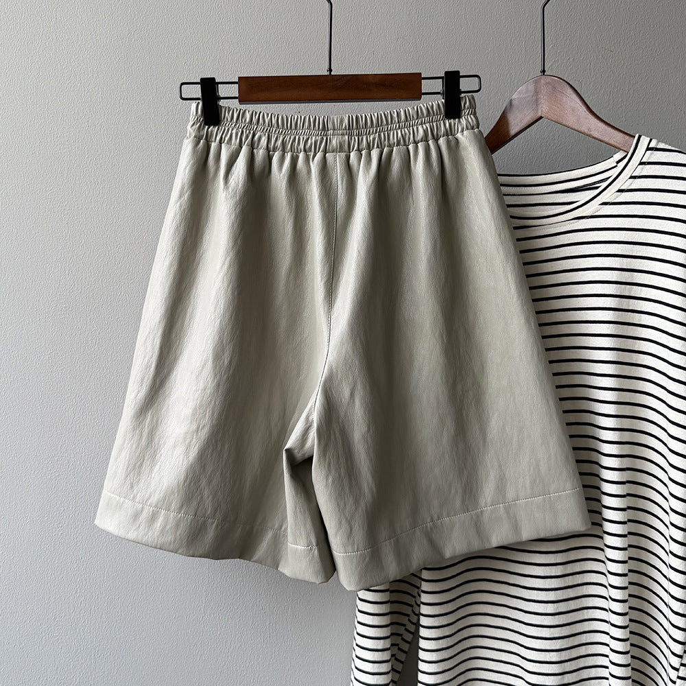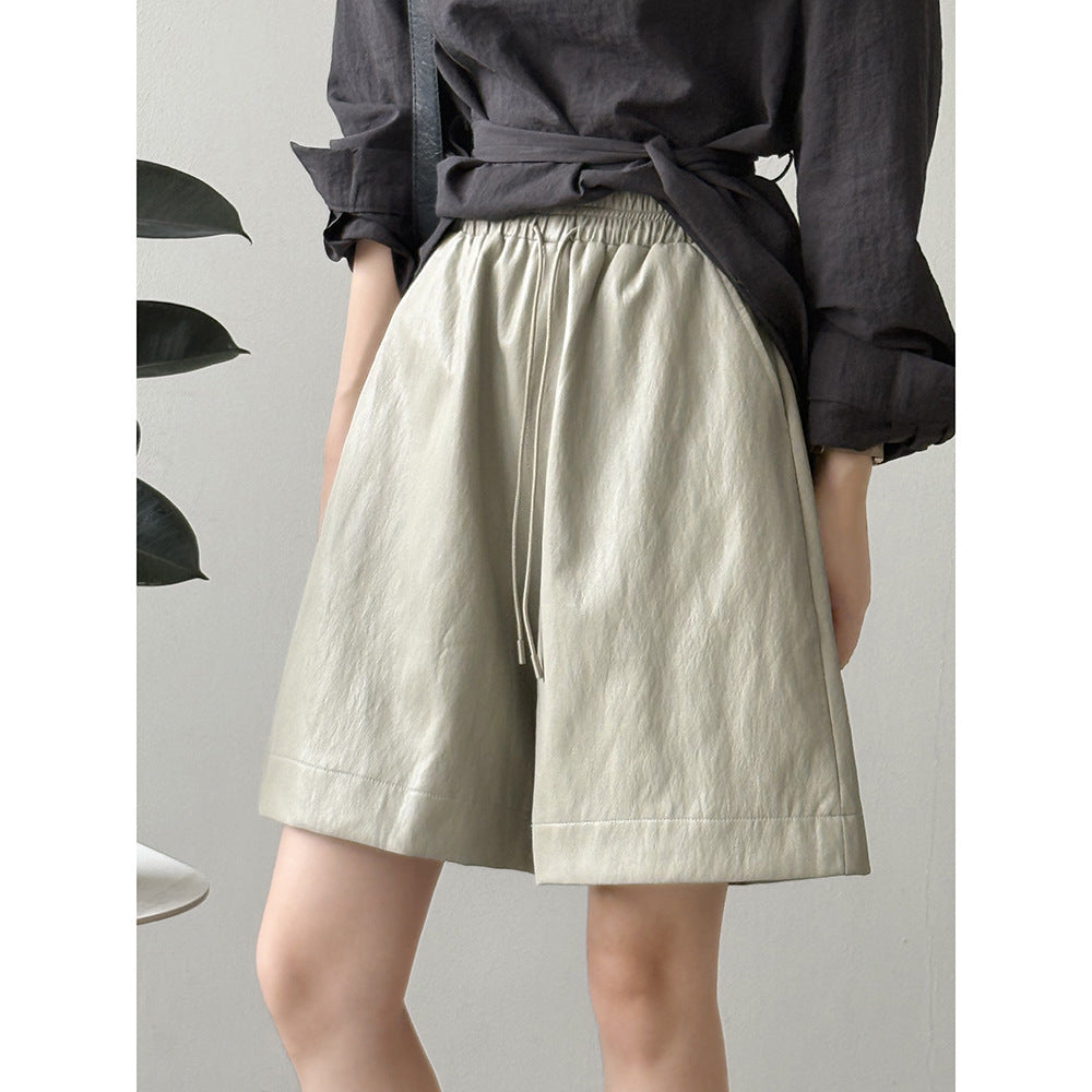 【Y26372】實拍高腰垂感PU皮A字短褲250911