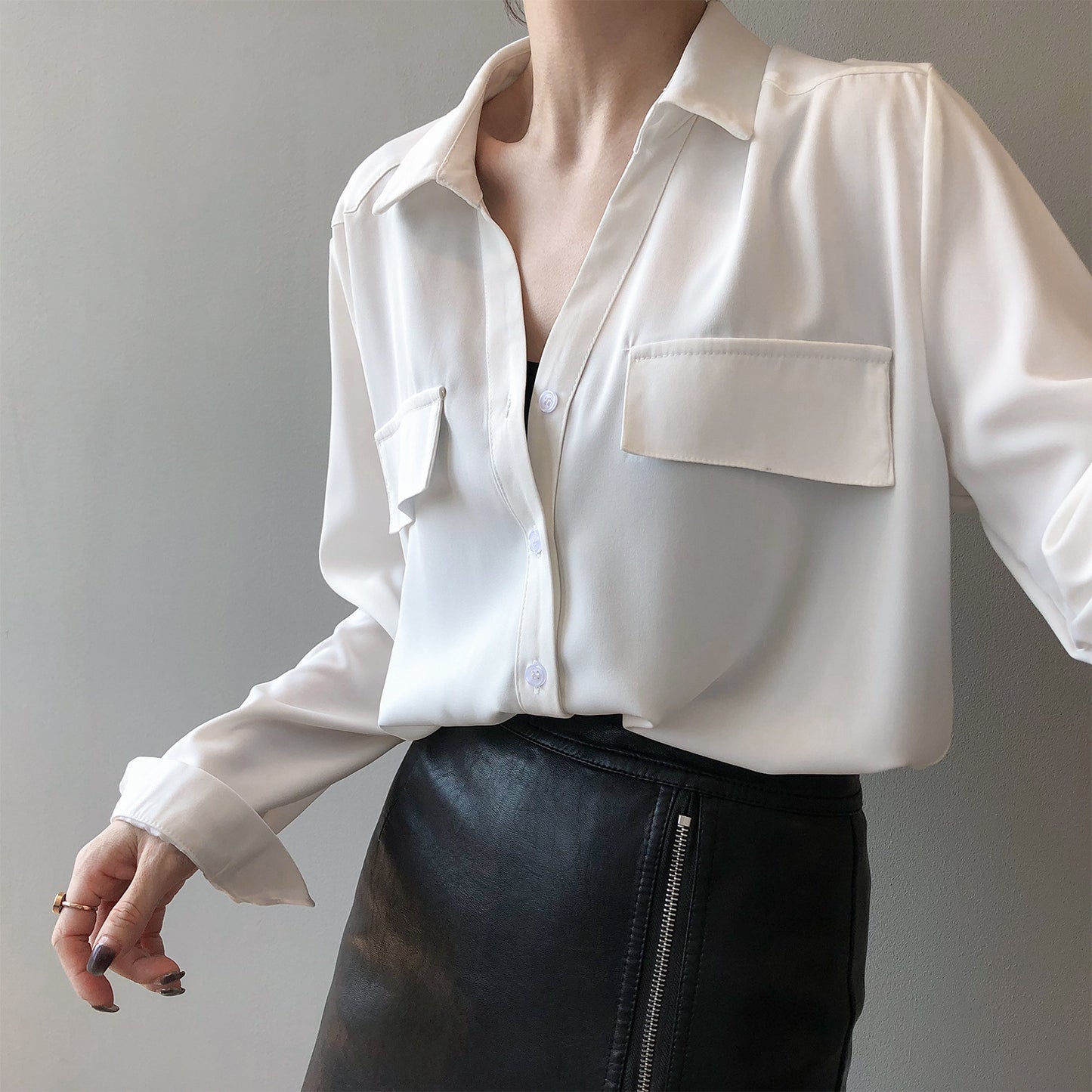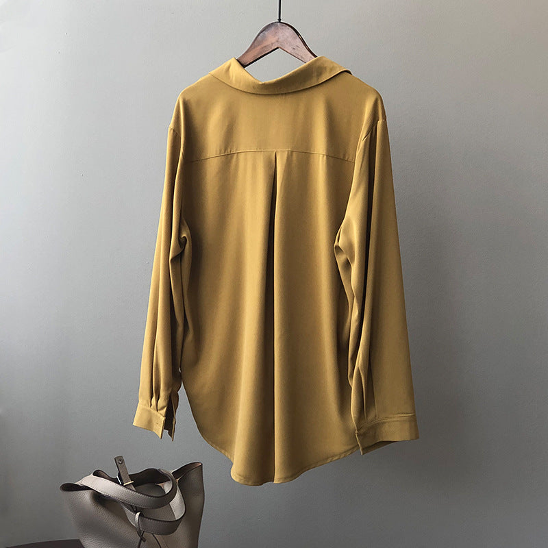【Y2963】實拍韓國早春復古簡約長袖襯衫YY25早春