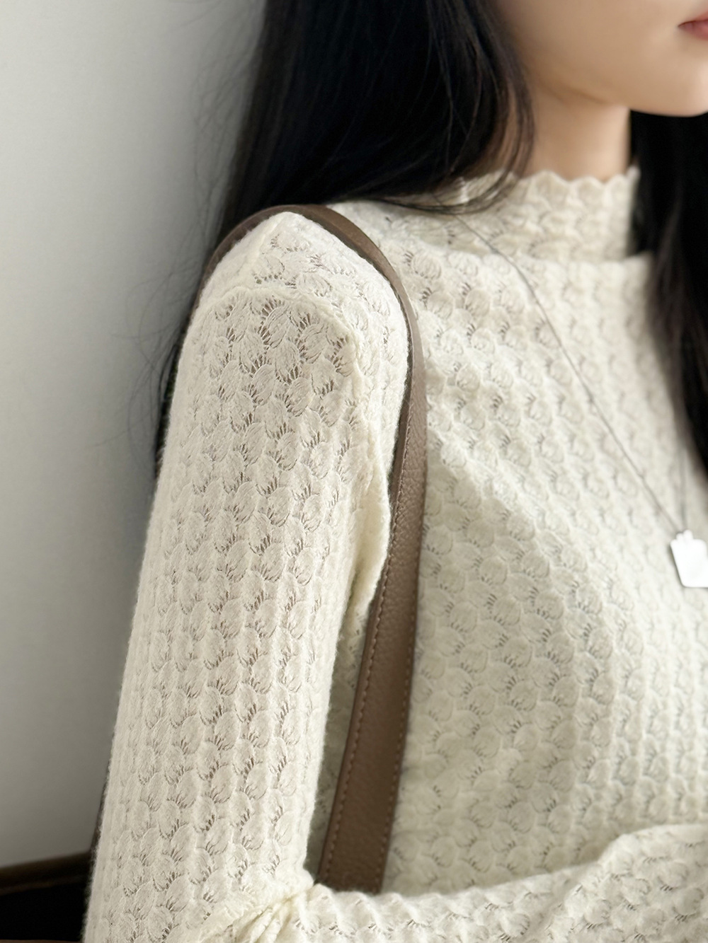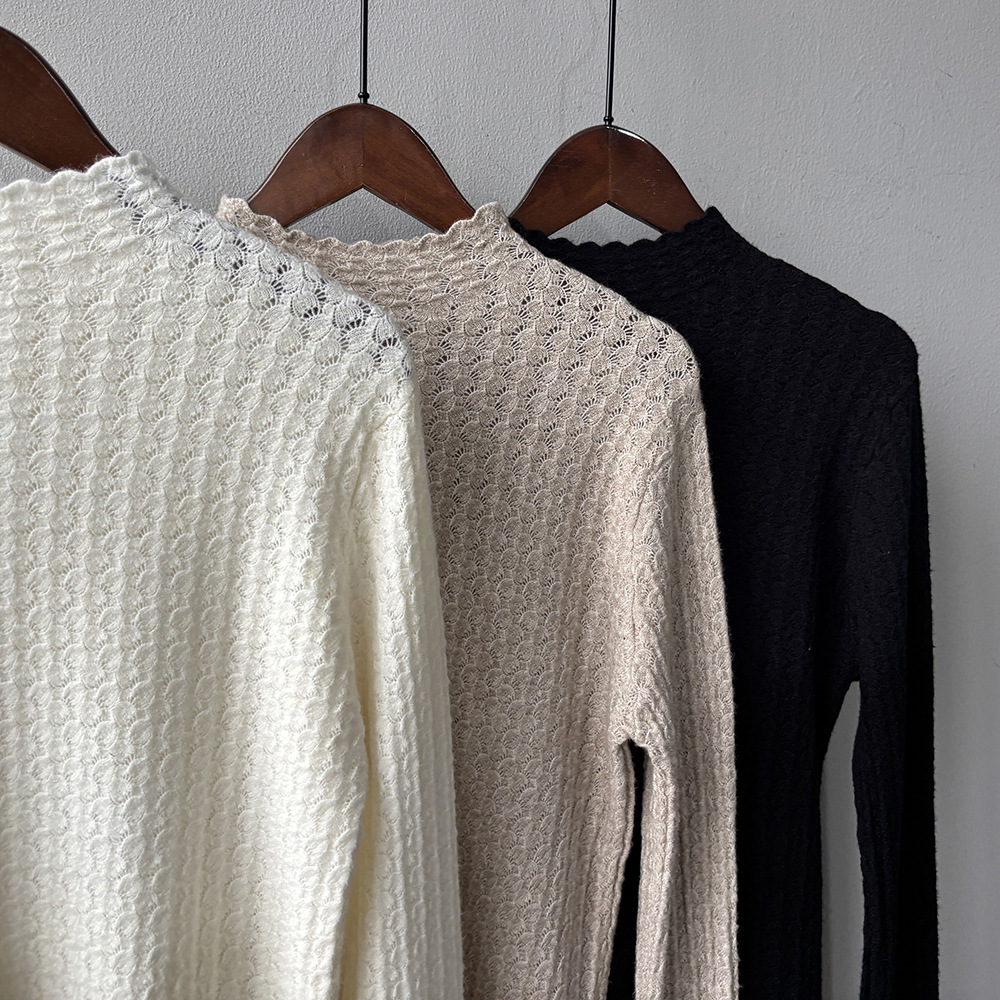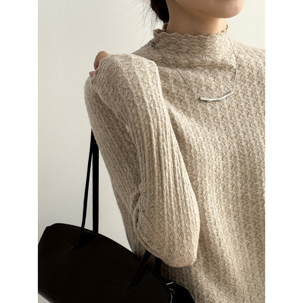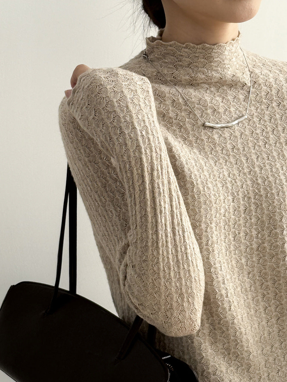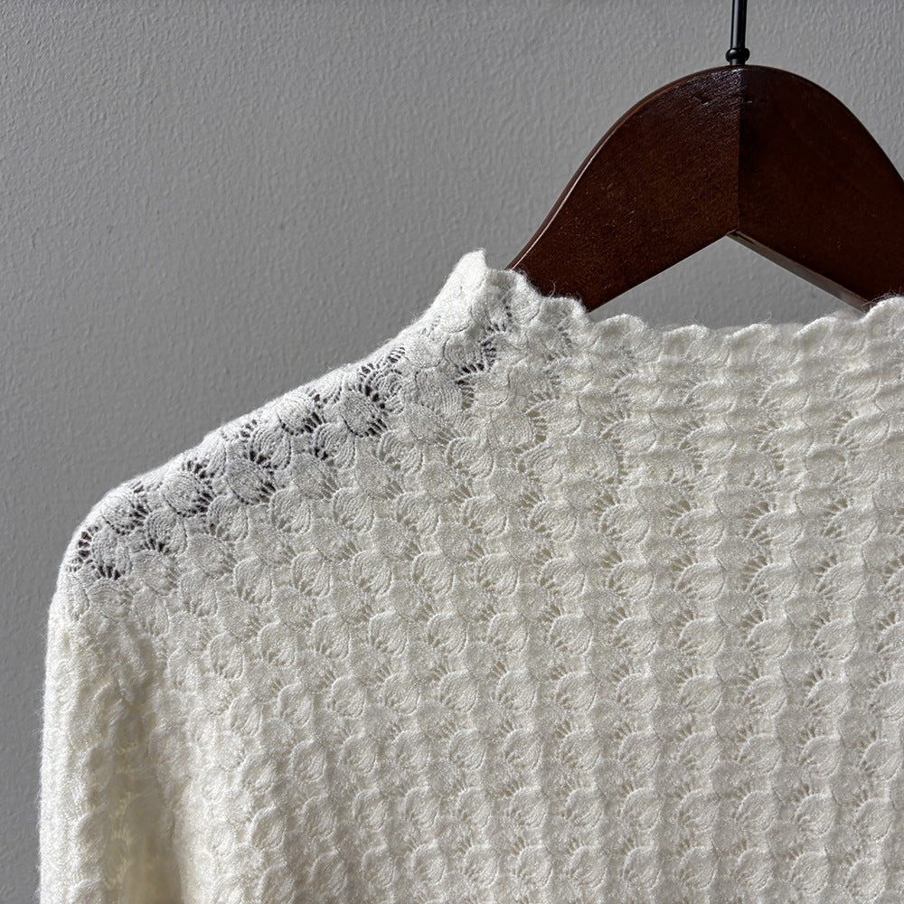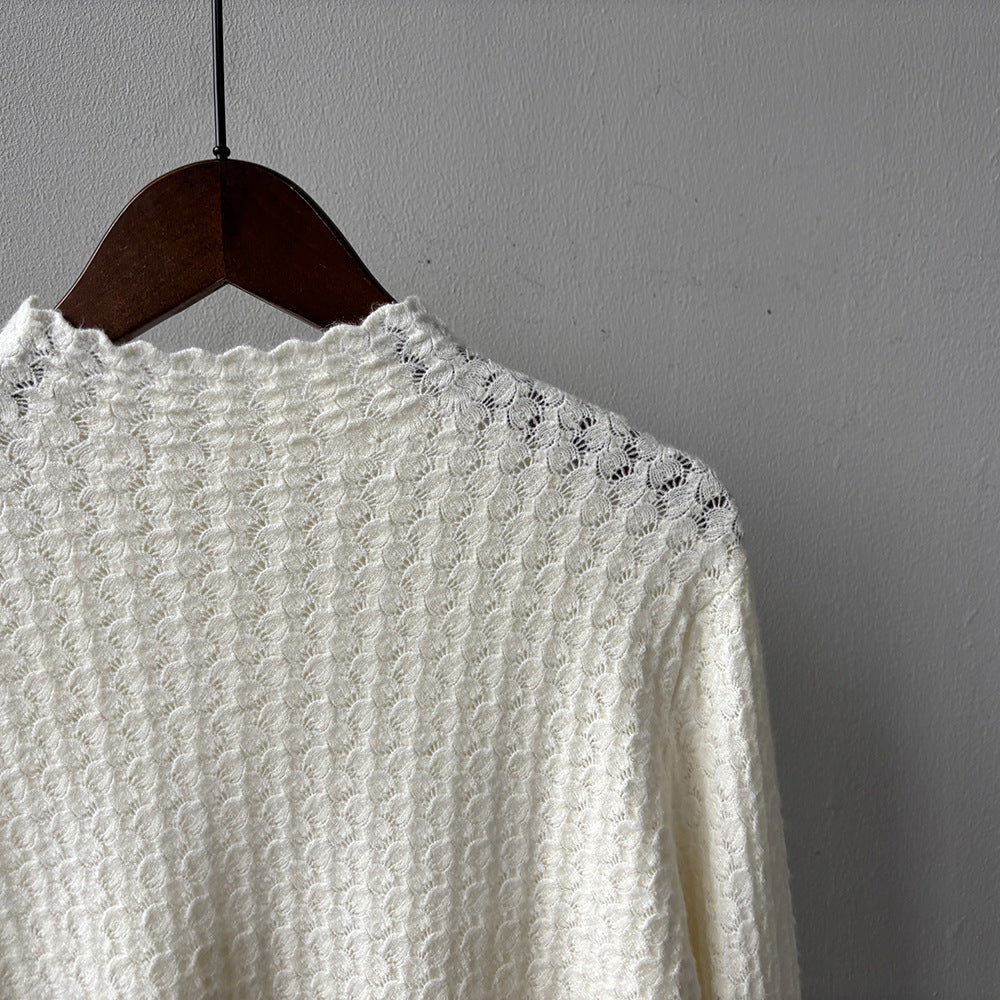 【Y312】實拍高單質感鏤空蕾絲半高領針織衫251106