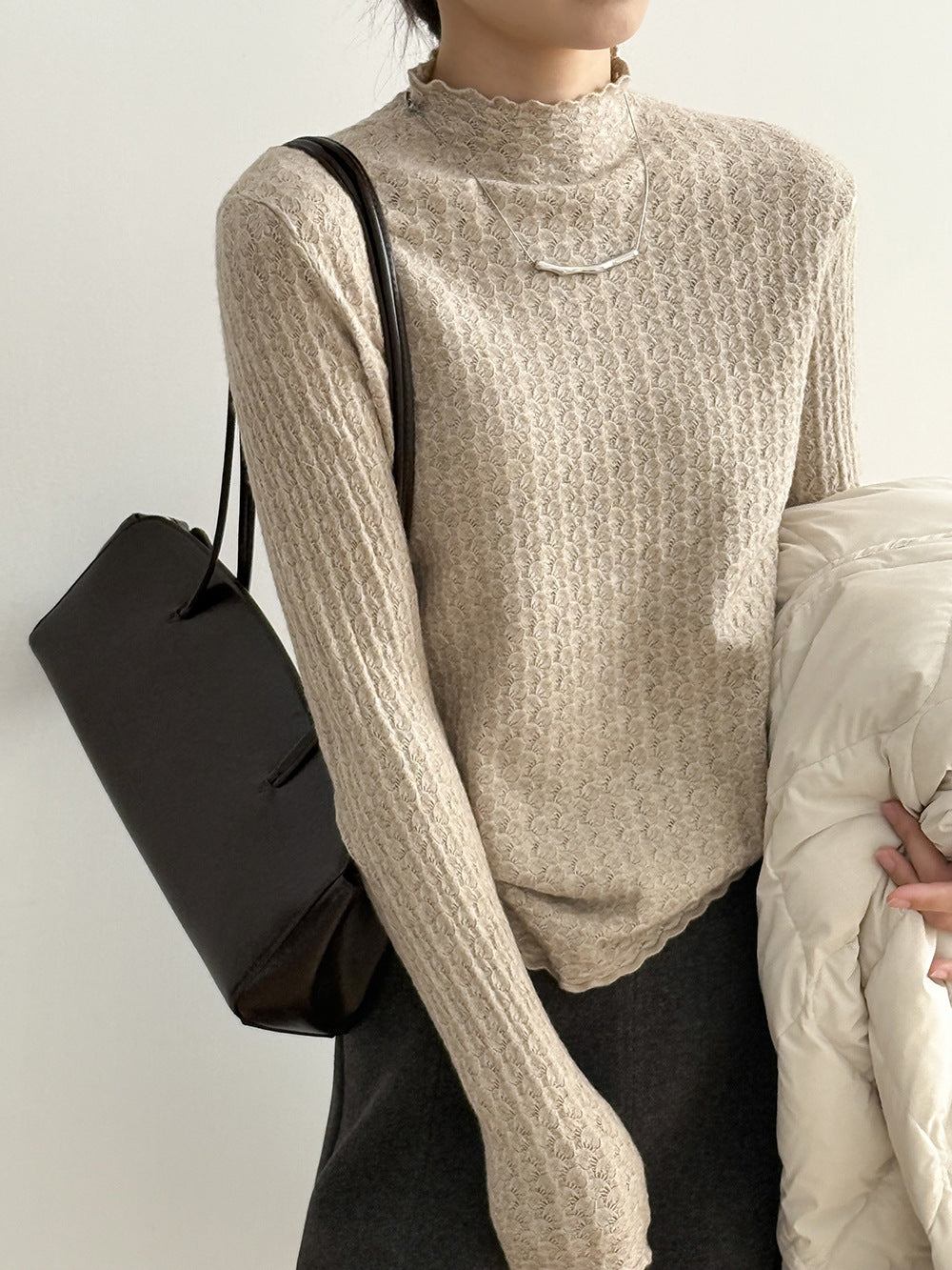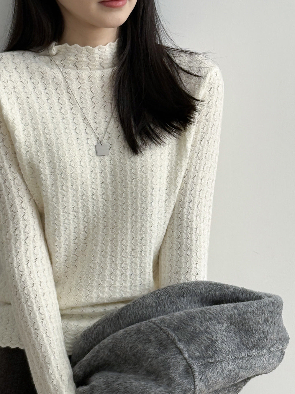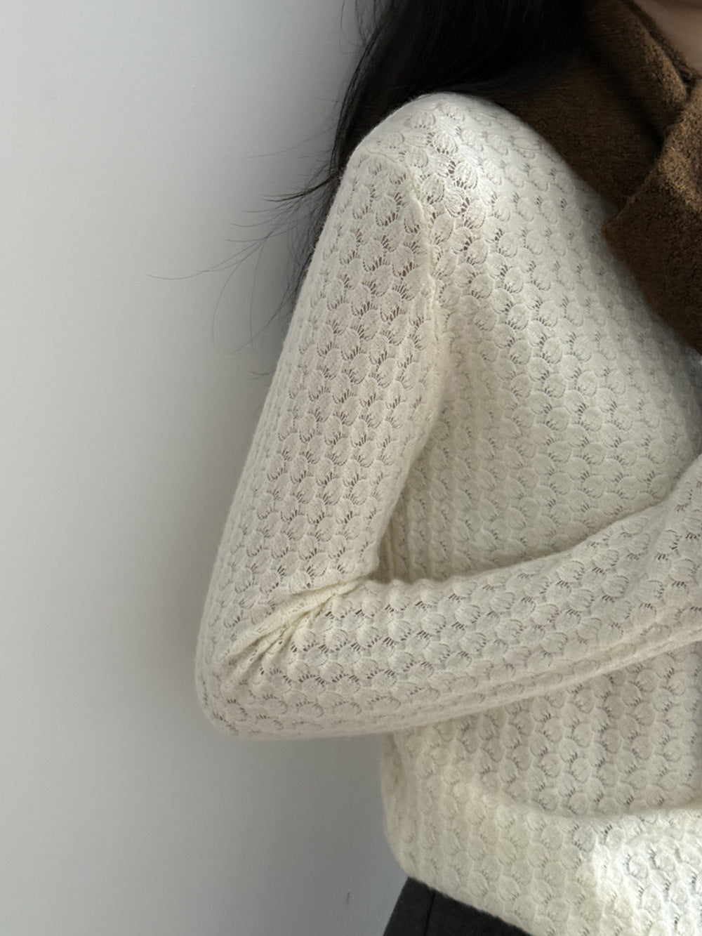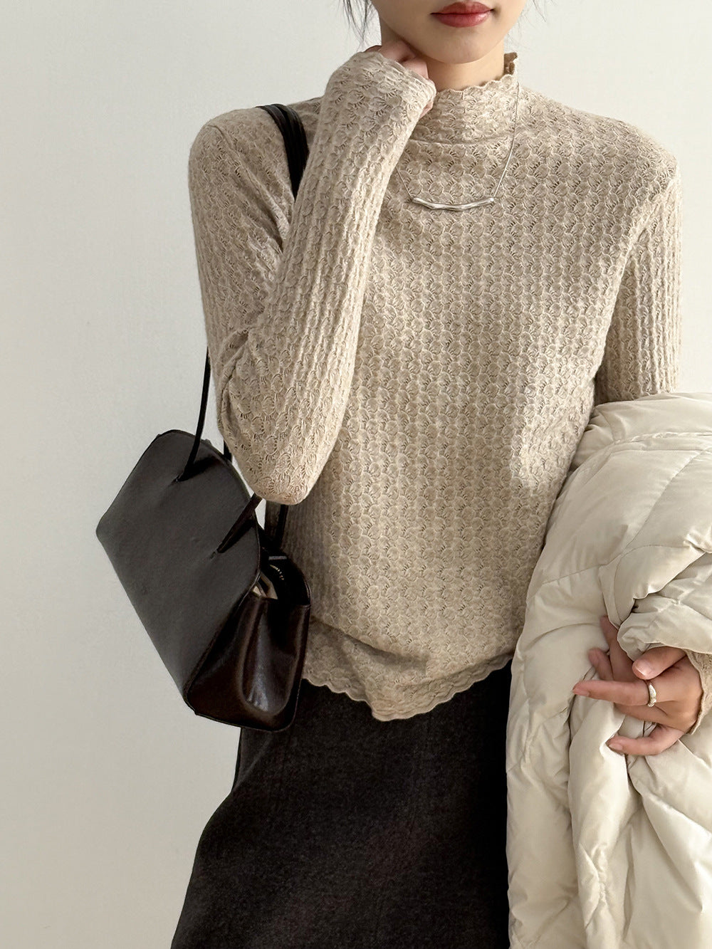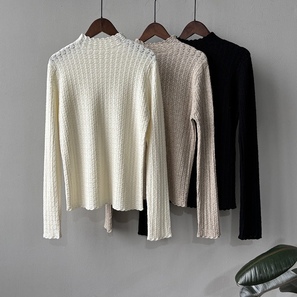 【Y312】實拍高單質感鏤空蕾絲半高領針織衫251106