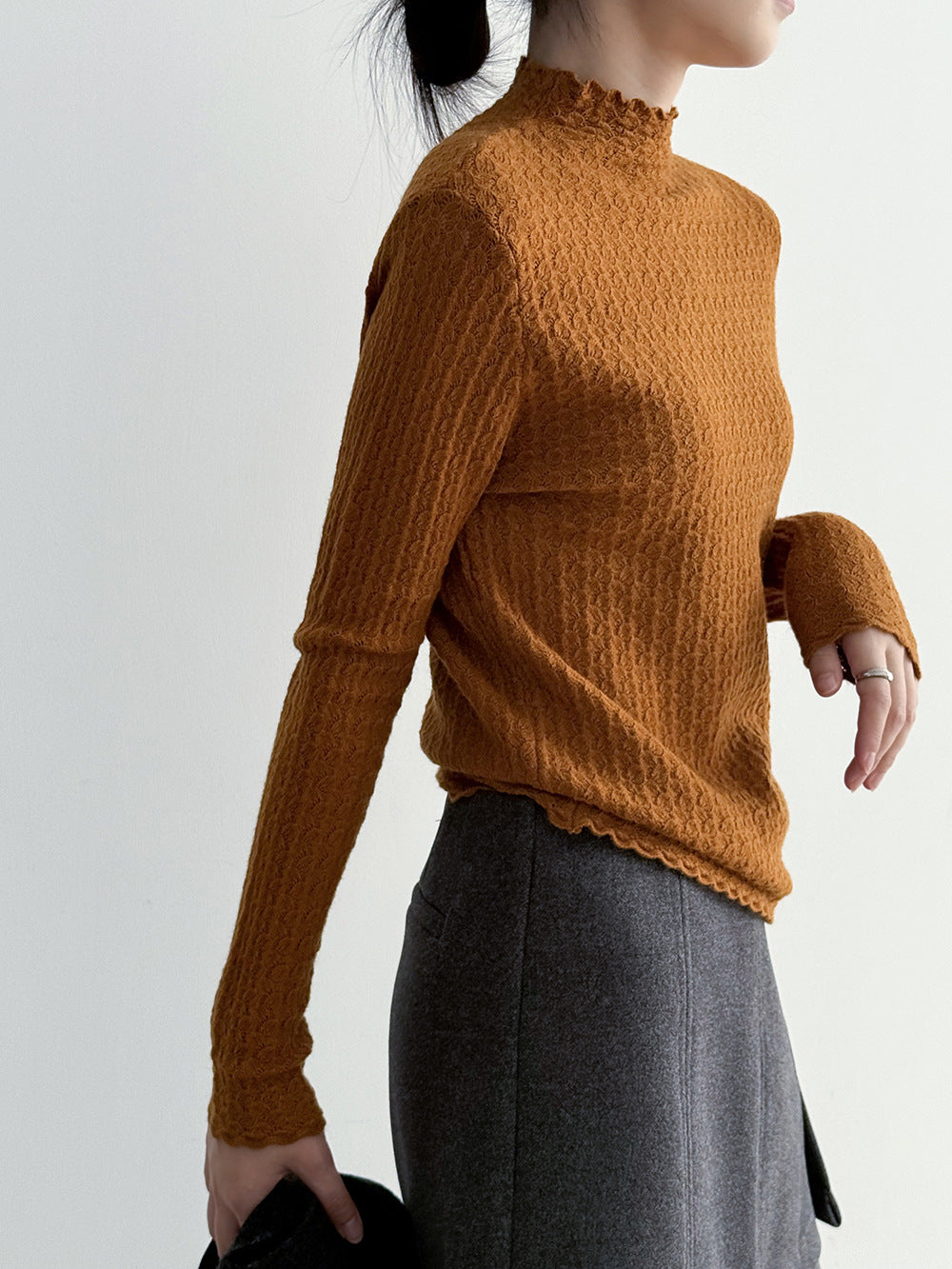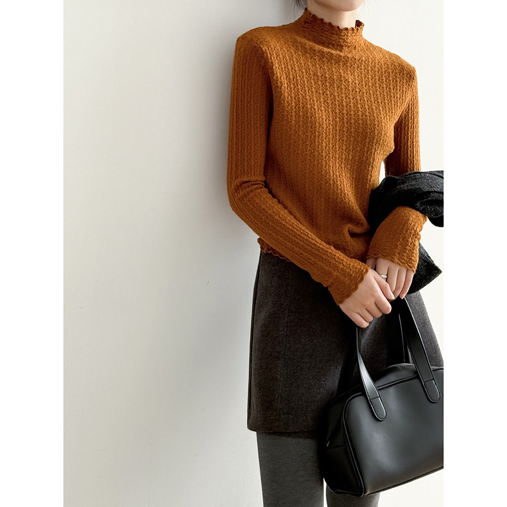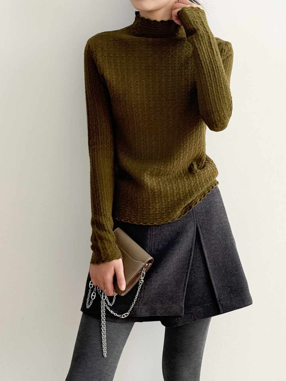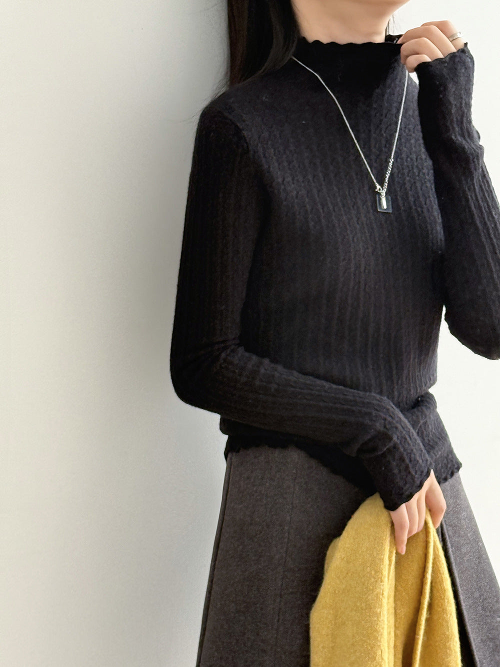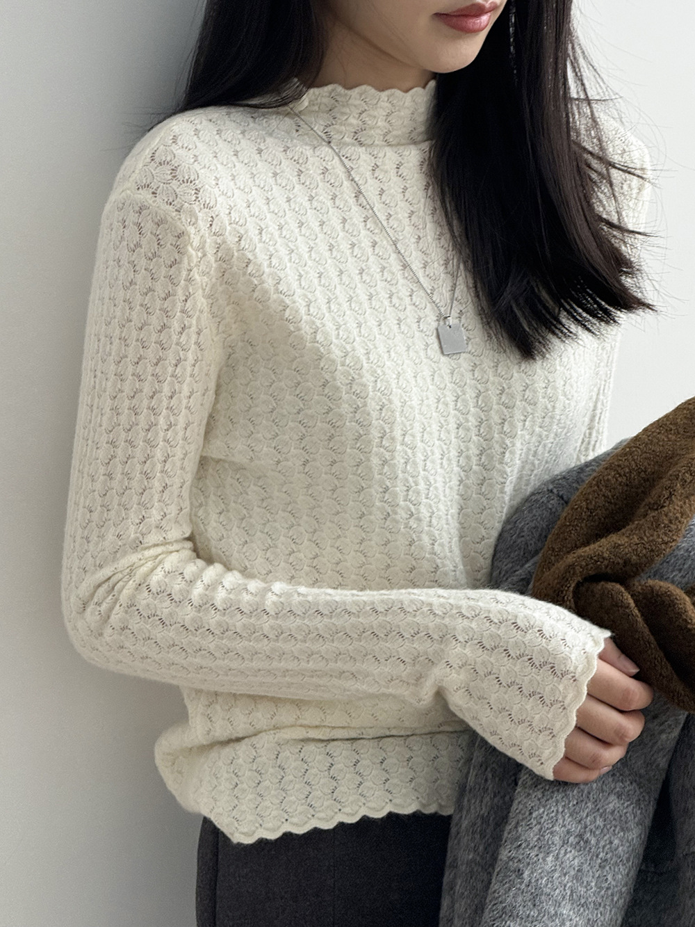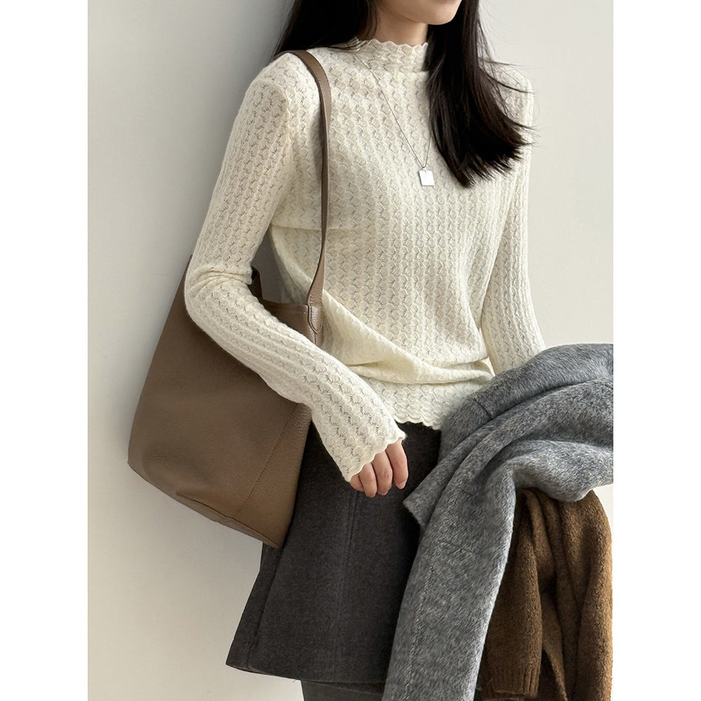【Y312】實拍高單質感鏤空蕾絲半高領針織衫251106