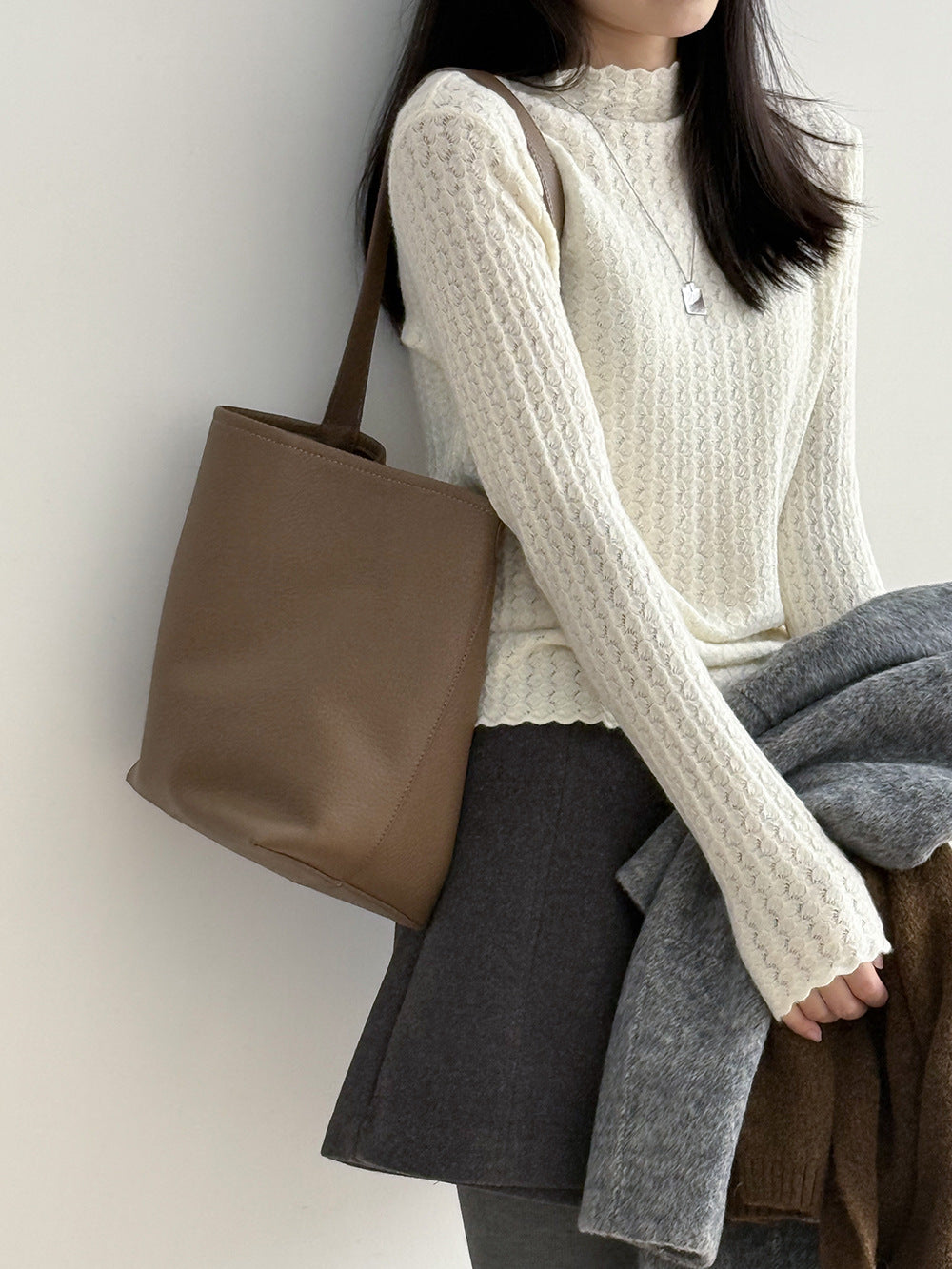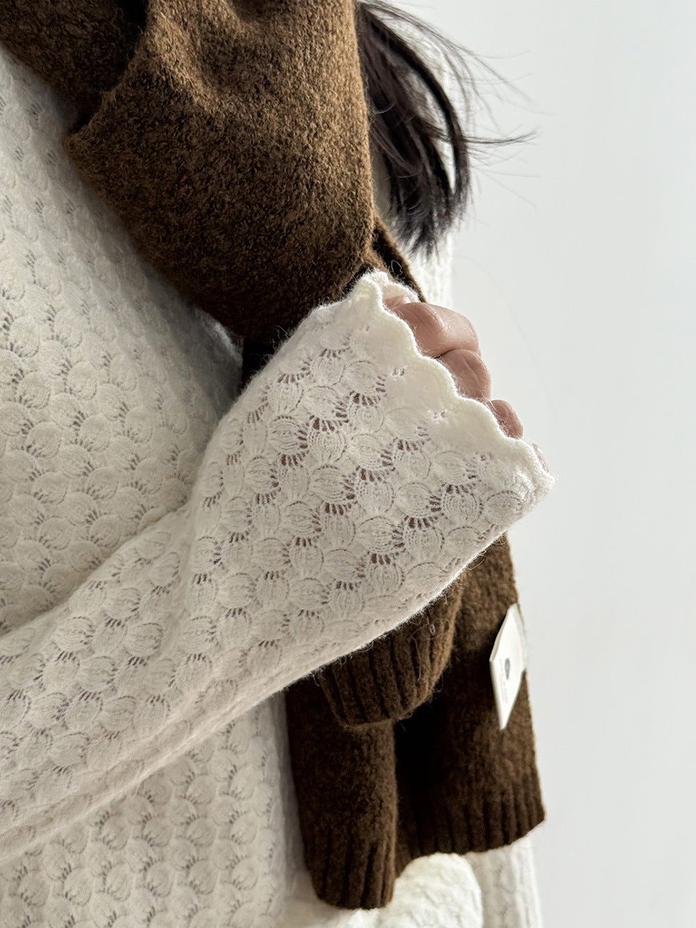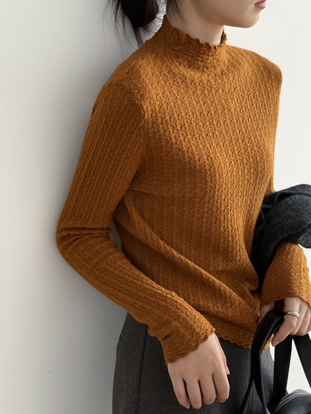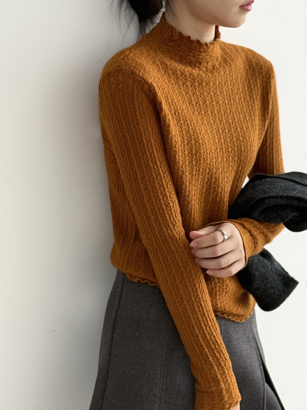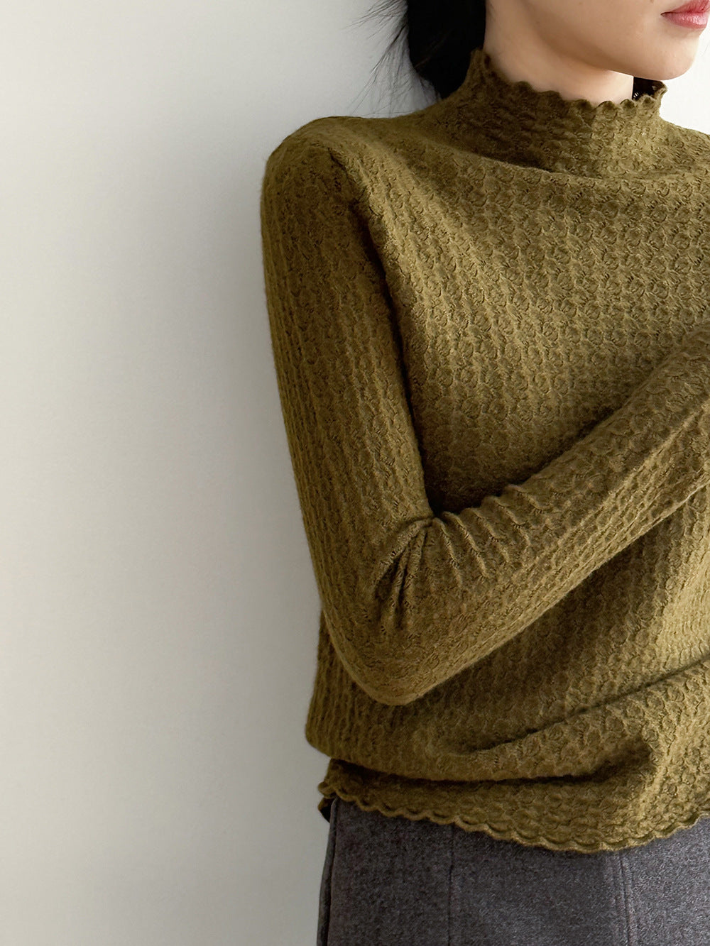【Y312】實拍高單質感鏤空蕾絲半高領針織衫251106