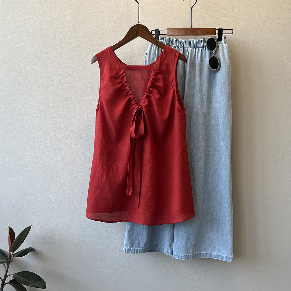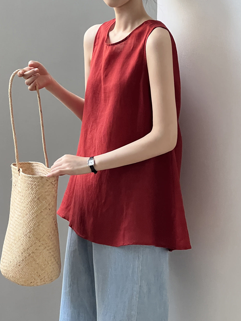 【Y3182】實拍韓國天絲亞麻氣質中長背心240612