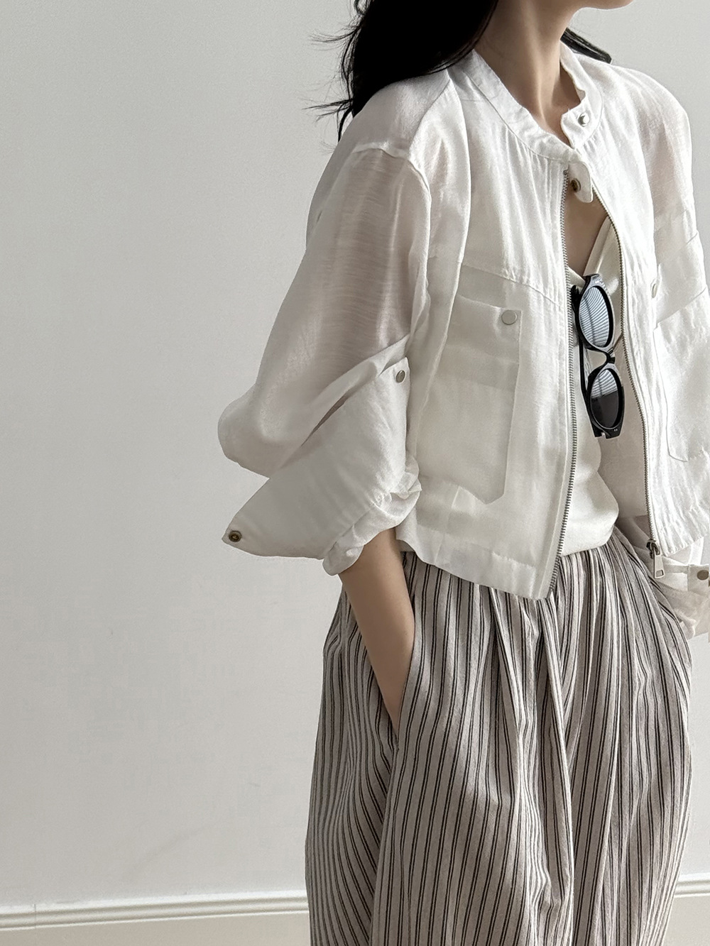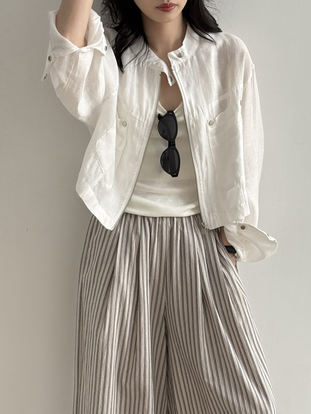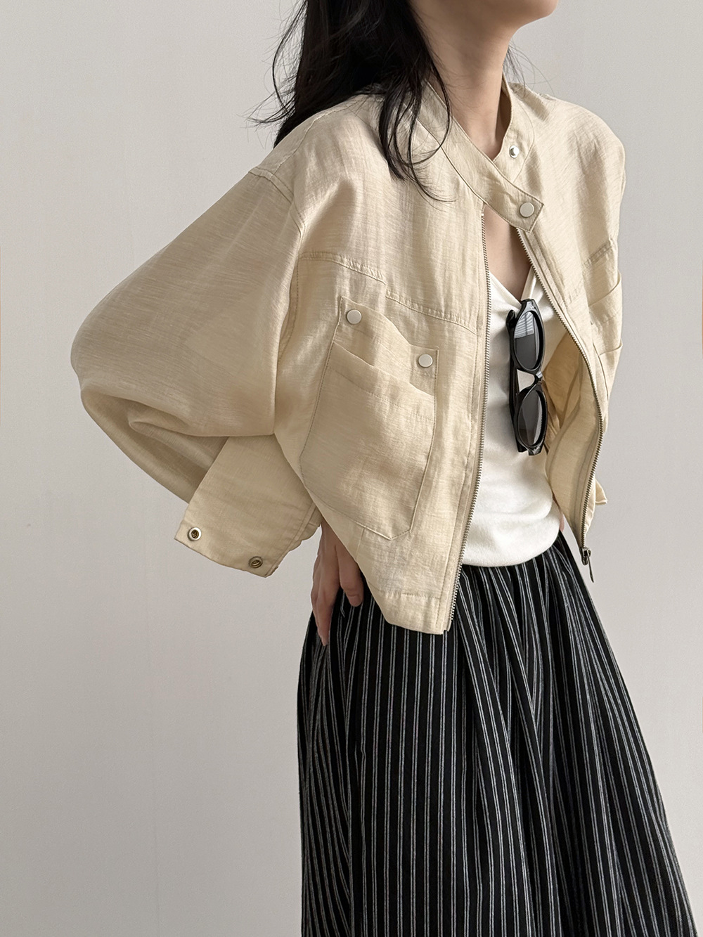 【Y3183】實拍春夏簡約立領天絲亞麻外套(含亞麻6%)250320