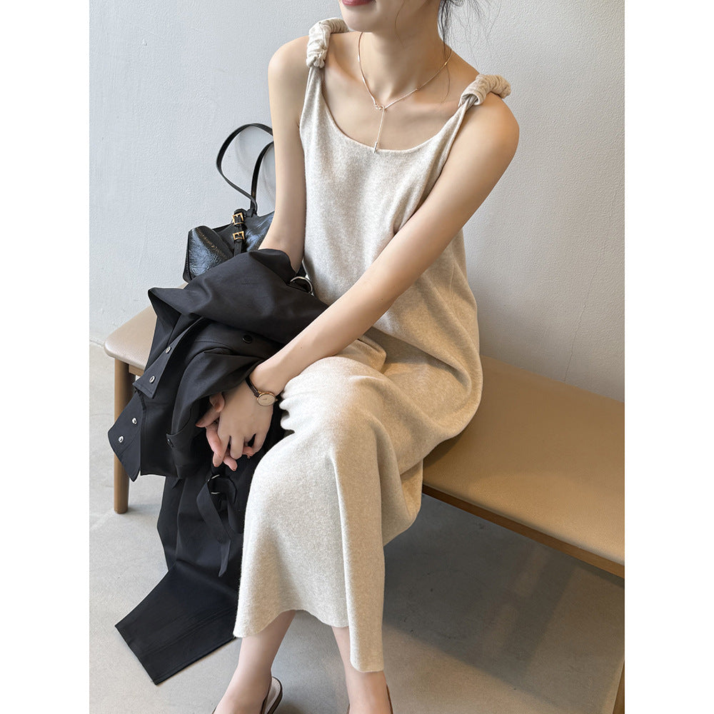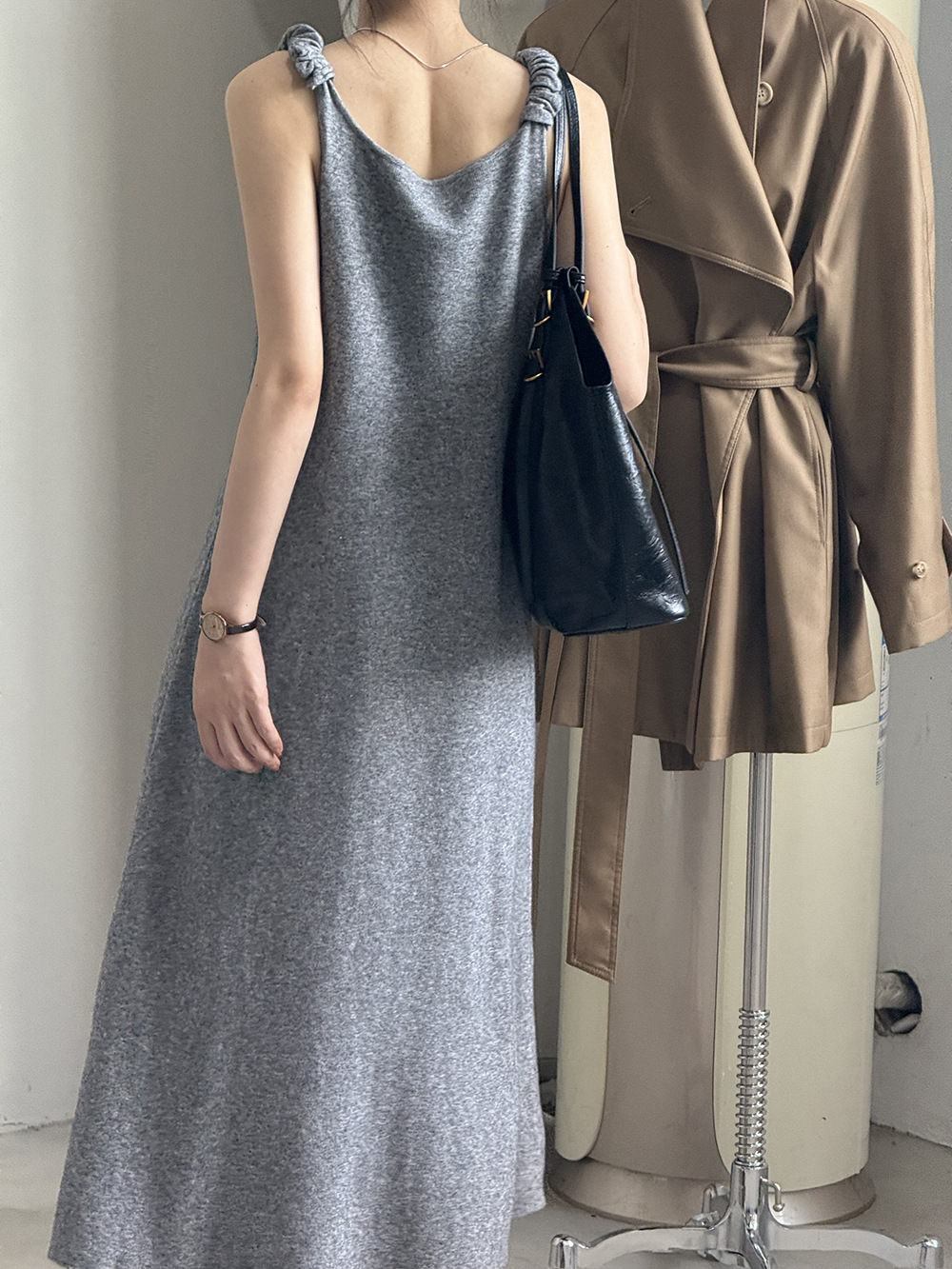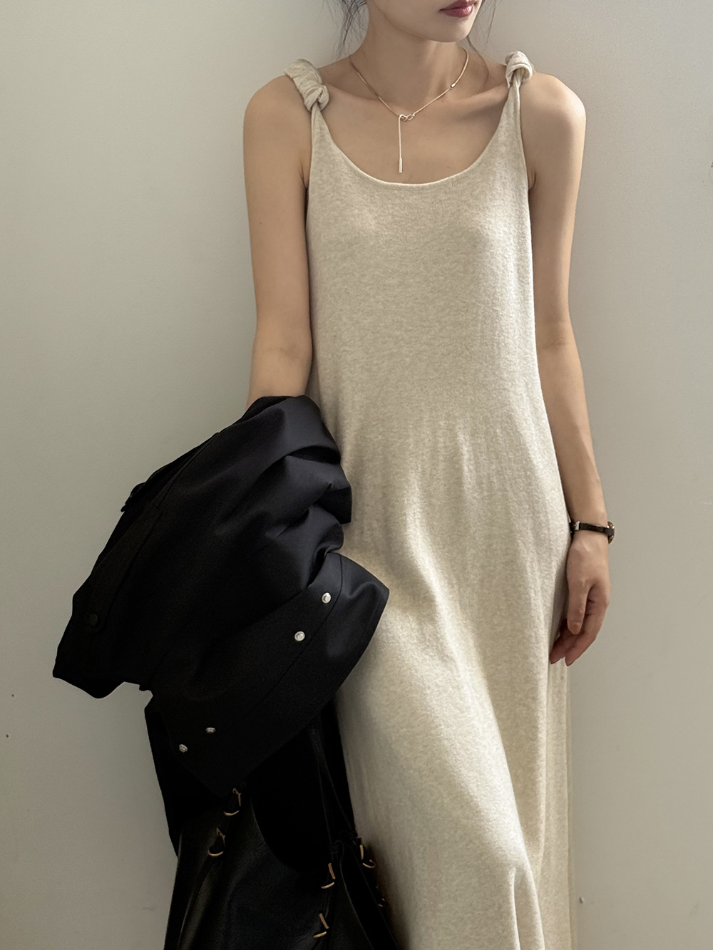【Y502】實拍初秋法式簡約扭結針織洋裝250822