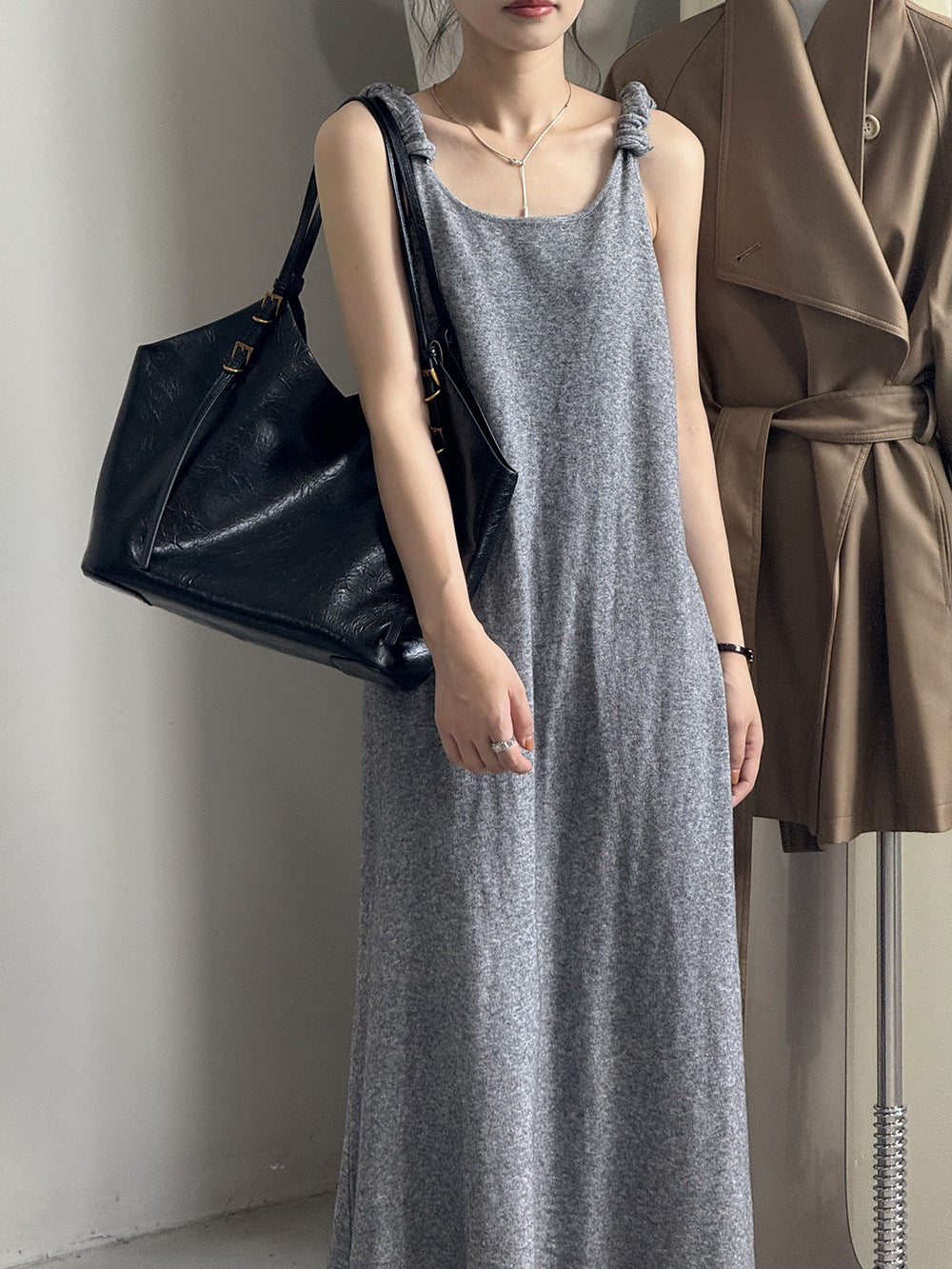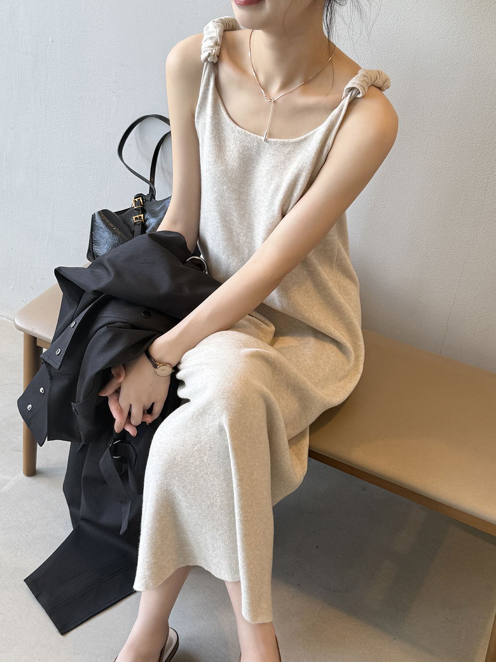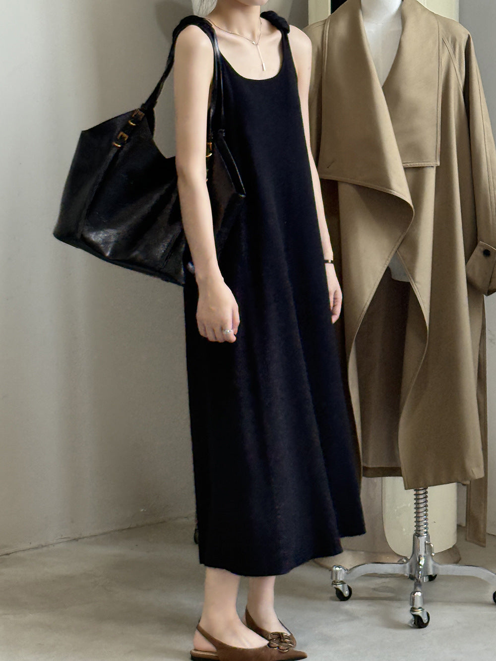【Y502】實拍初秋法式簡約扭結針織洋裝250822