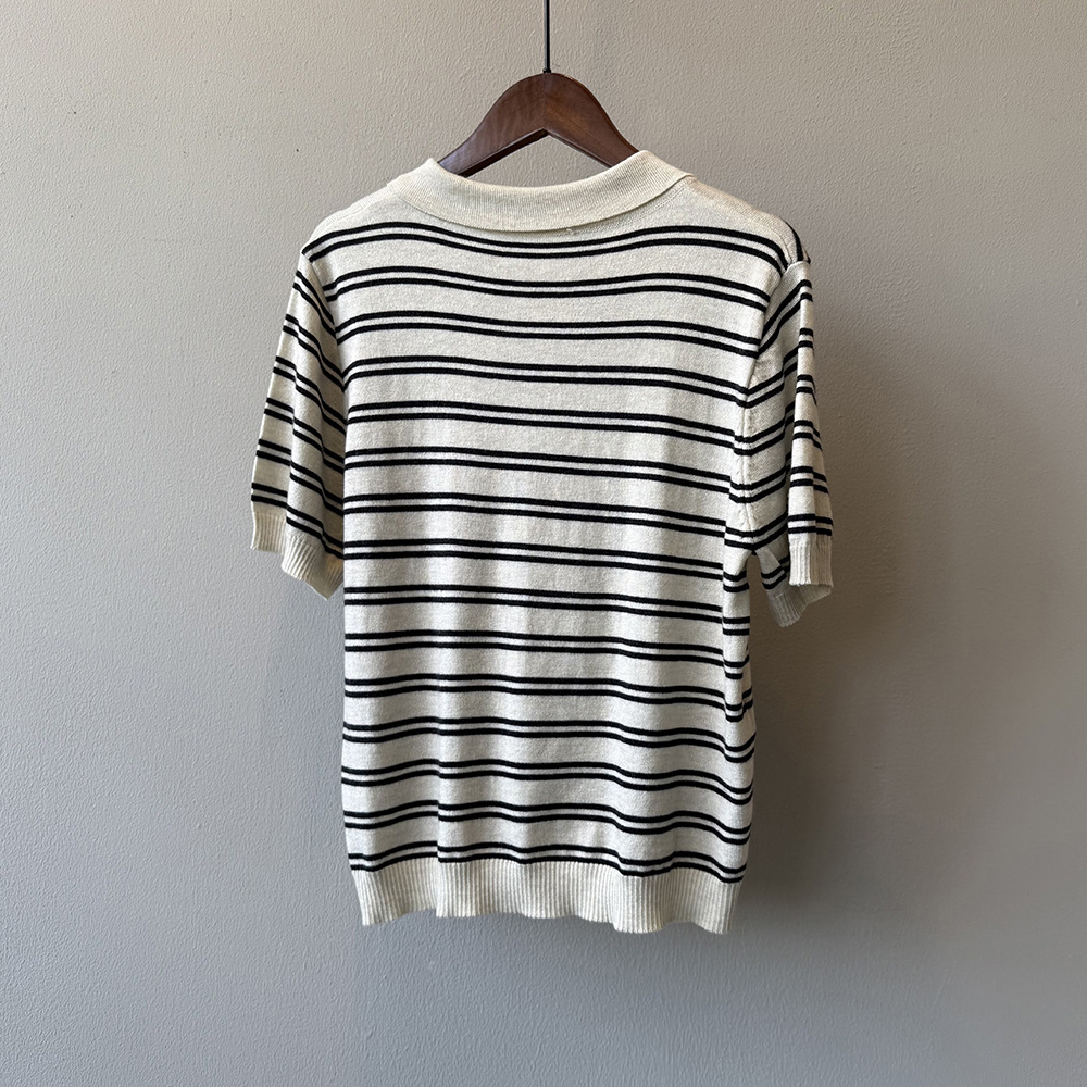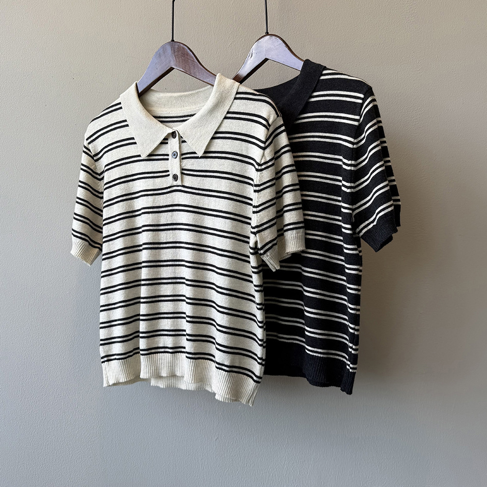 【Y527】實拍初秋韓系簡約條紋短袖針織T恤(羊毛6%)250822