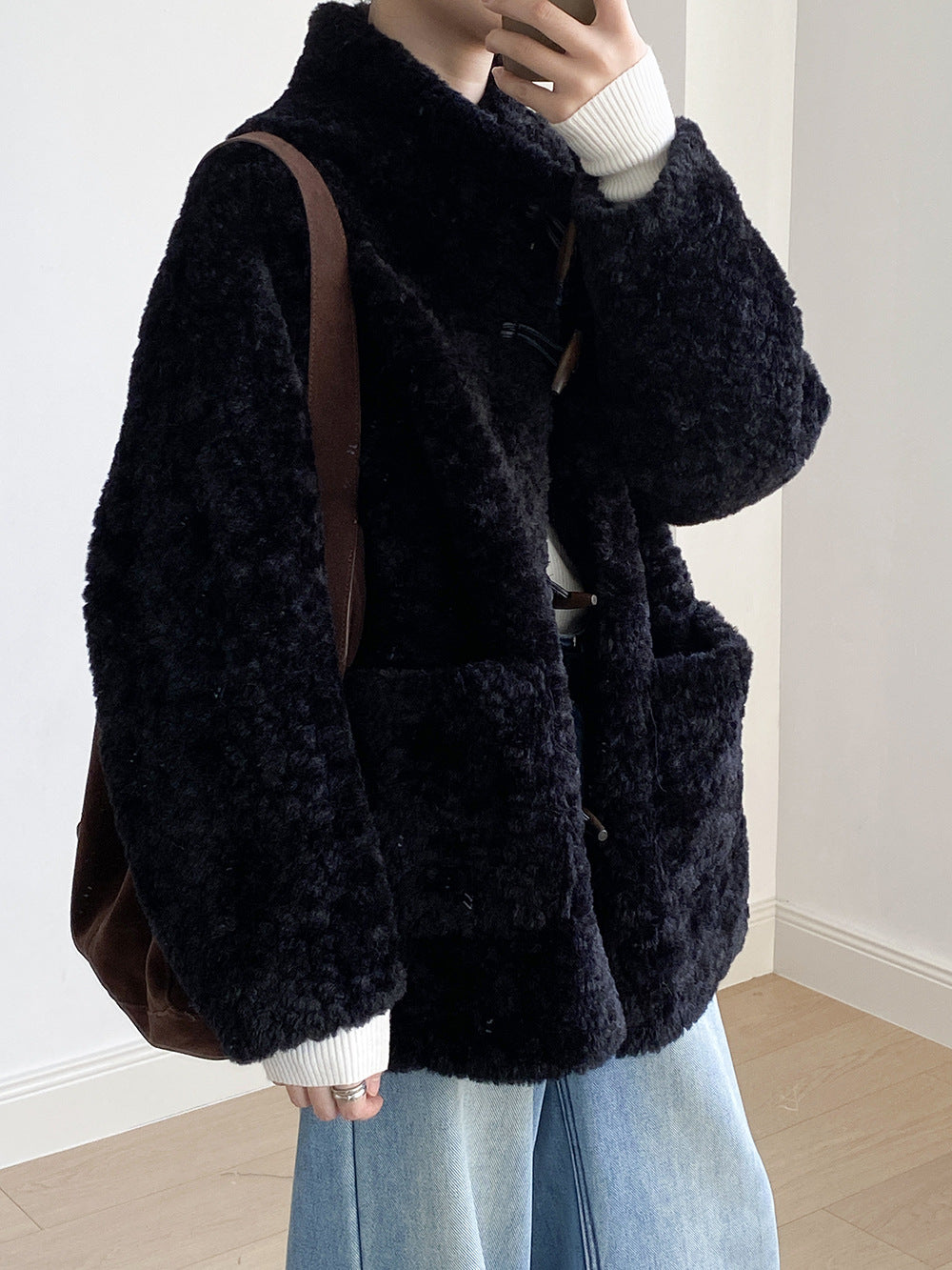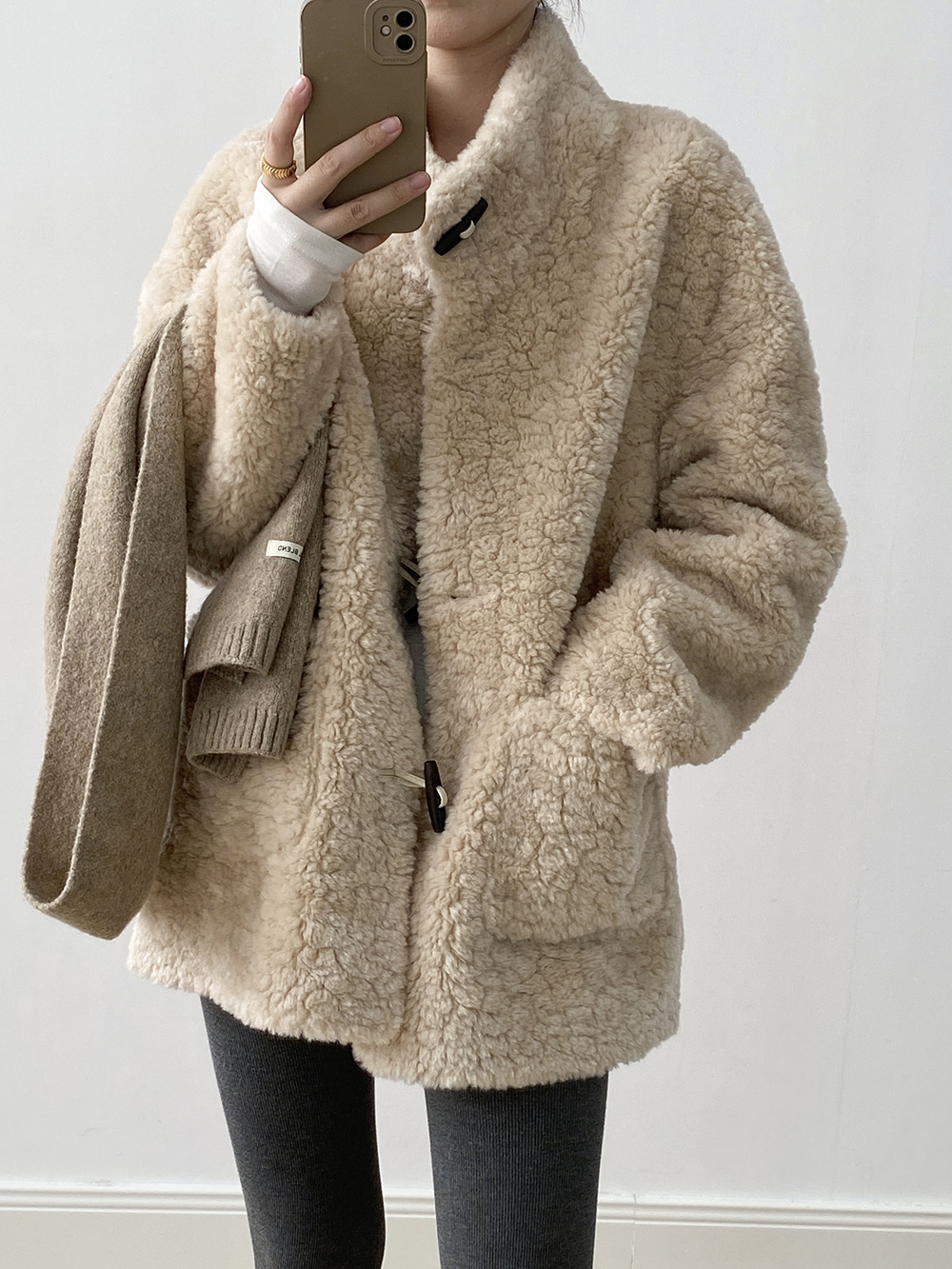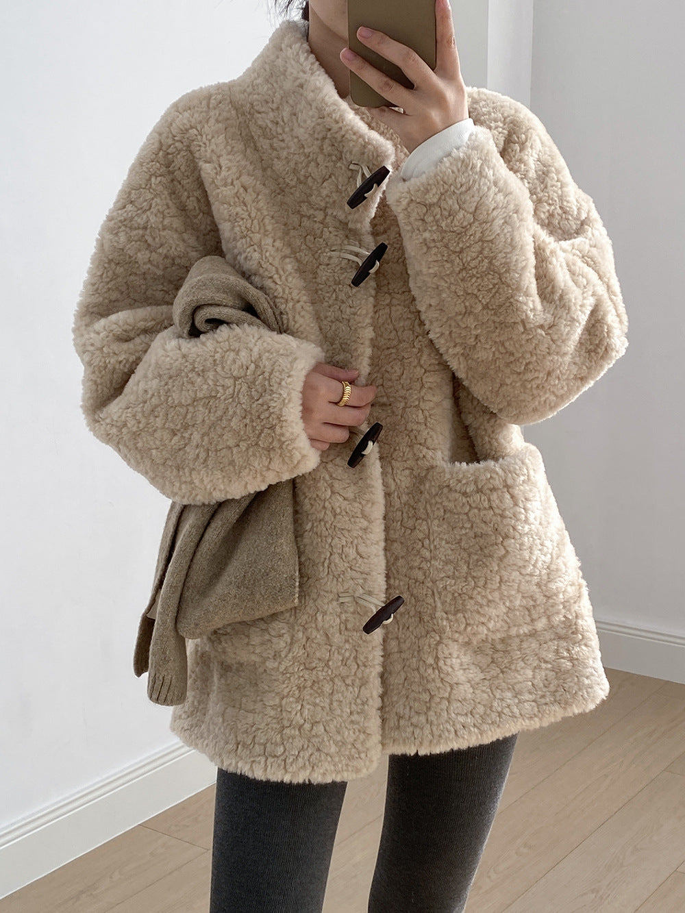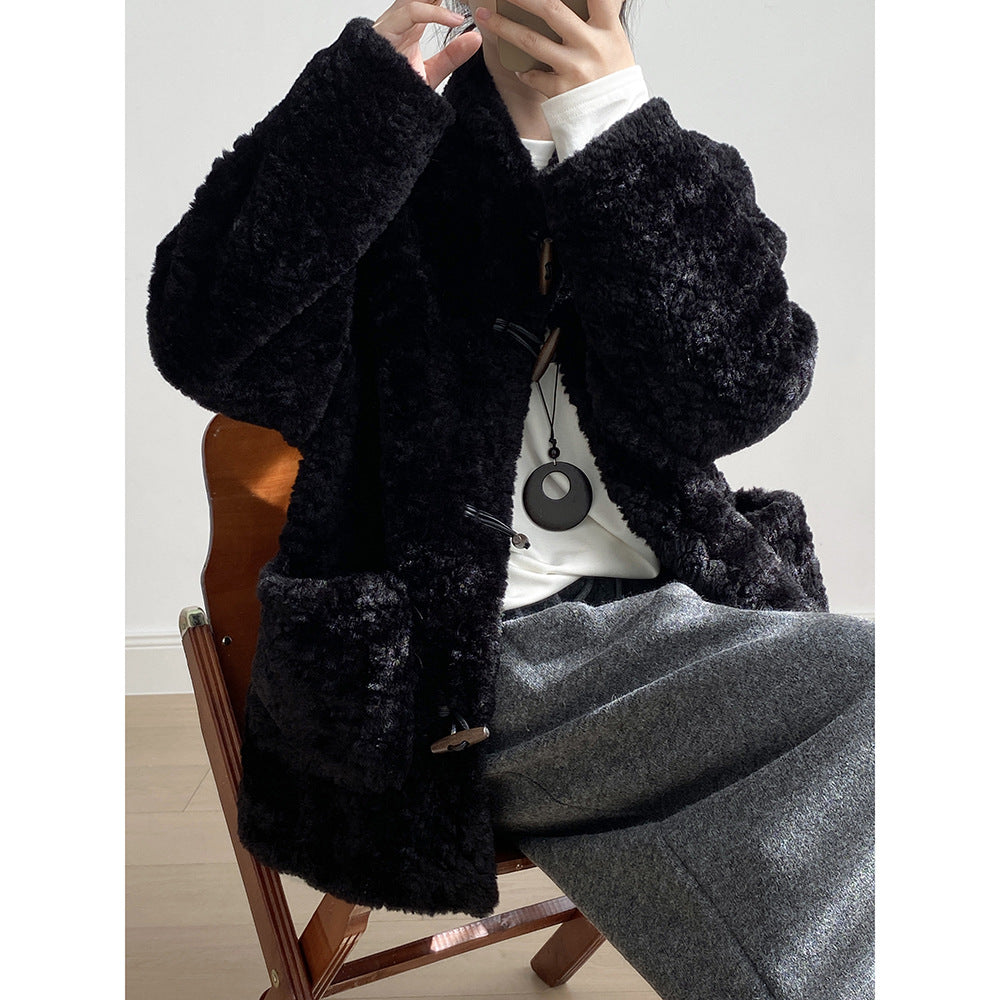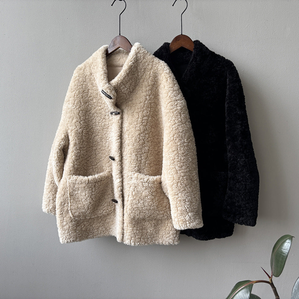 【Y7097】實拍冬季慵懒可愛牛角扣羊羔毛厚外套251113