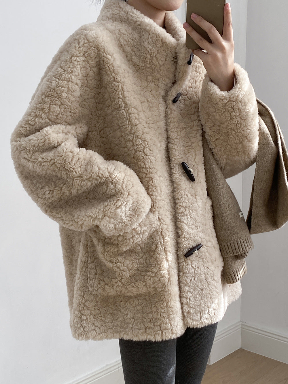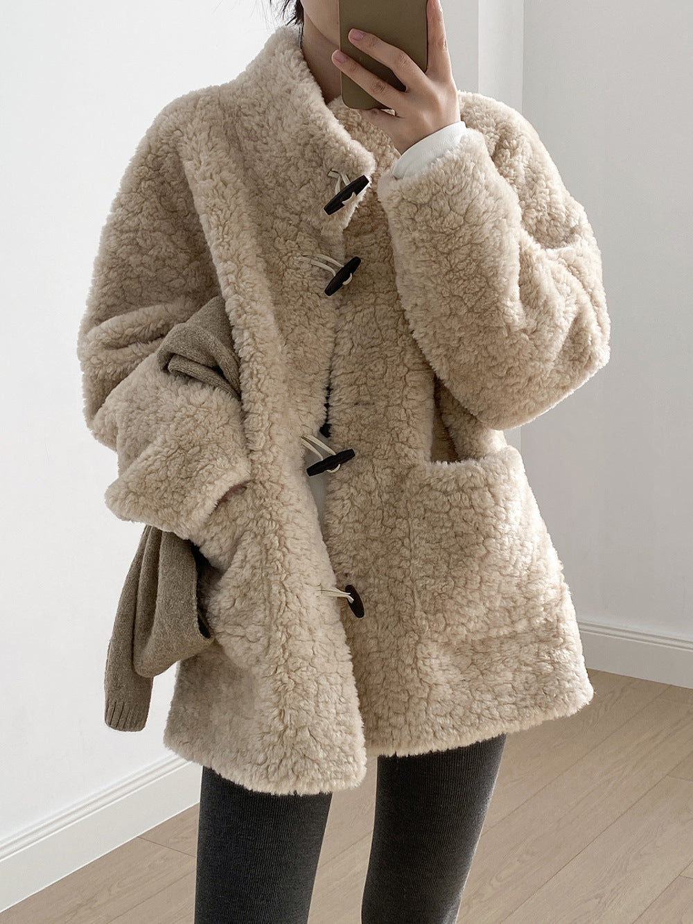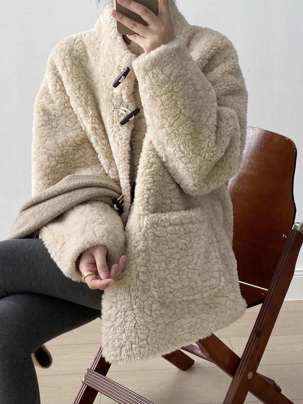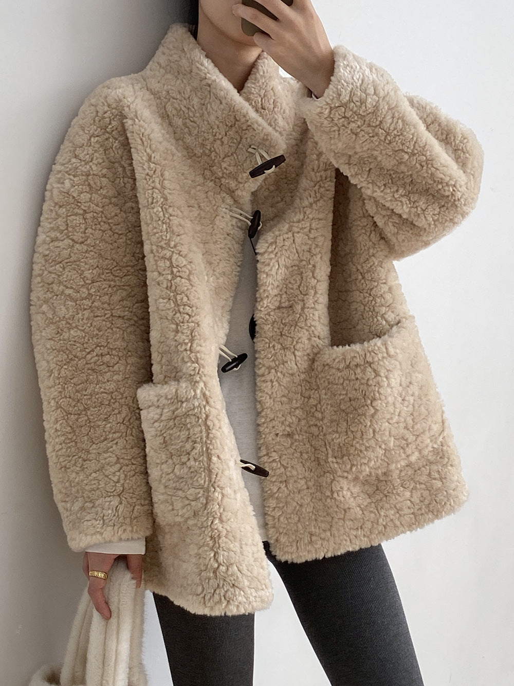 【Y7097】實拍冬季慵懒可愛牛角扣羊羔毛厚外套251113