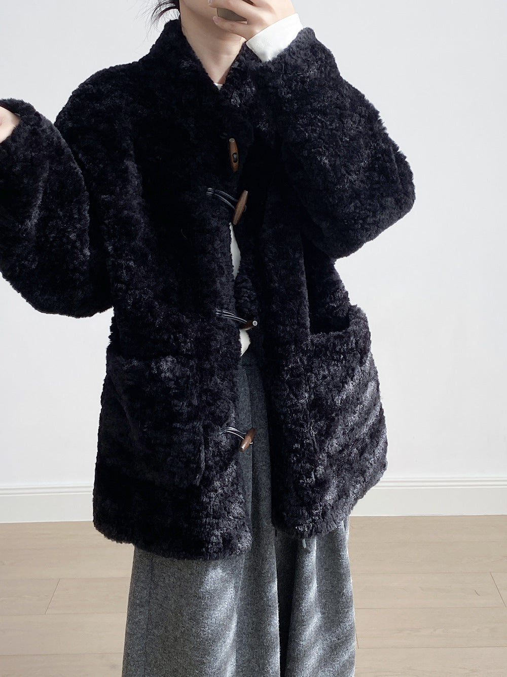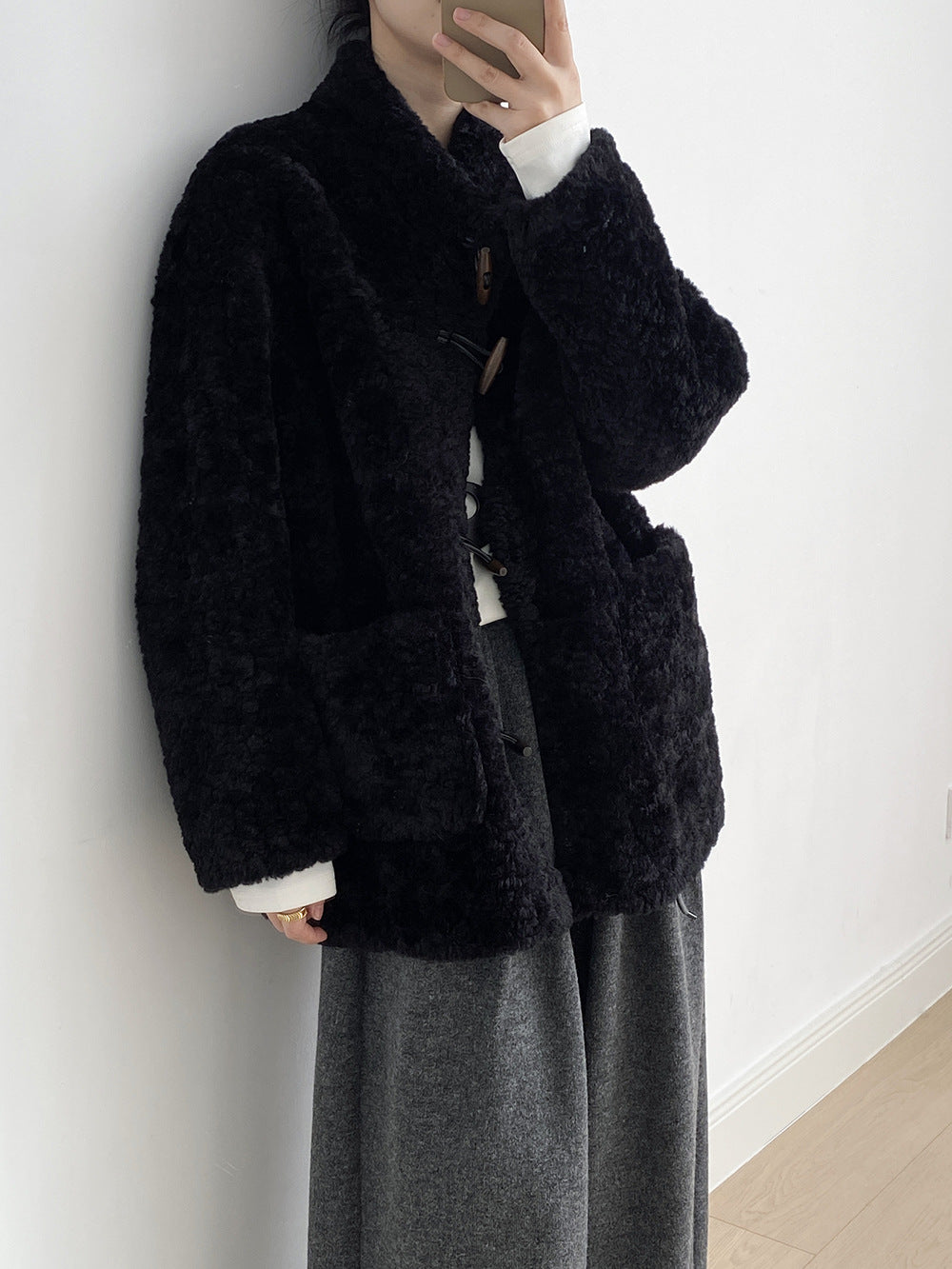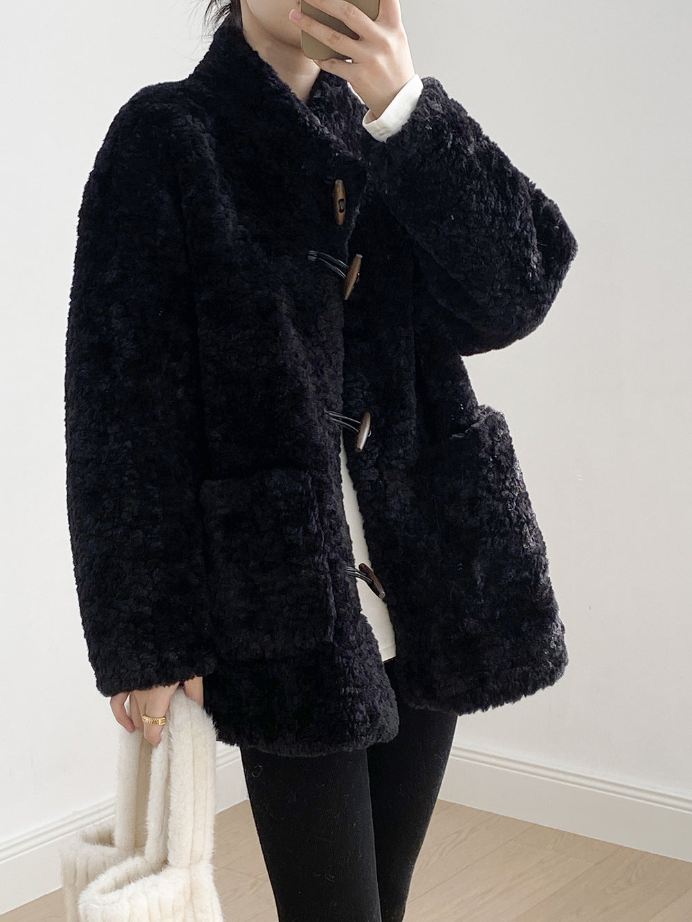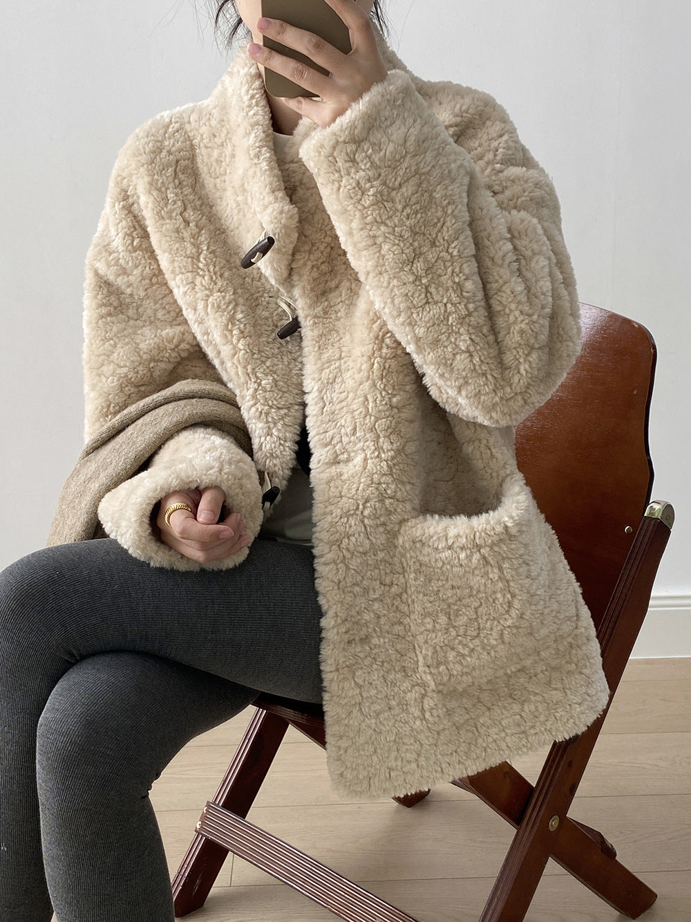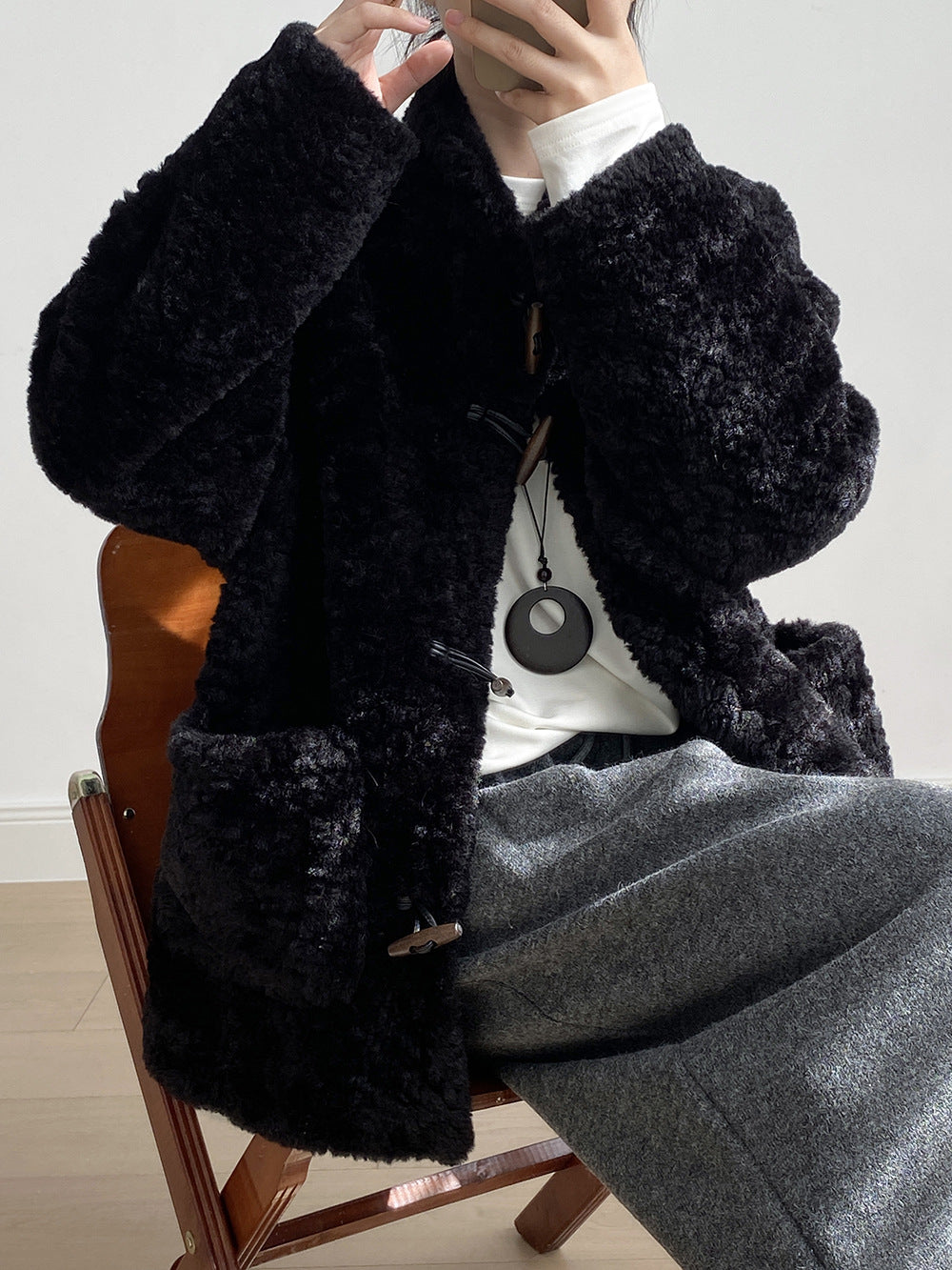 【Y7097】實拍冬季慵懒可愛牛角扣羊羔毛厚外套251113