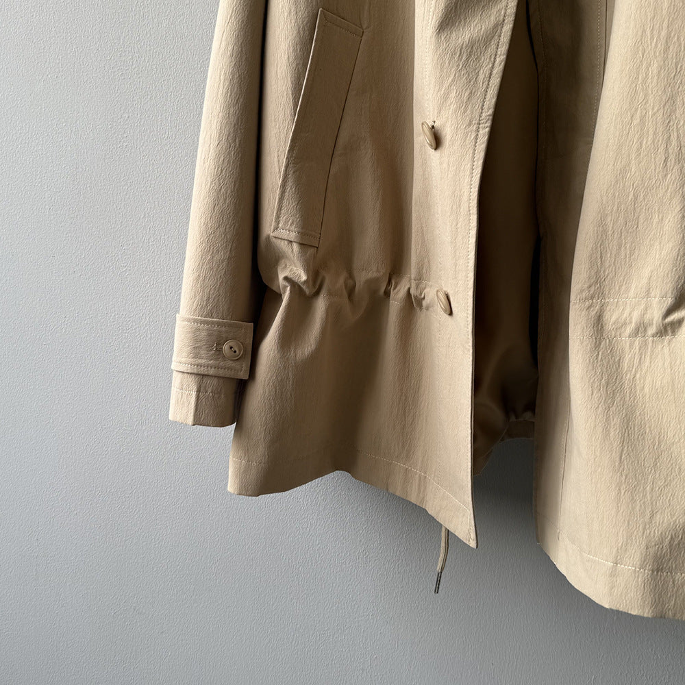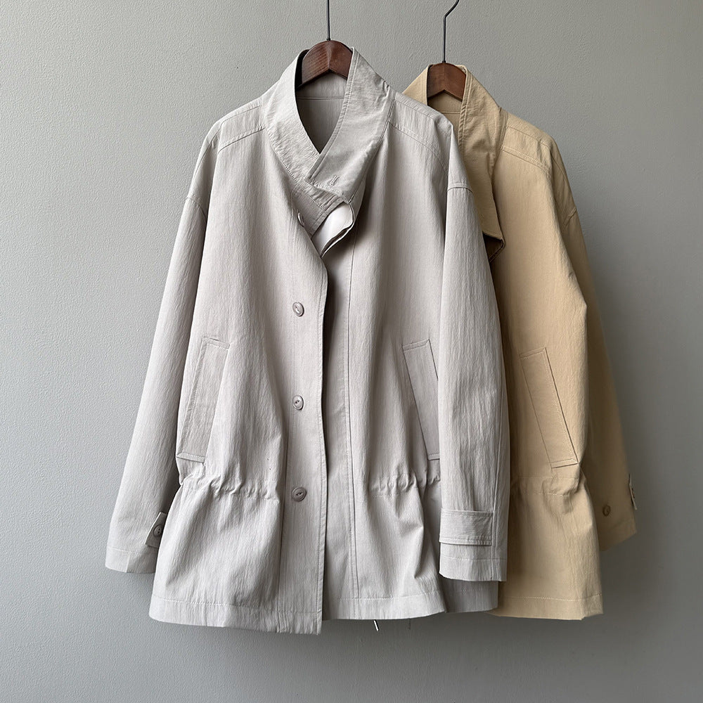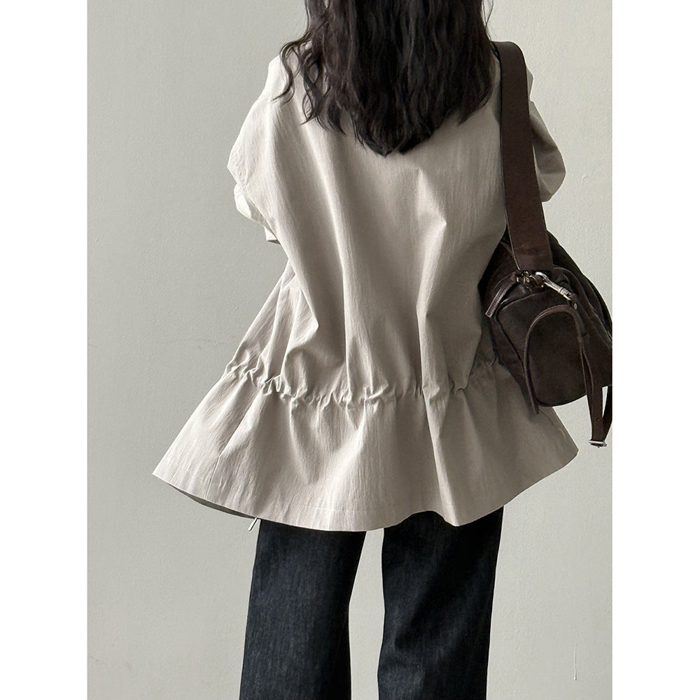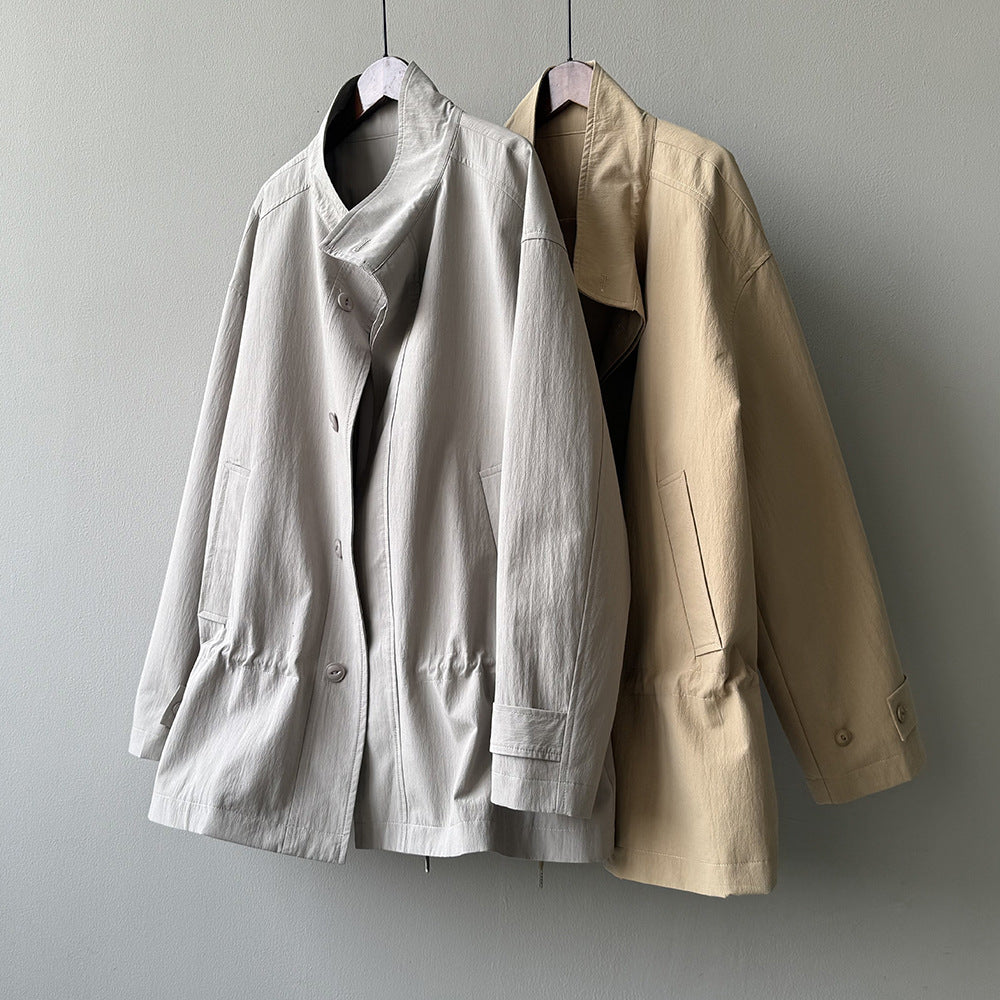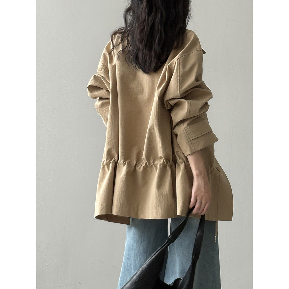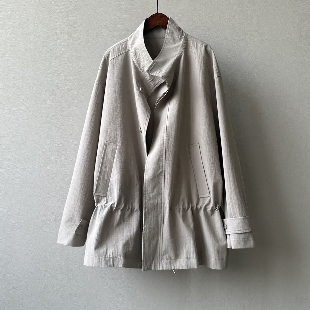 【Y71200】實拍初秋個性立領收腰抽繩風衣外套250911