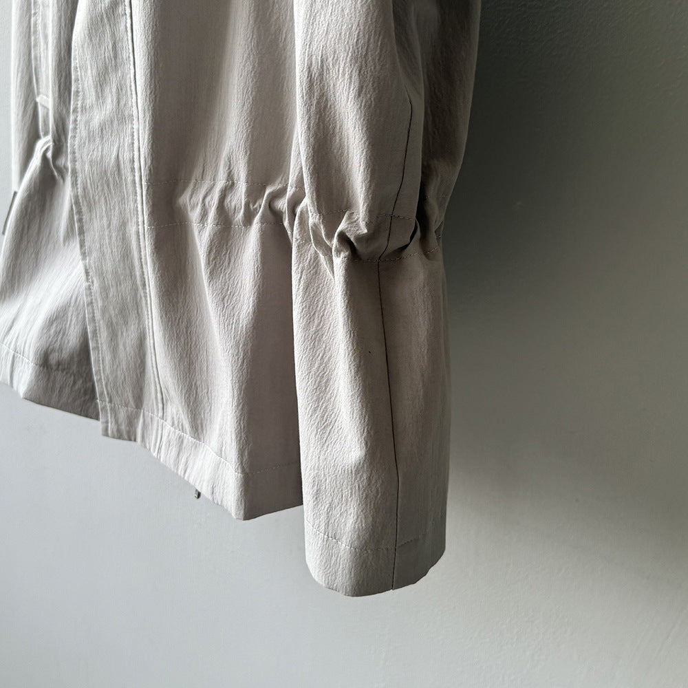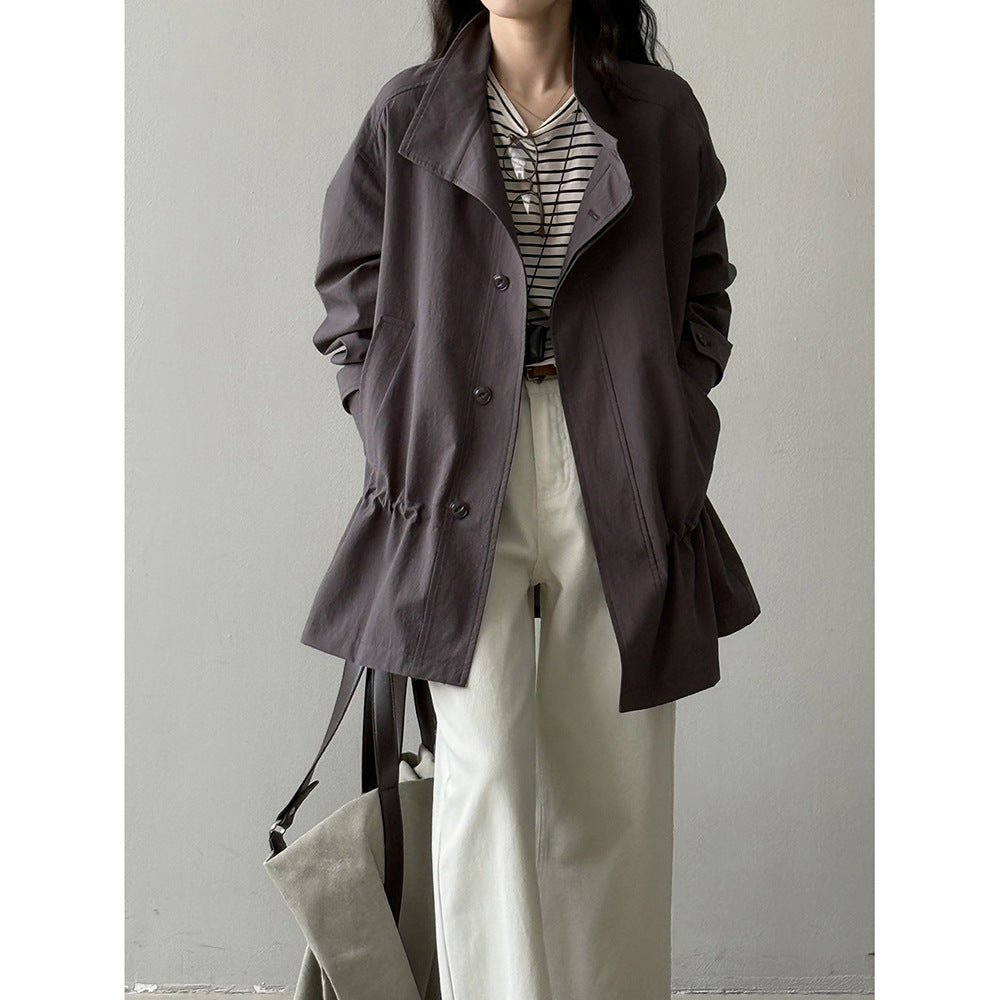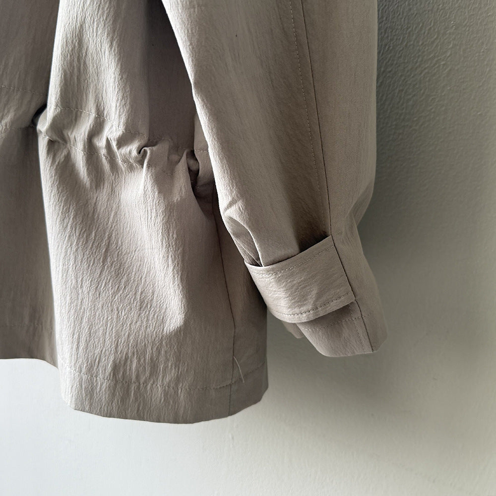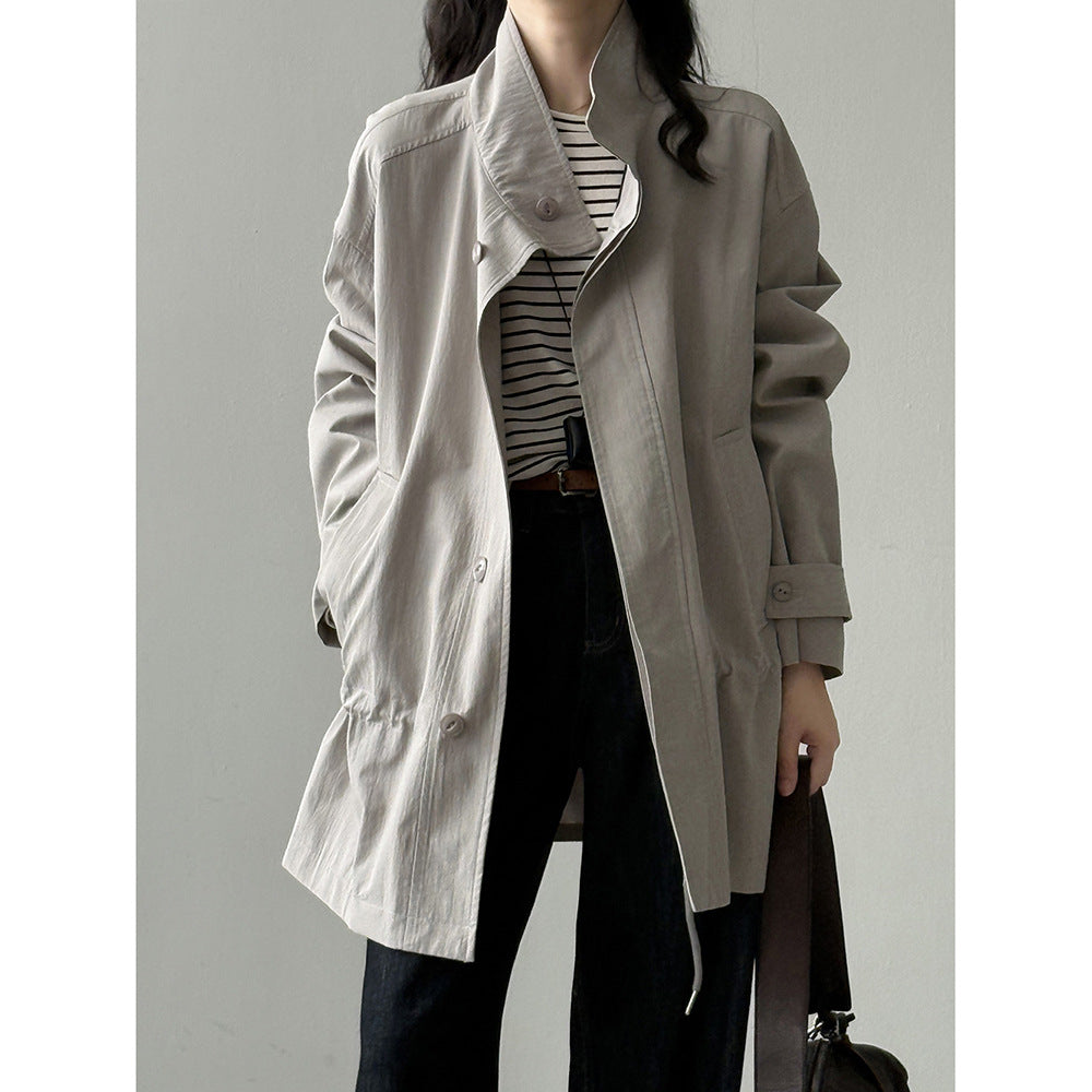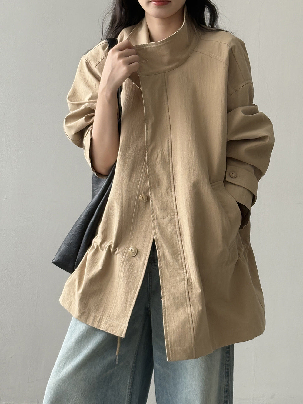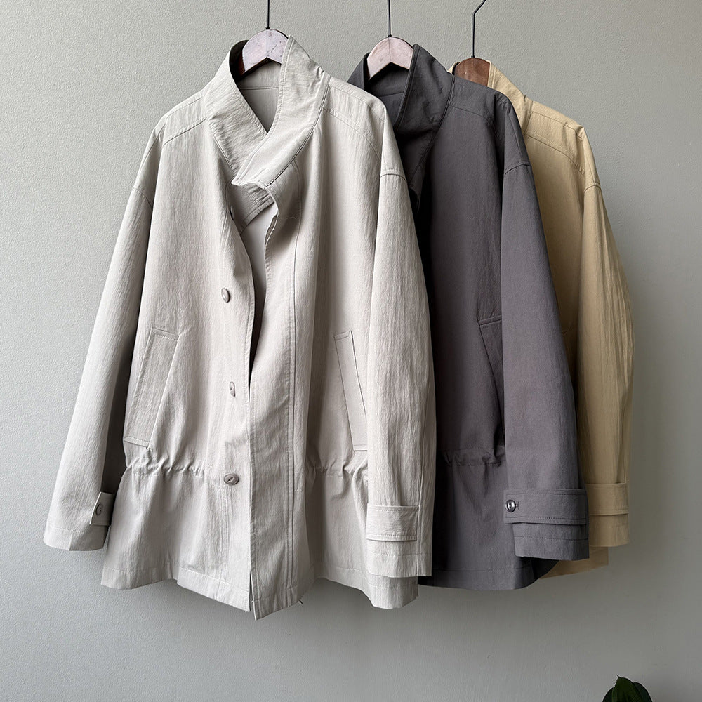 【Y71200】實拍初秋個性立領收腰抽繩風衣外套250911